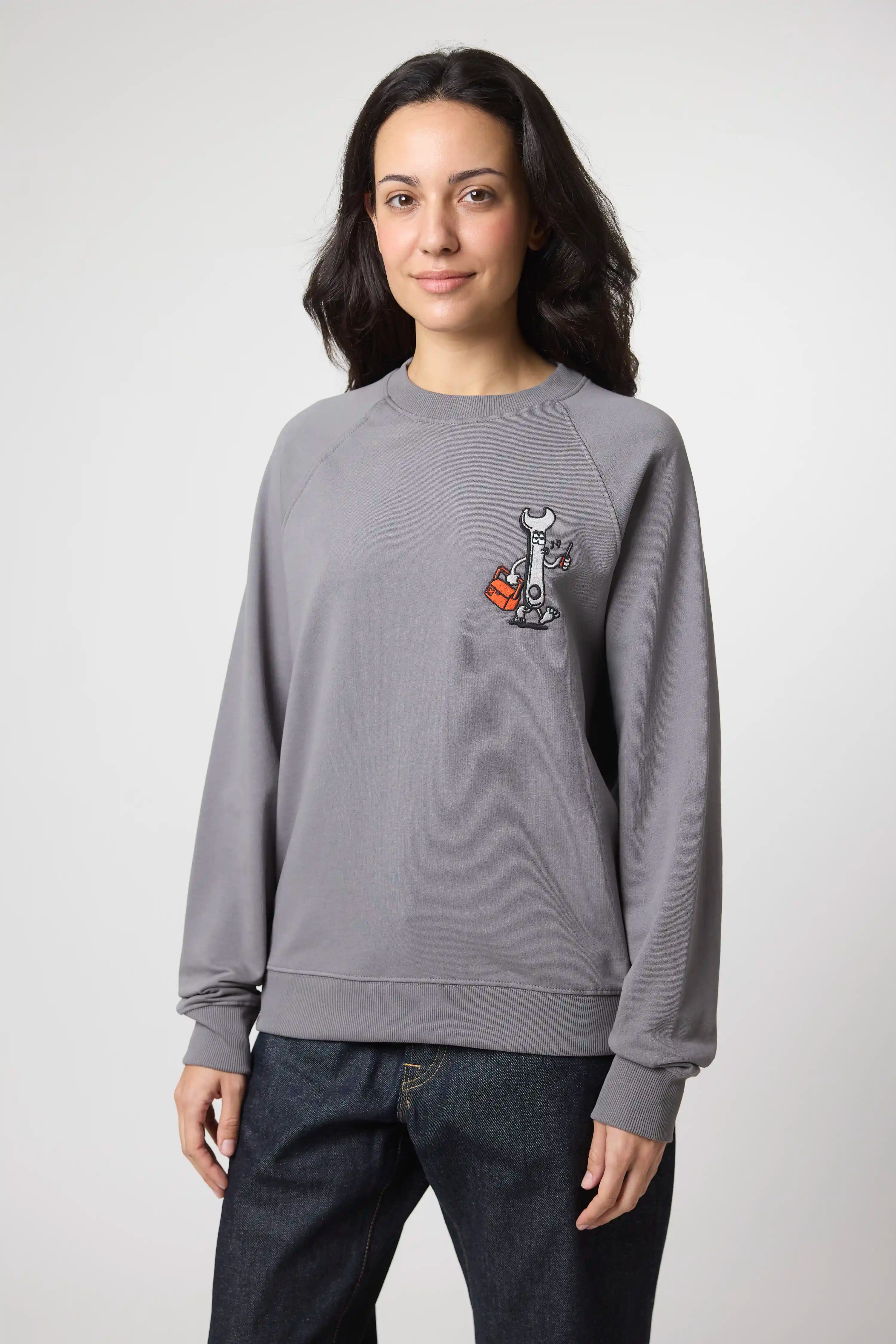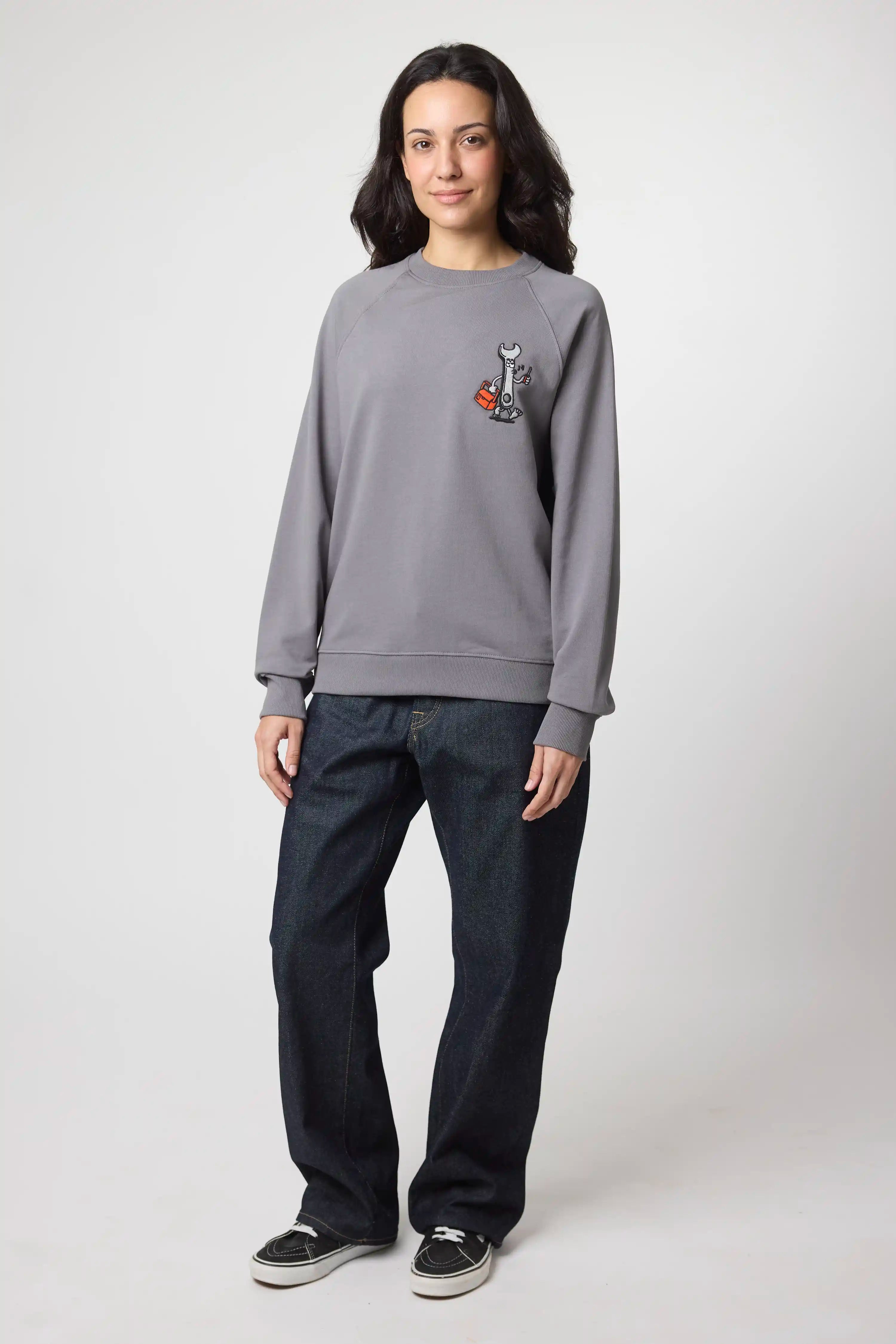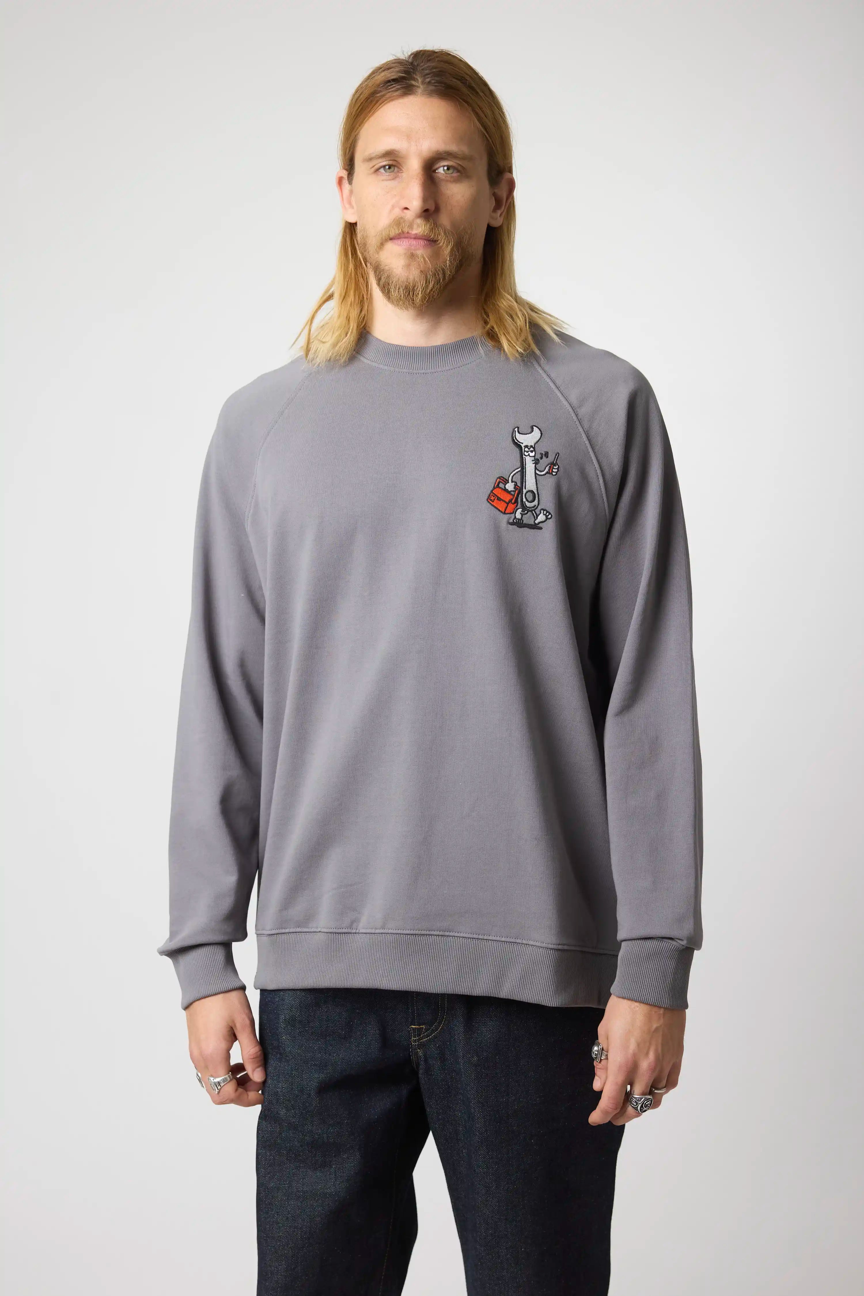 Sweatshirt with front embroidery. Made from 100% organic cotton. Oversized fit with a 2x2 ribbed round neckline. Decorative hem label.