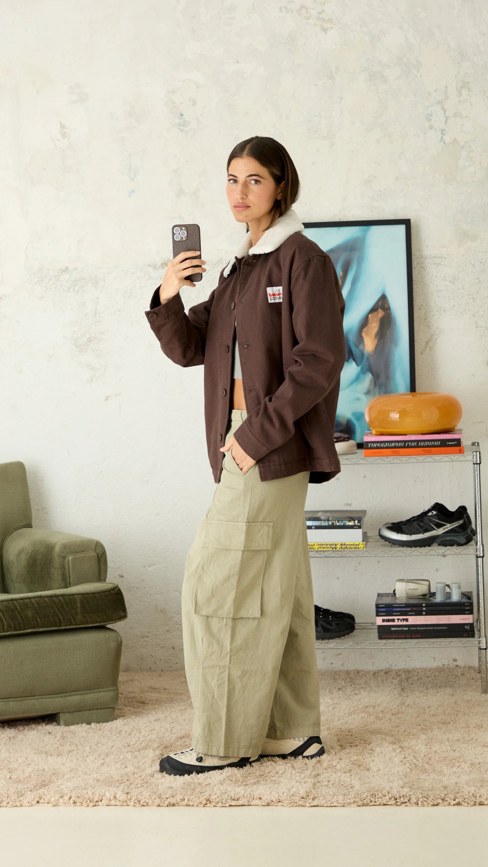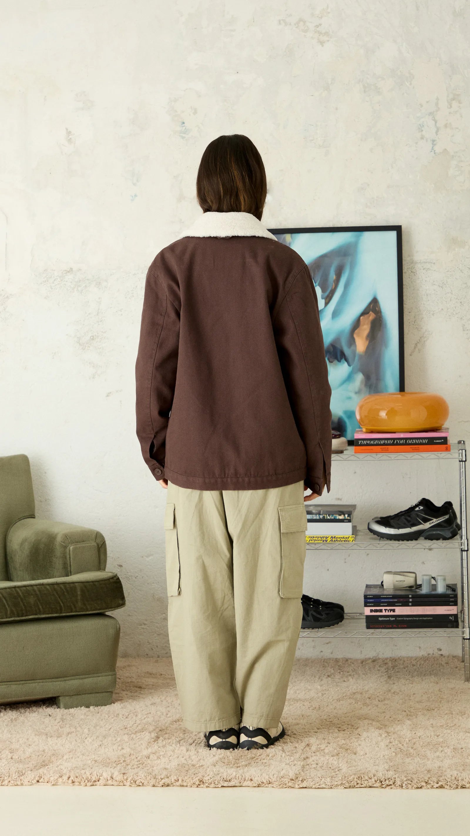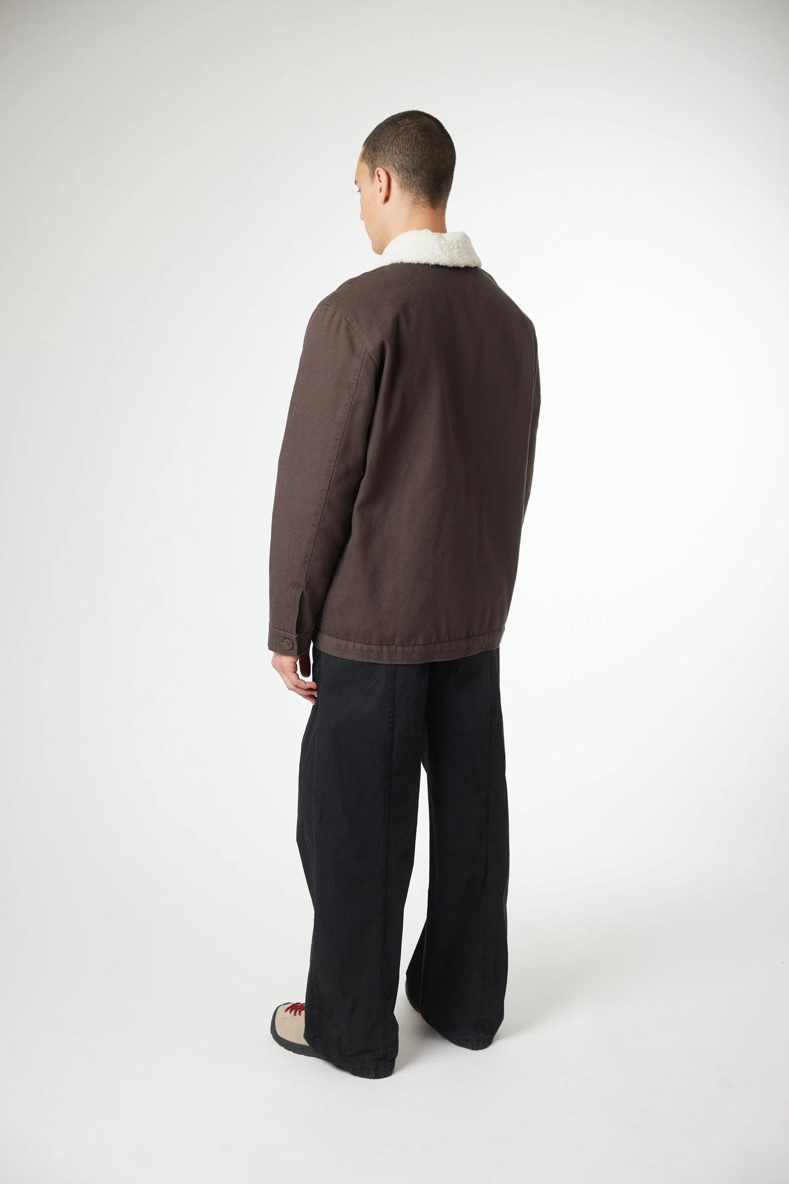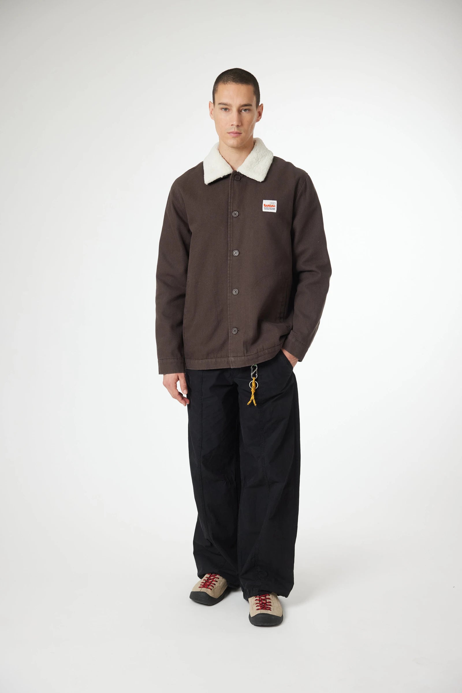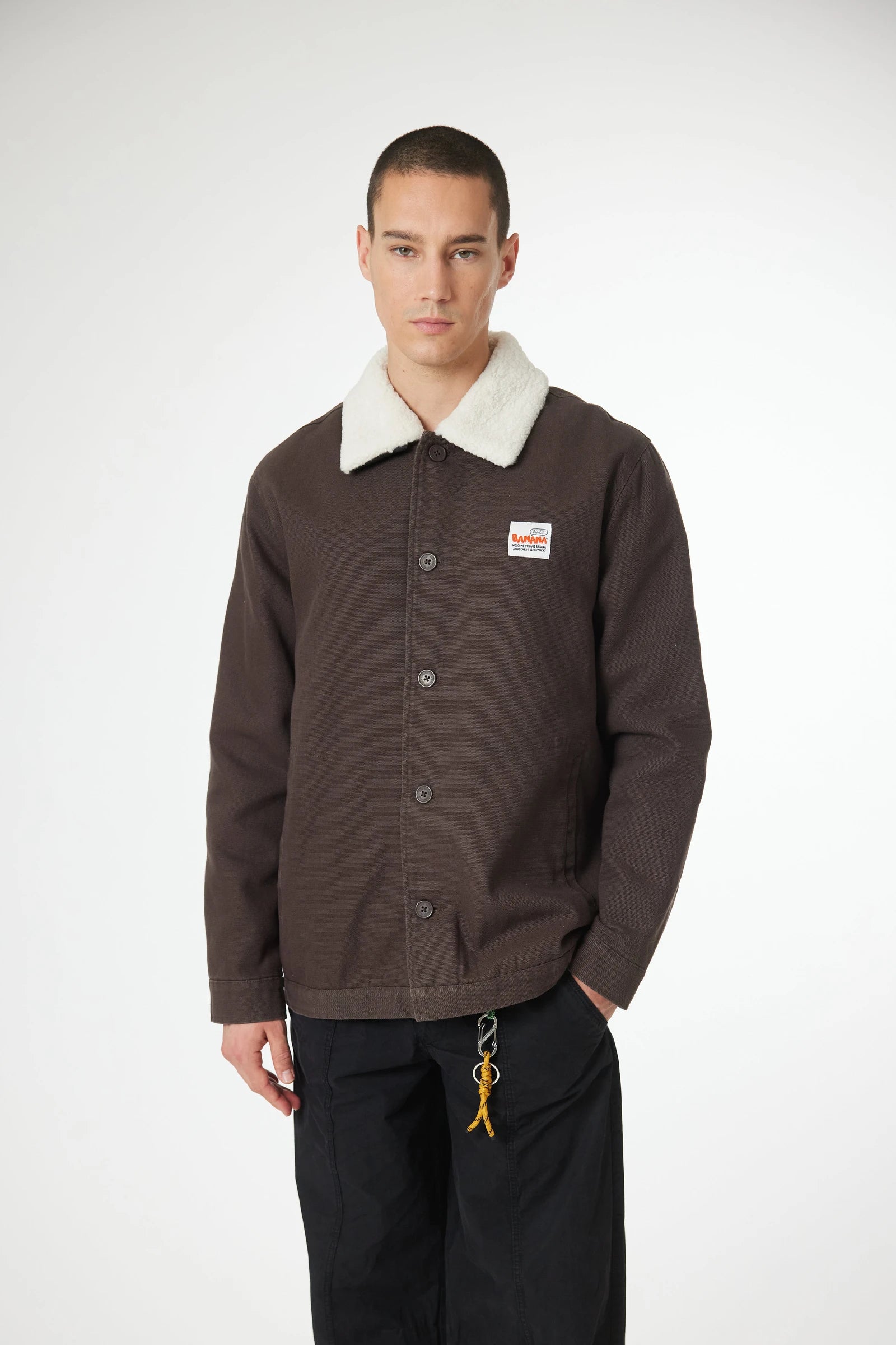 Jacket made of canvas fabric, 100% cotton. With detachable off-white shearling collar. Front pockets with topstitched silhouette and inner pocket. Decorative label sewn on chest.