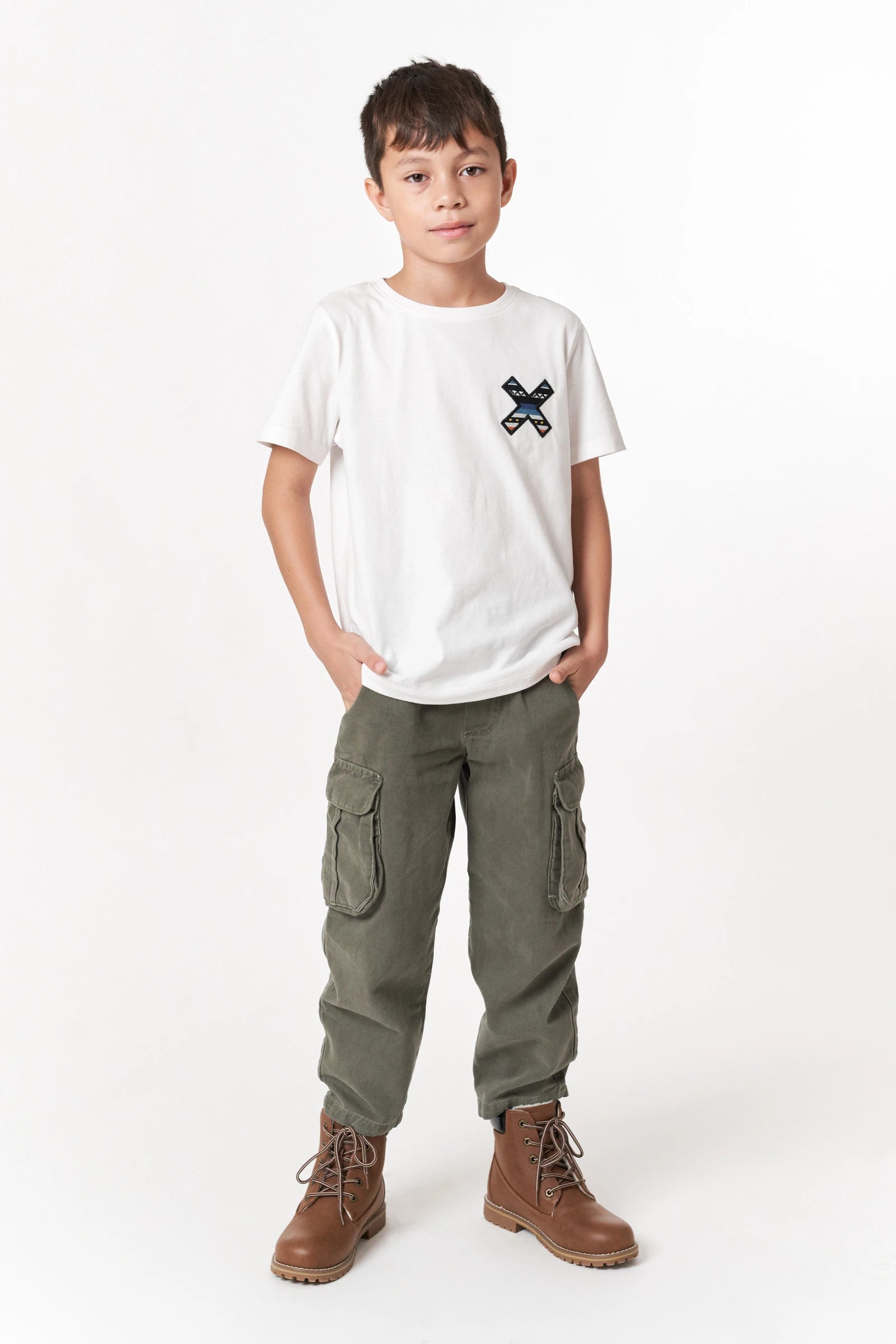 T-shirt with our classic embroidered X: front on the chest and back on the back. Made with 100% organic cotton.