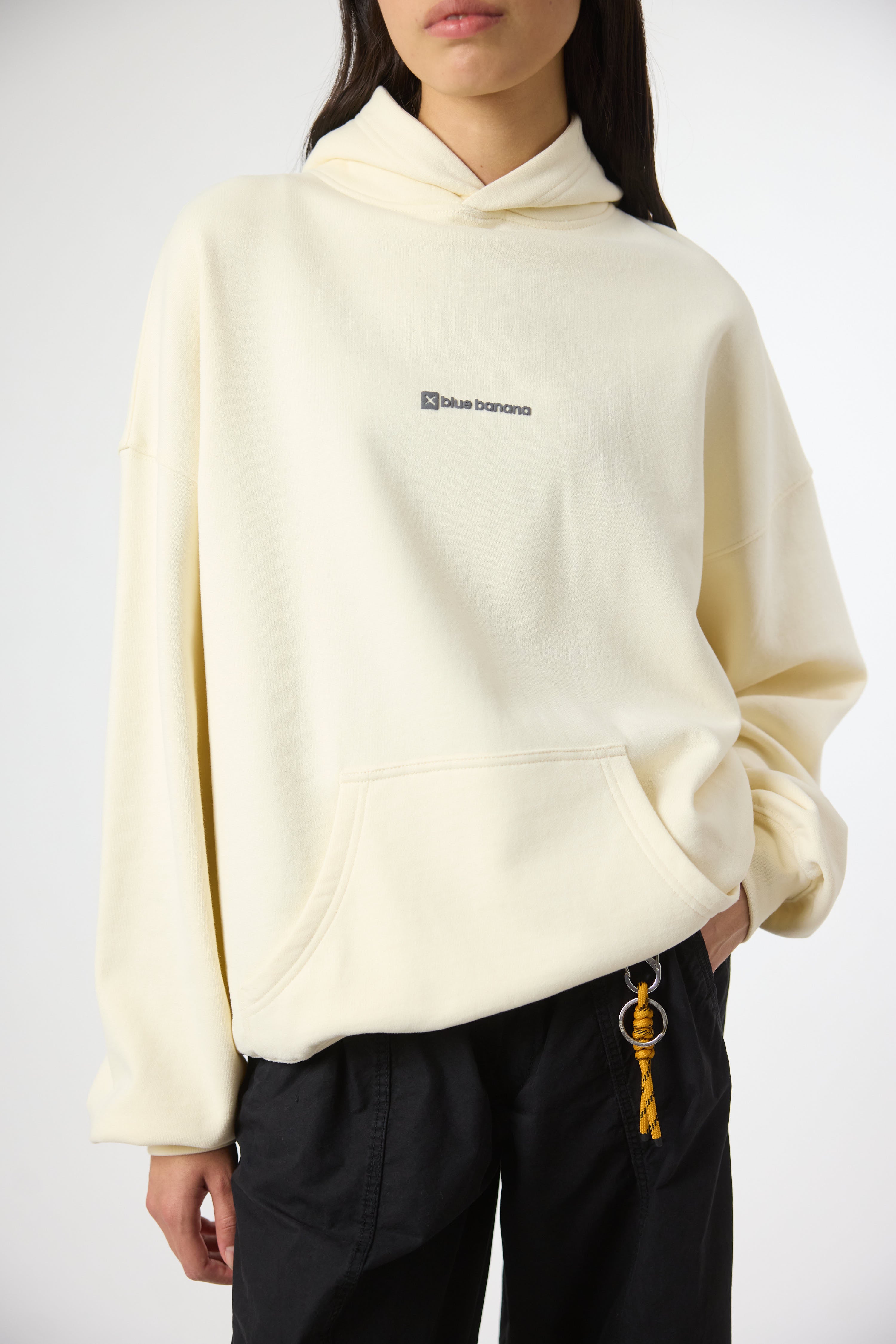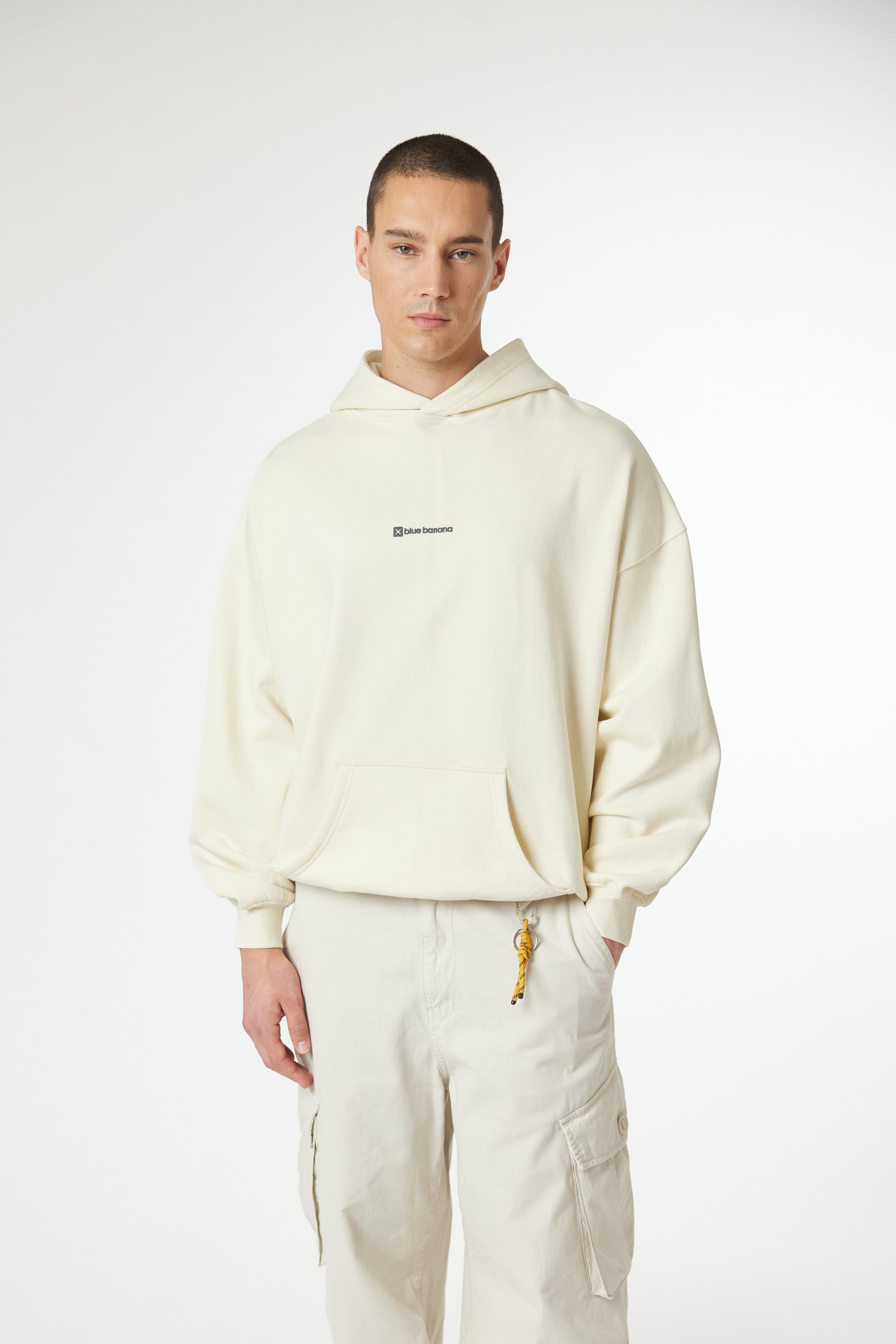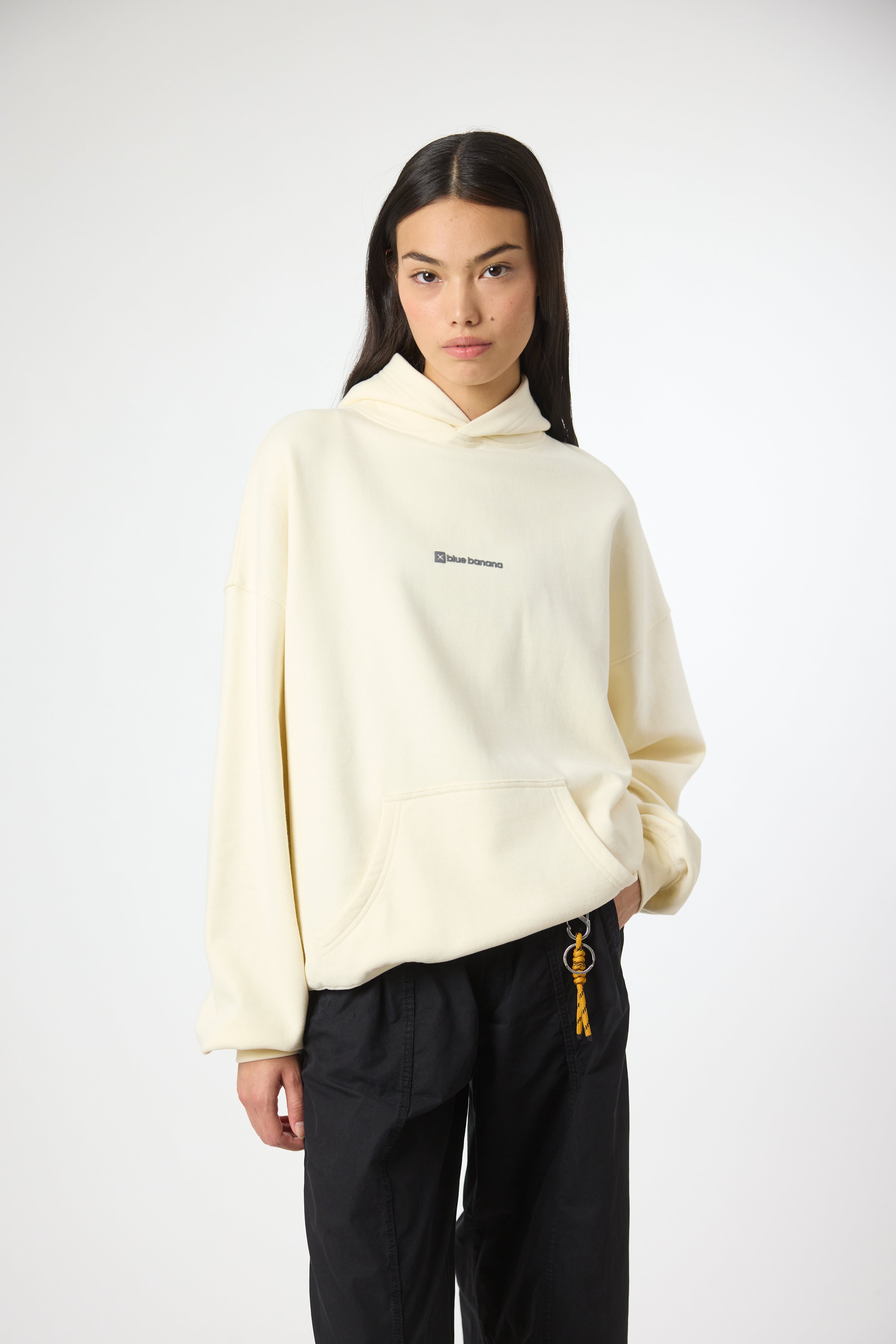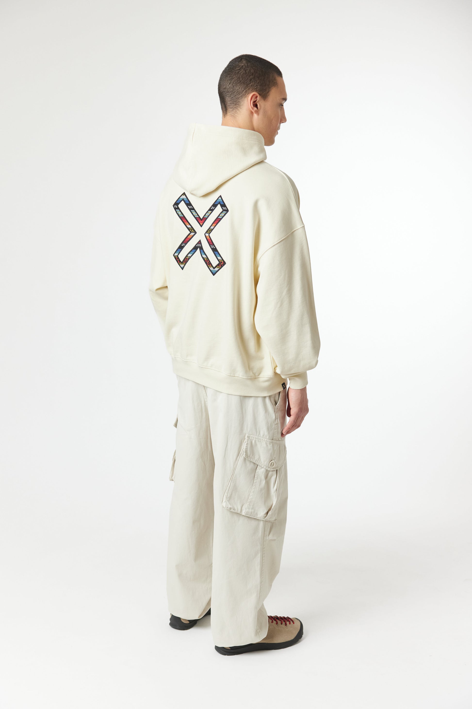 Hoodie with front print and our classic X on the back. Front lower central pocket with openings on both sides. Made of 100% organic cotton and boxy fit.