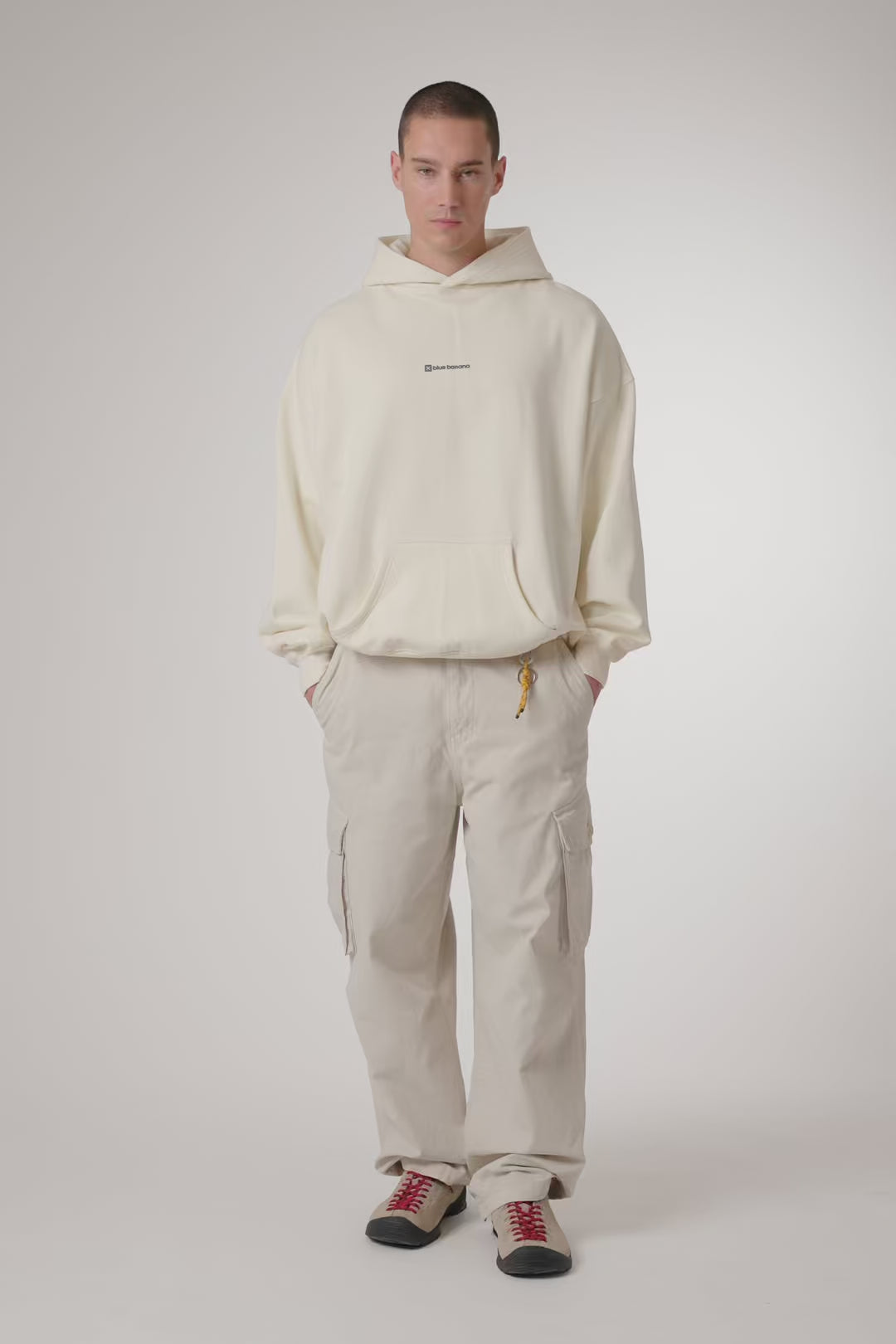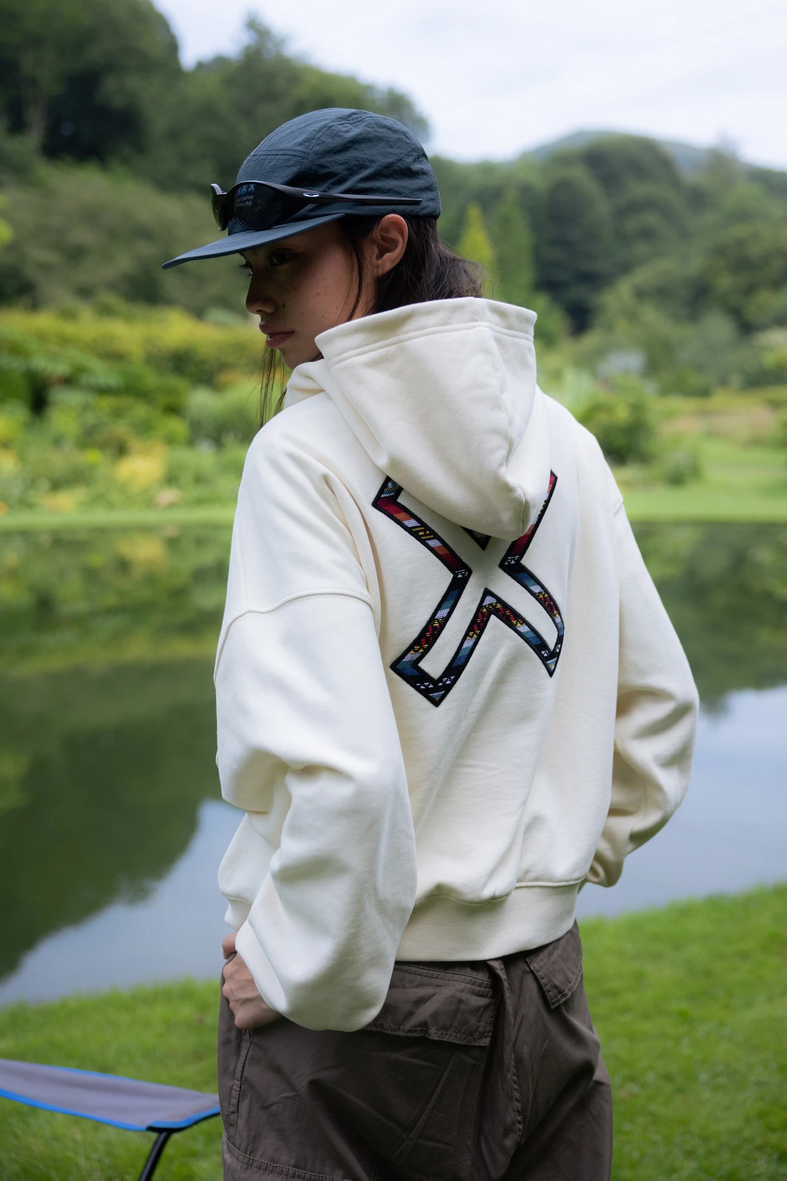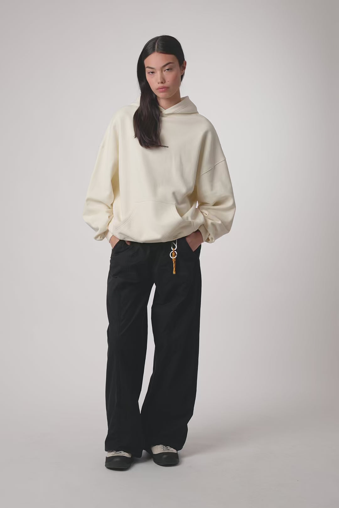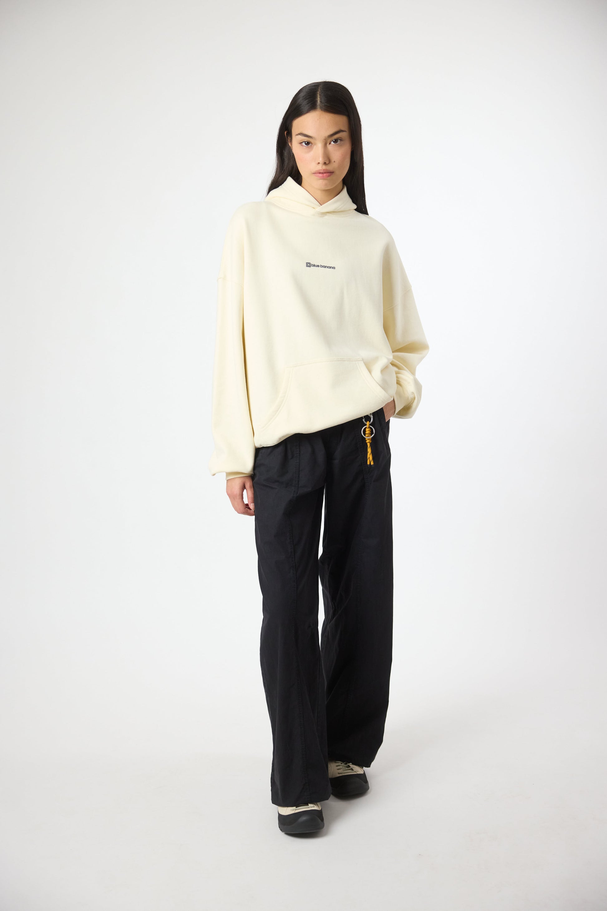 Hoodie with front print and our classic X on the back. Front lower central pocket with openings on both sides. Made of 100% organic cotton and boxy fit.