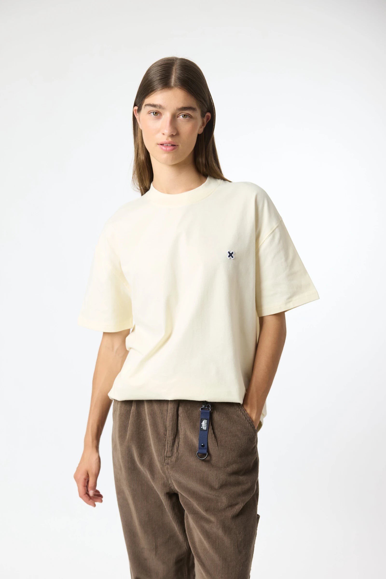 T-shirt with our classic X embroidered on the front chest. Made of 100% organic cotton and oversized fit.