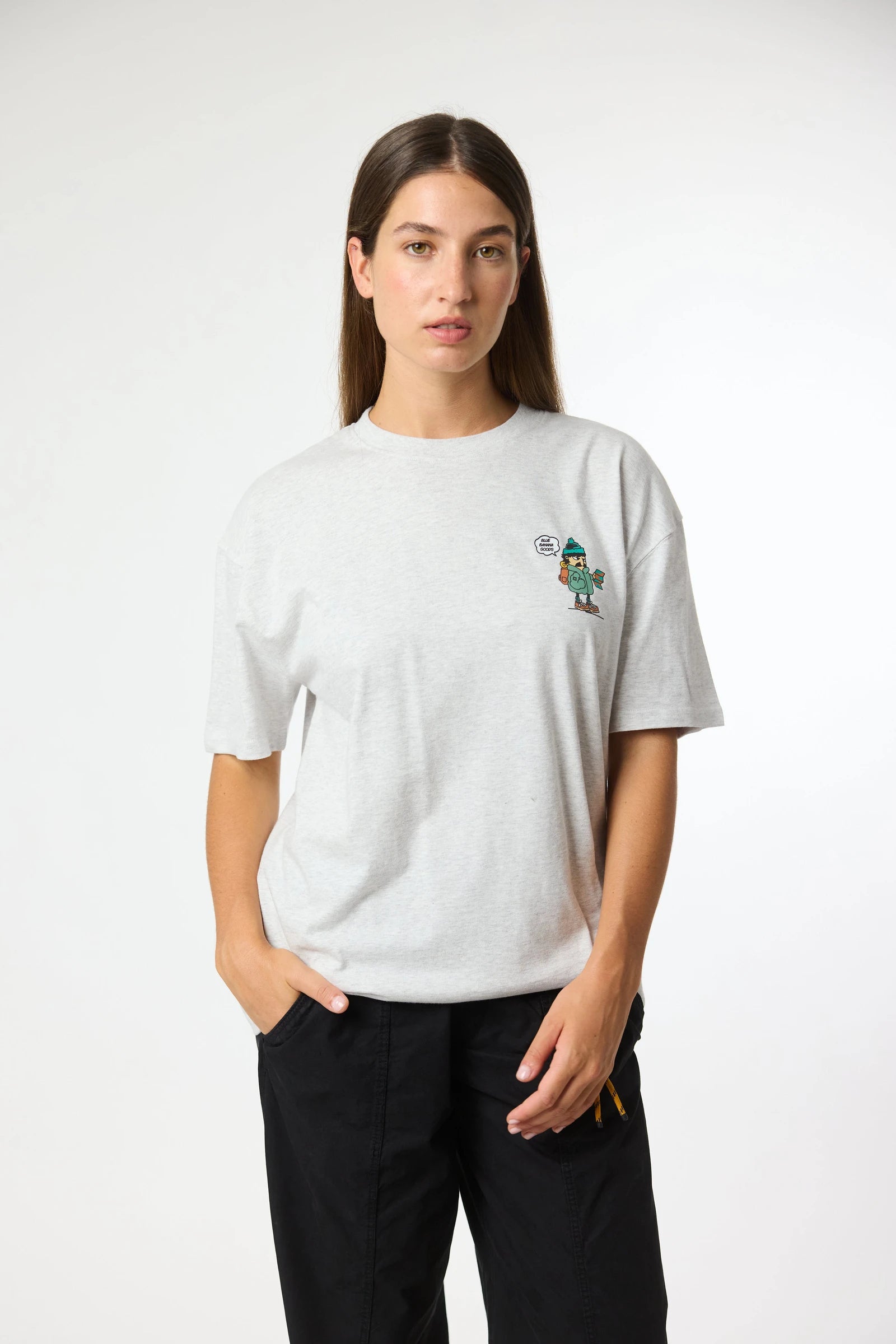 T-shirt with front print on the upper left side and centered back print. Made of 100% organic cotton and oversized fit.