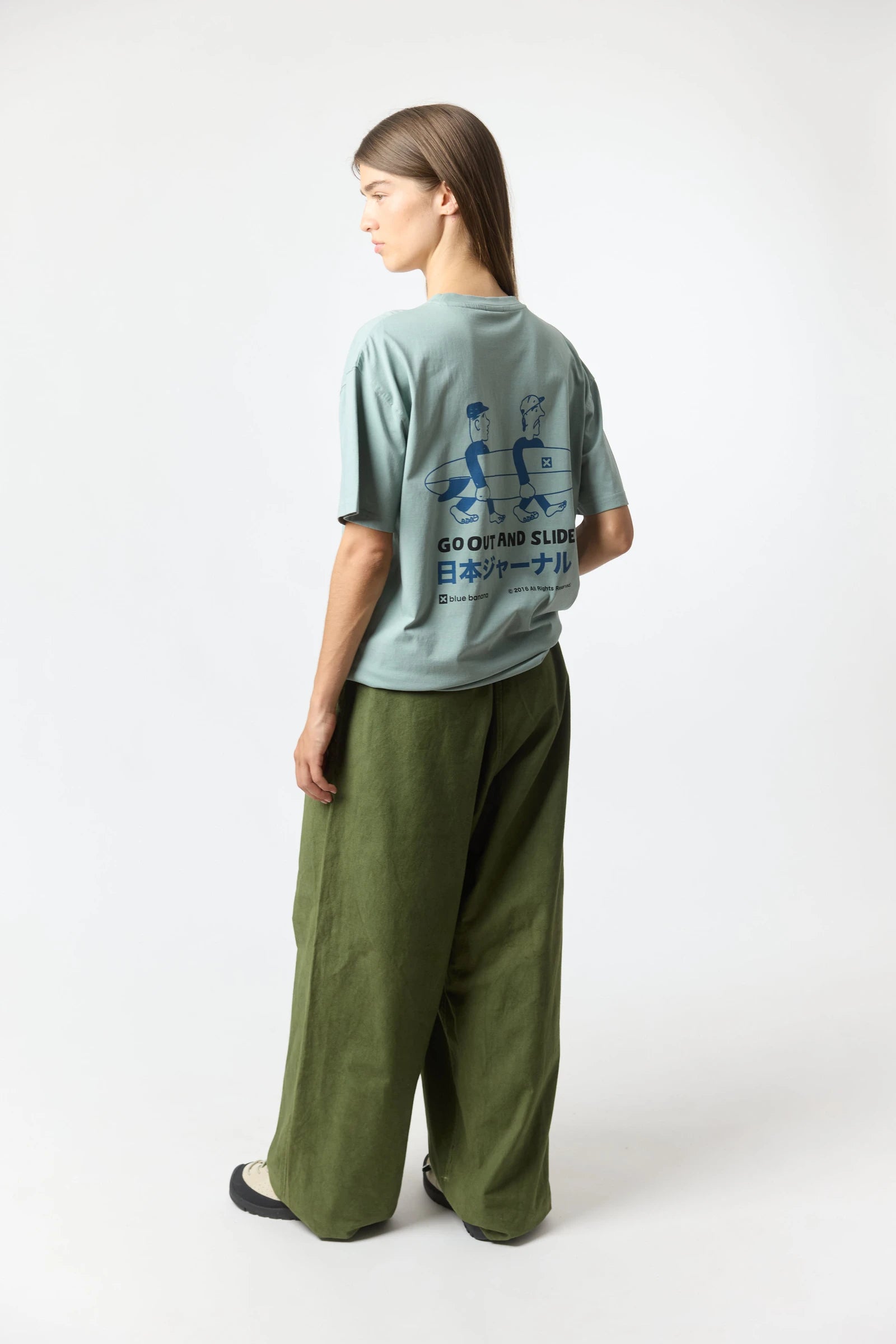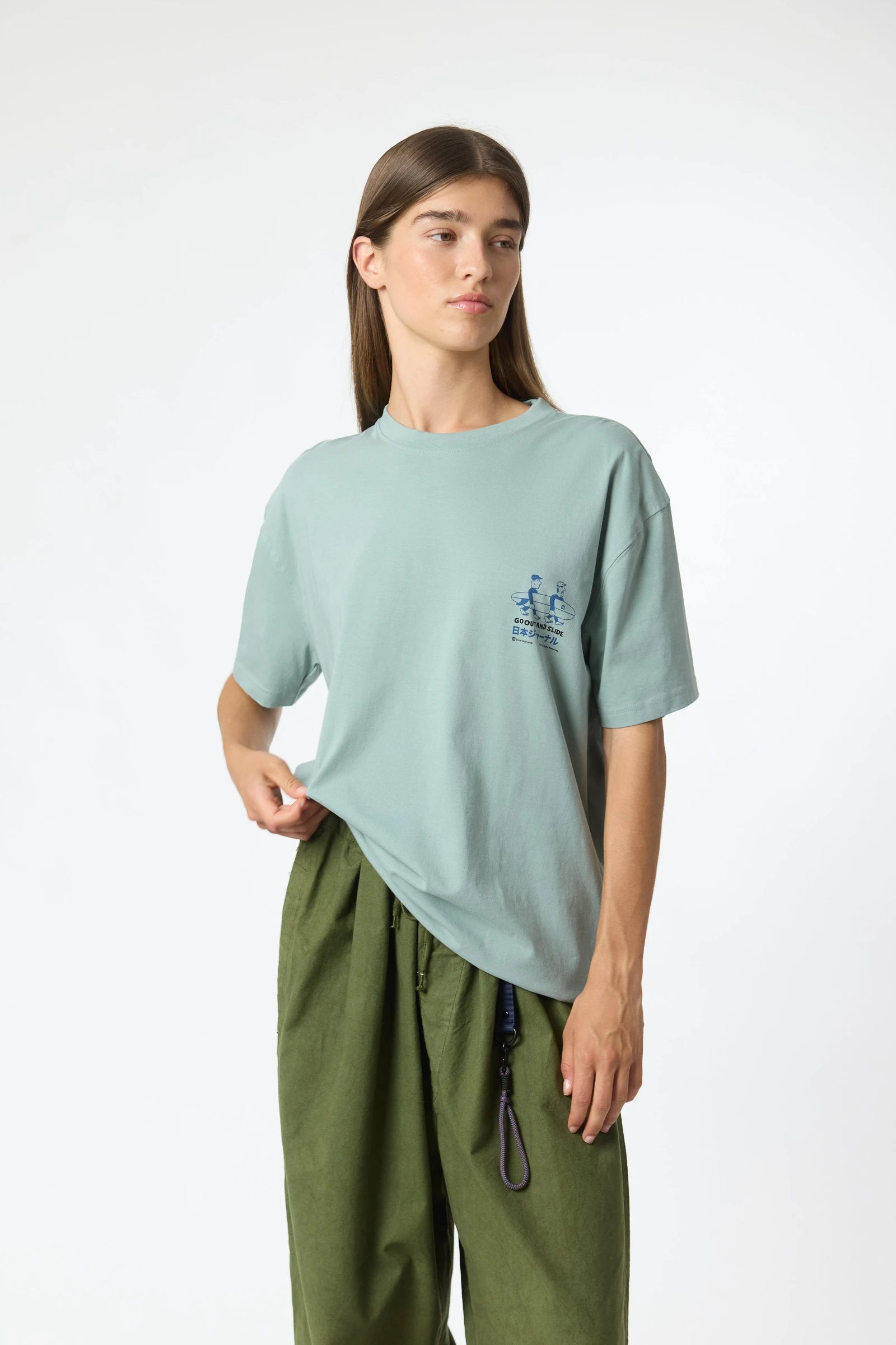 T-shirt with front print on the upper left side and centered back print. Made of 100% organic cotton and oversized fit.