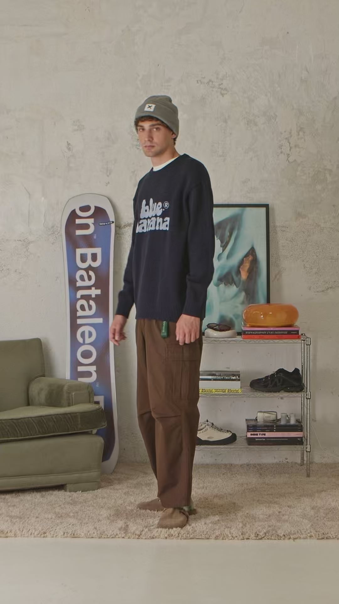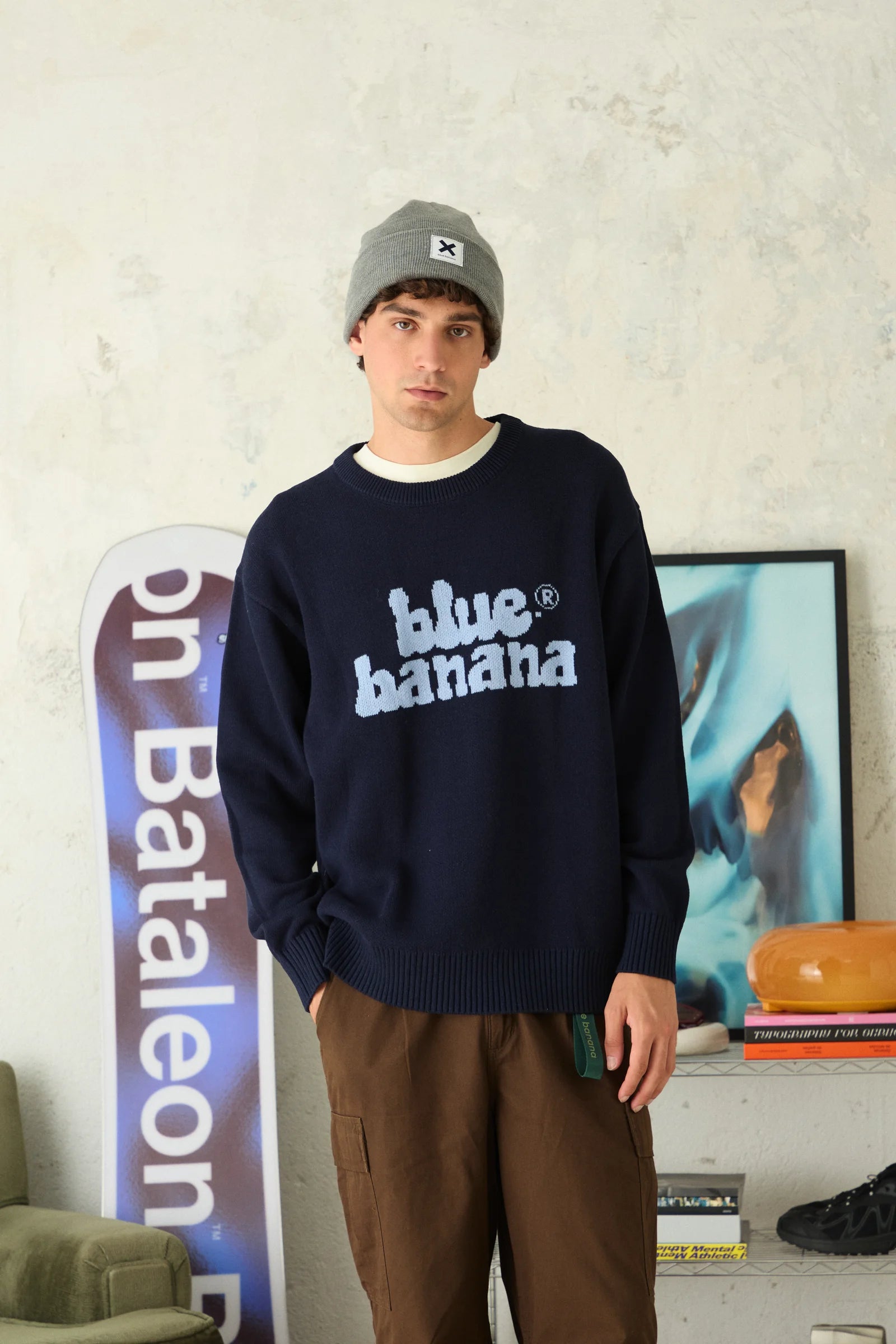 Knit sweater made of 100% cotton. With localized intarsia on chest. Crew neck and ribbed finishes. With decorative branding label at hem.