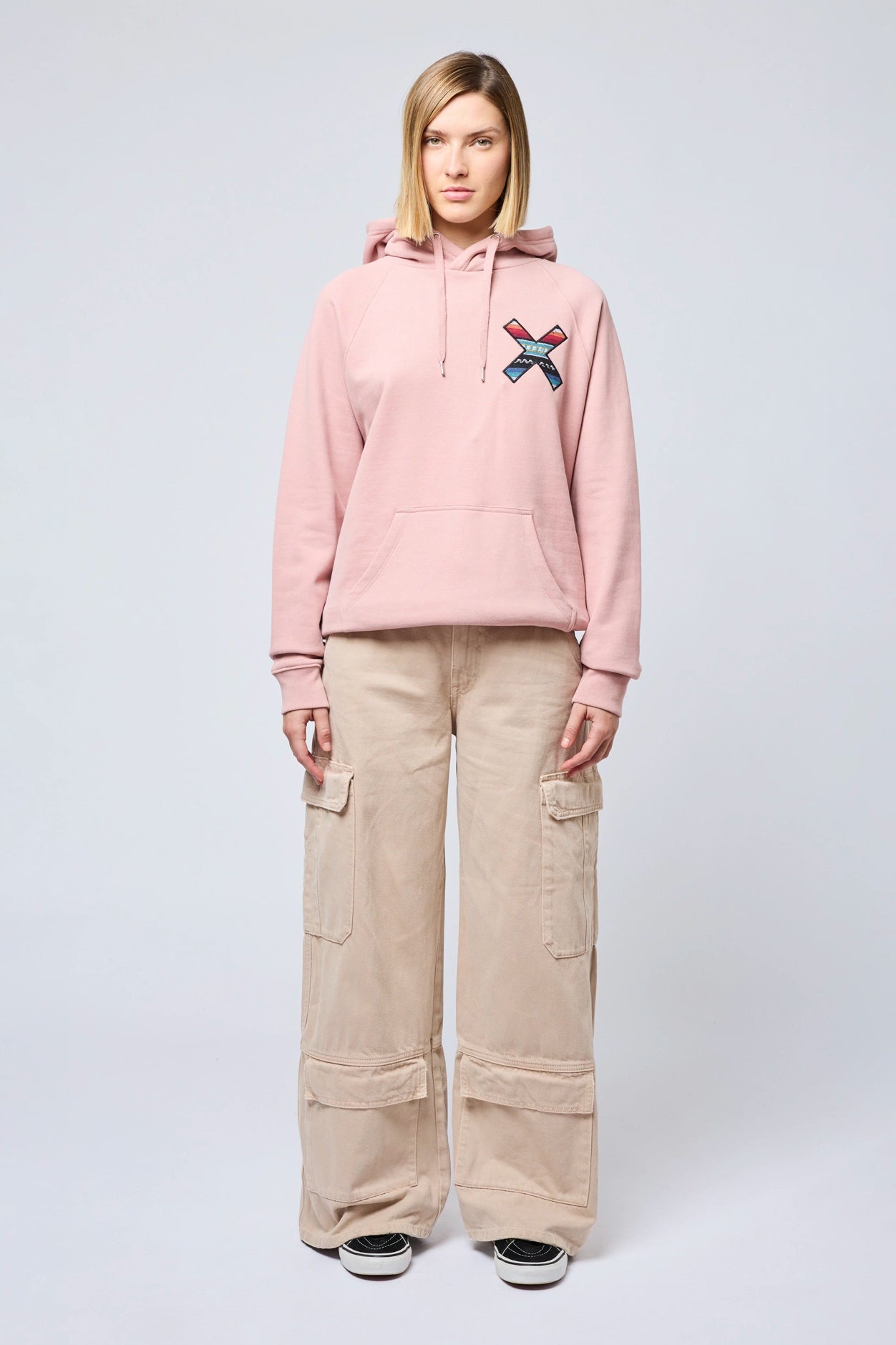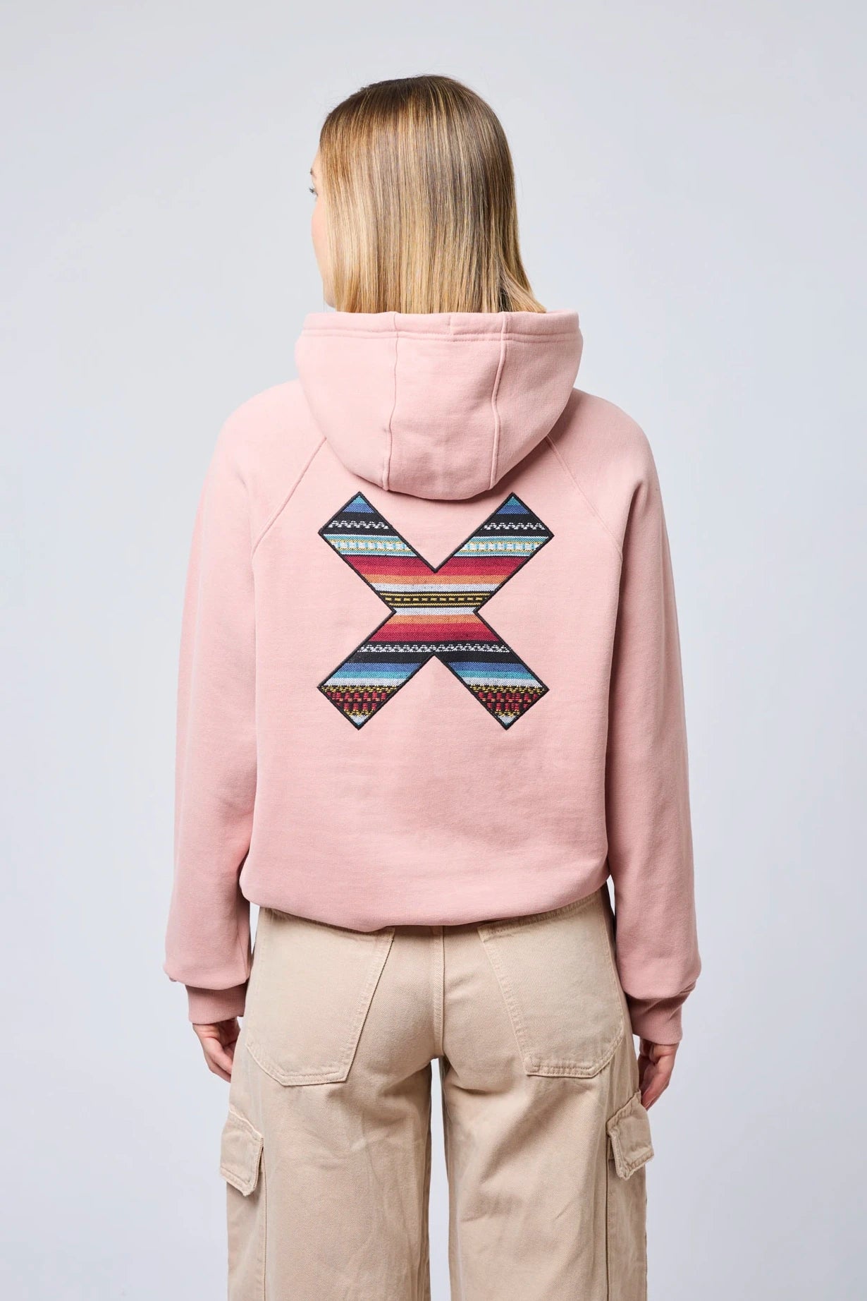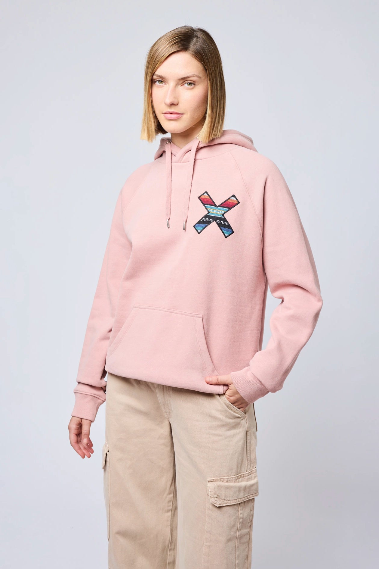 Hoodie with our classic embroidered X: front on the chest and back on the back. Lower central front pocket with opening on both sides. Made with 100% organic cotton and regular fit cut.