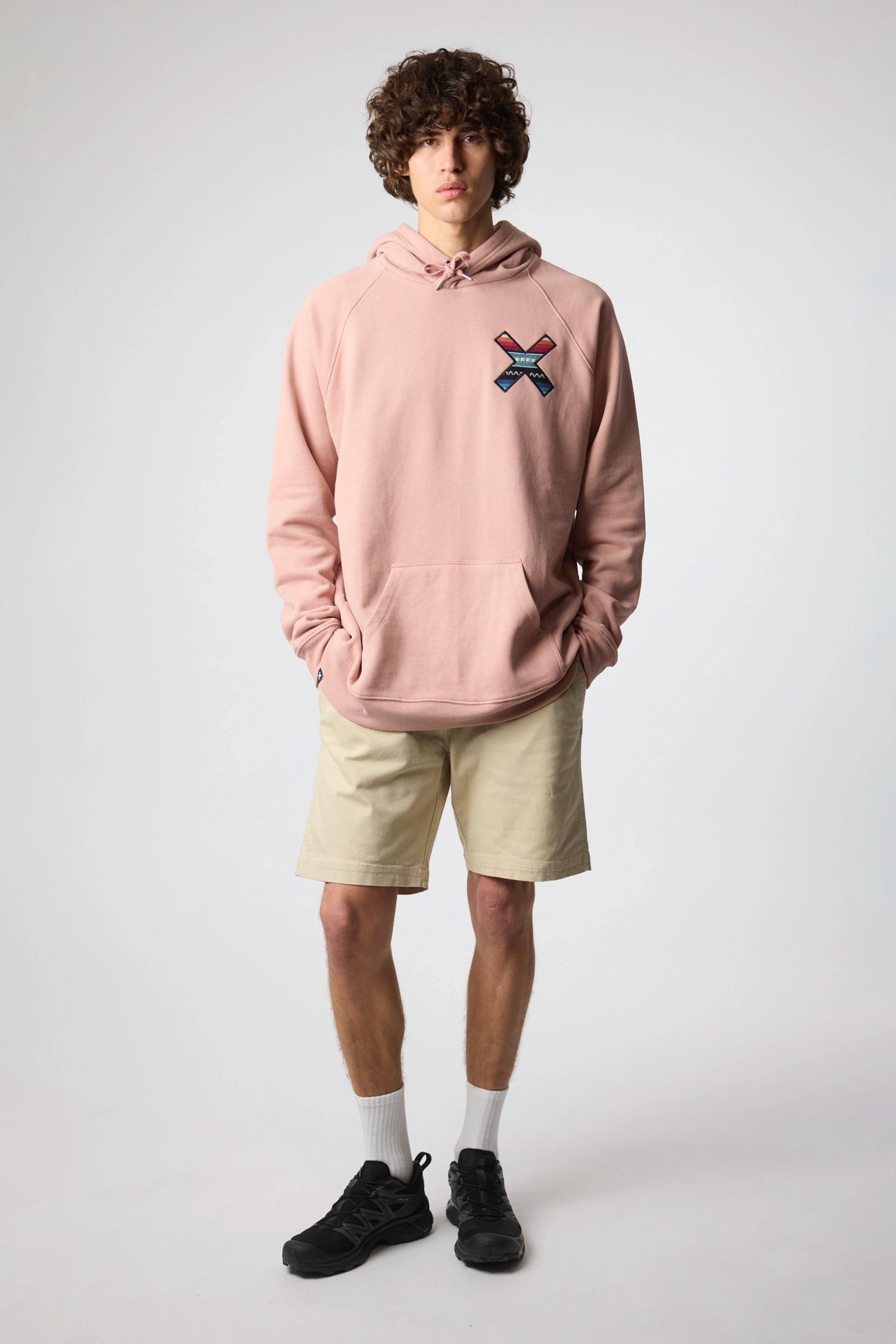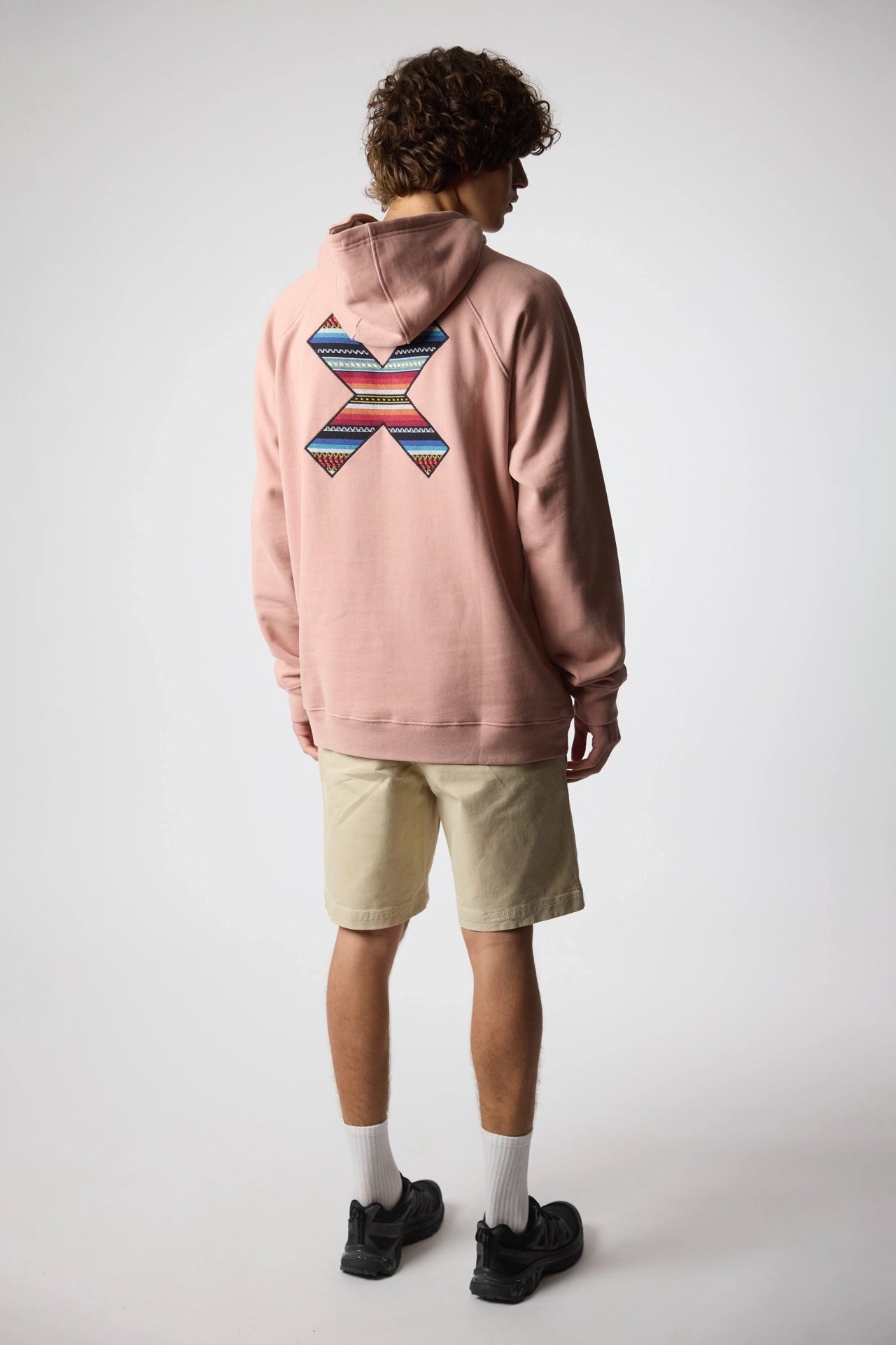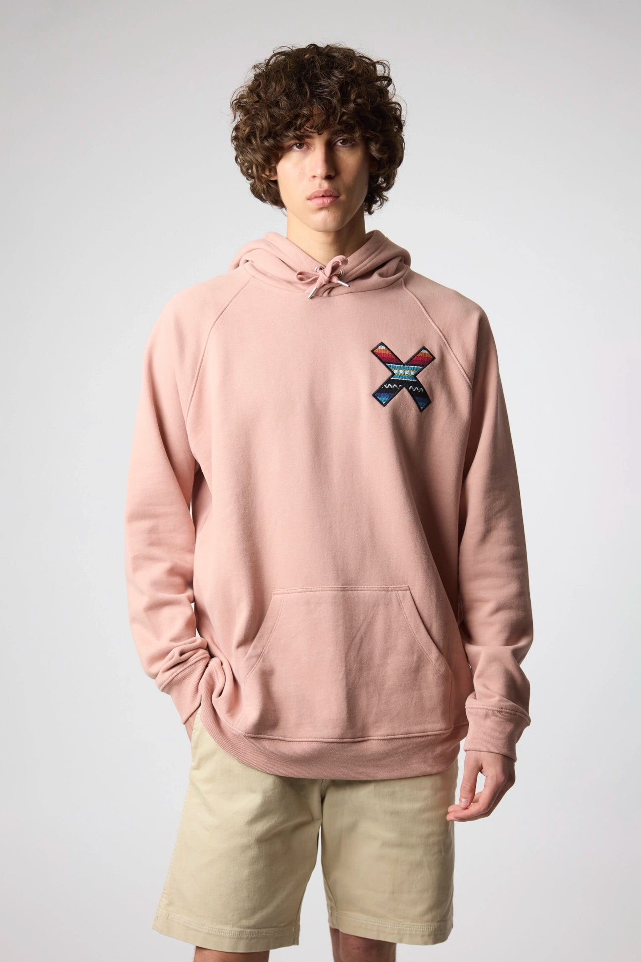 Hoodie with our classic embroidered X: front on the chest and back on the back. Lower central front pocket with opening on both sides. Made with 100% organic cotton and regular fit cut.