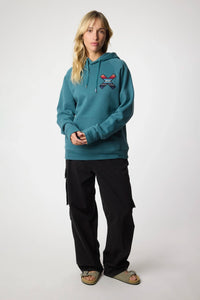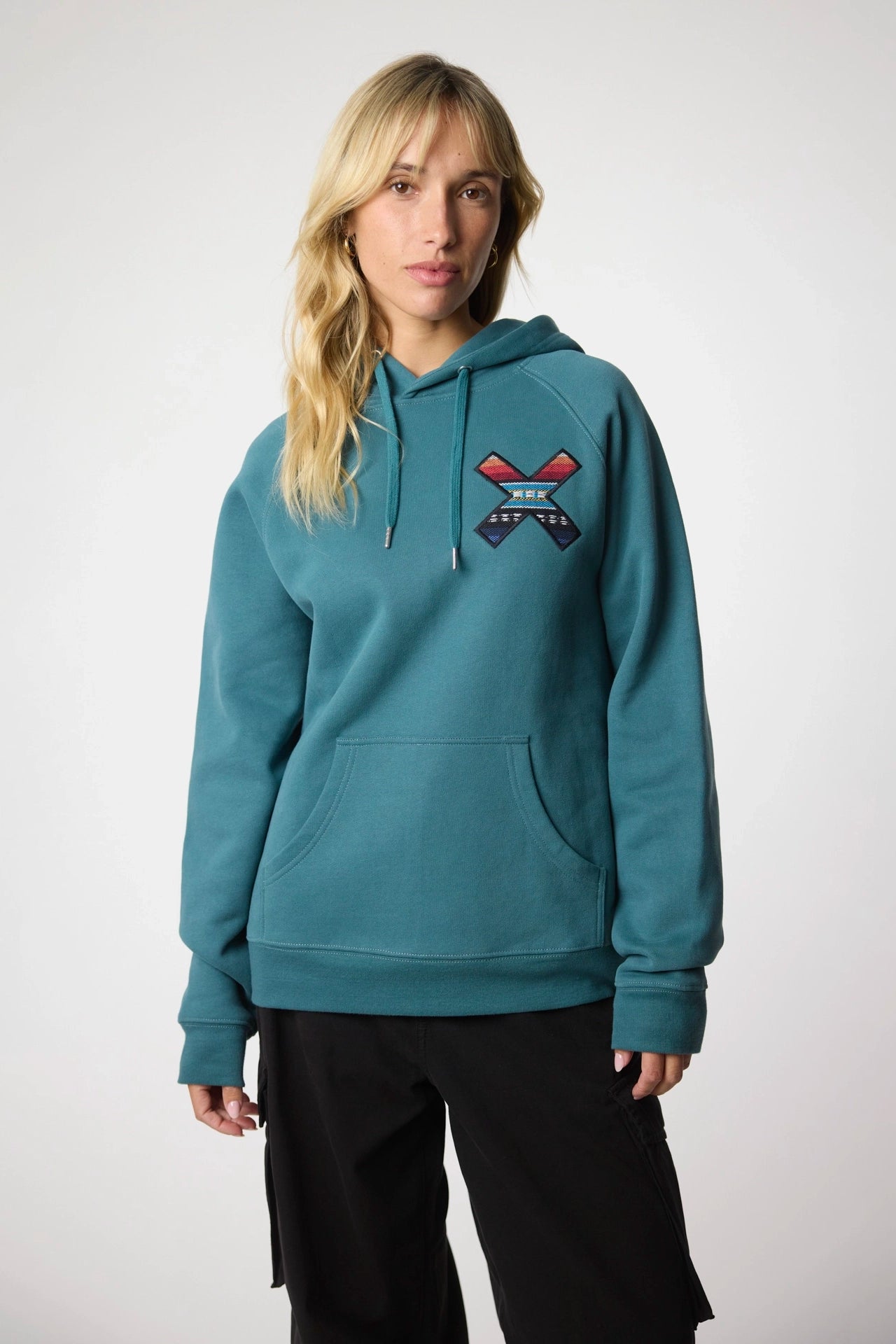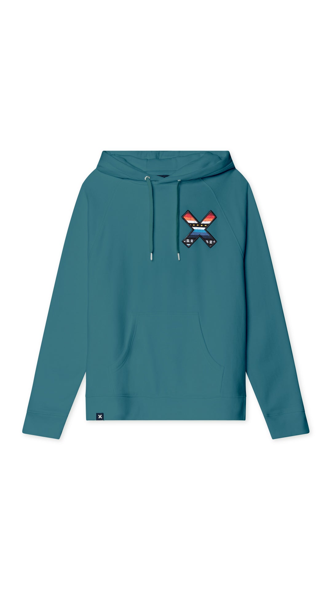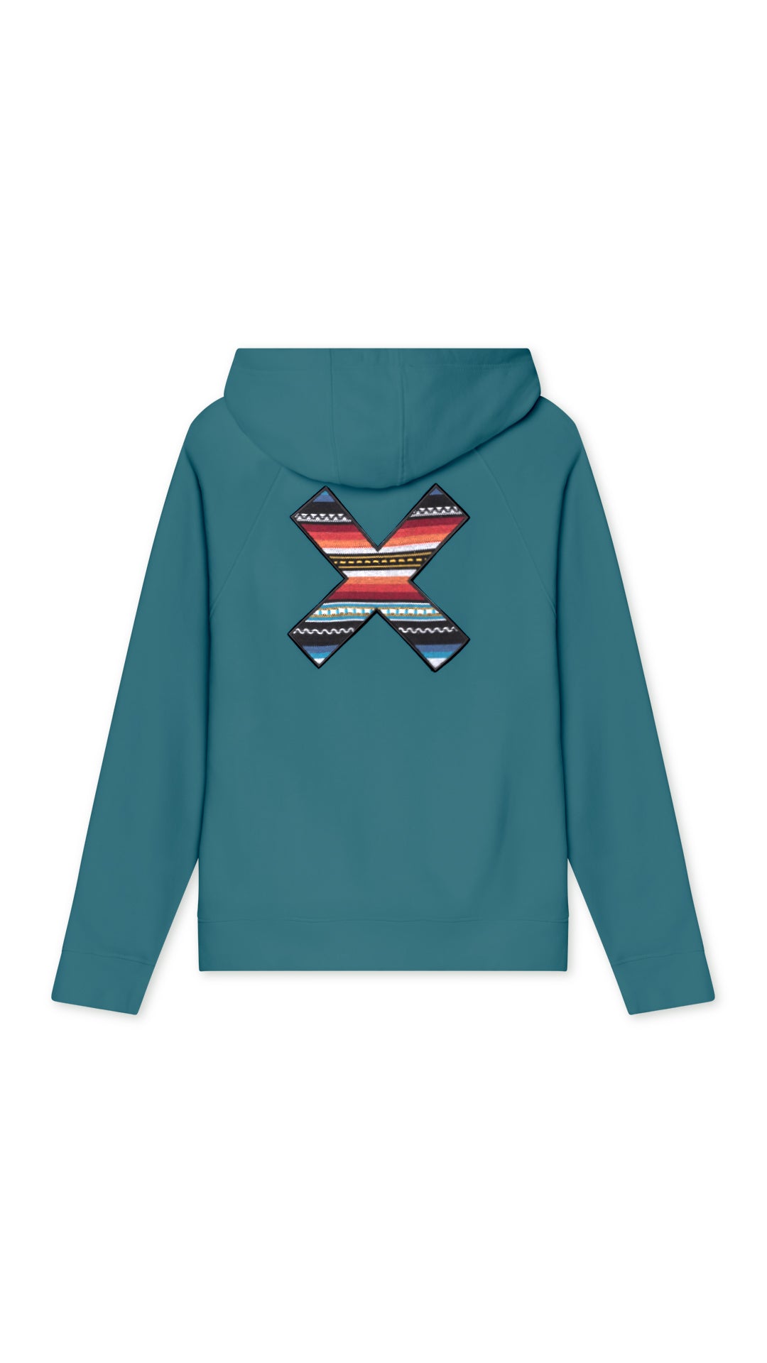 Sudadera con capucha con nuestra clásica X bordada: delantera en el pecho y trasera en la espalda. Confeccionada con 100% algodón orgánico y corte regular fit.