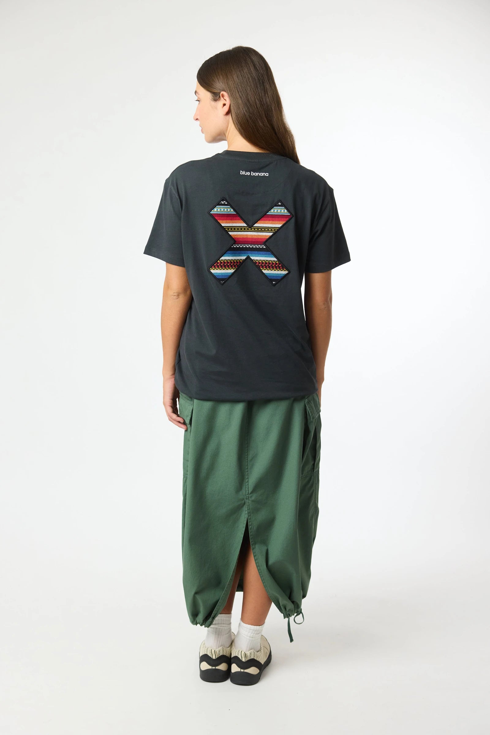 T-Shirt mit unserem klassischen X: vorne auf der Brust und hinten auf dem Rücken gestickt. Hergestellt aus 100% Bio-Baumwolle und Cropped-Schnitt.