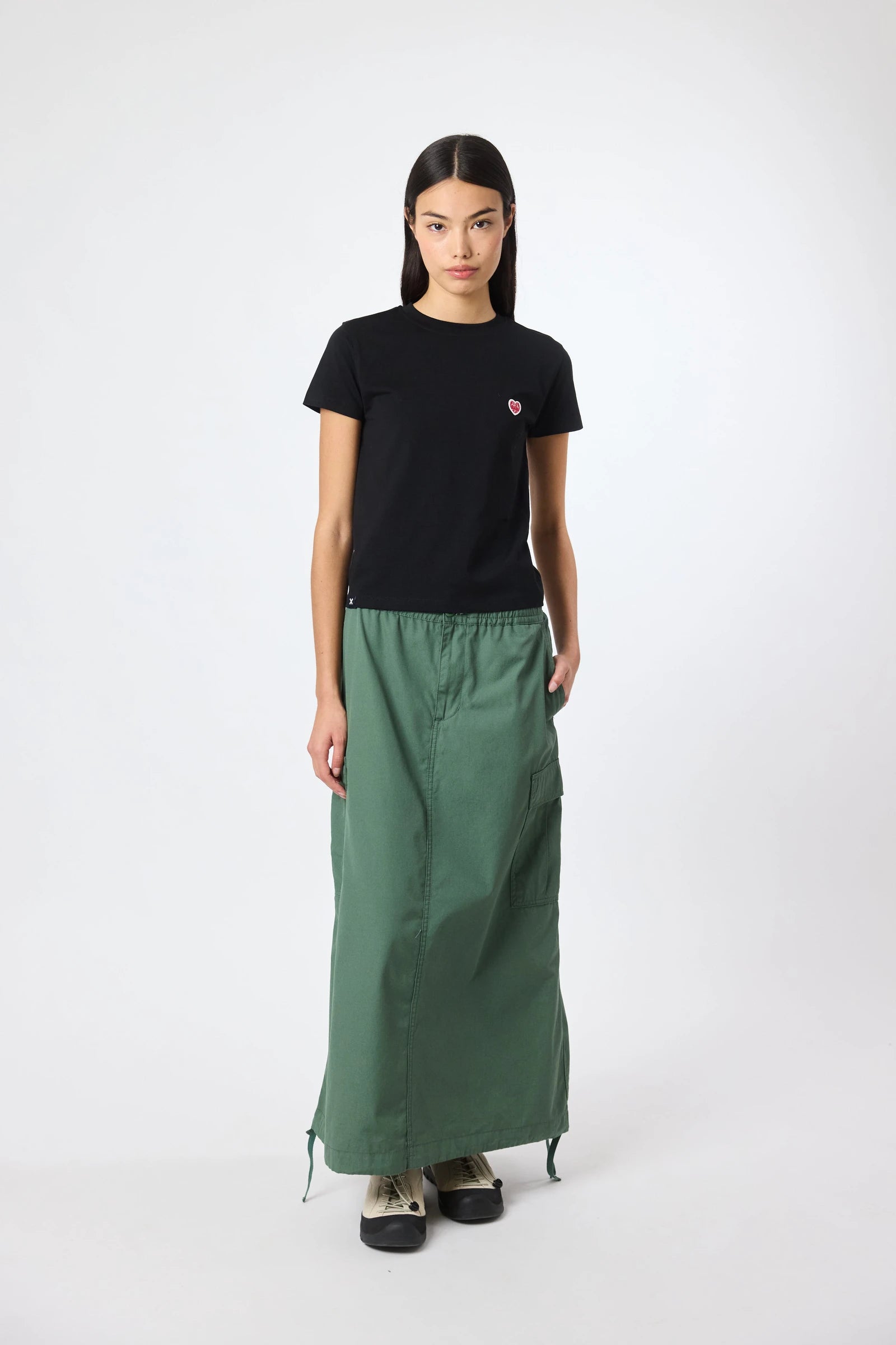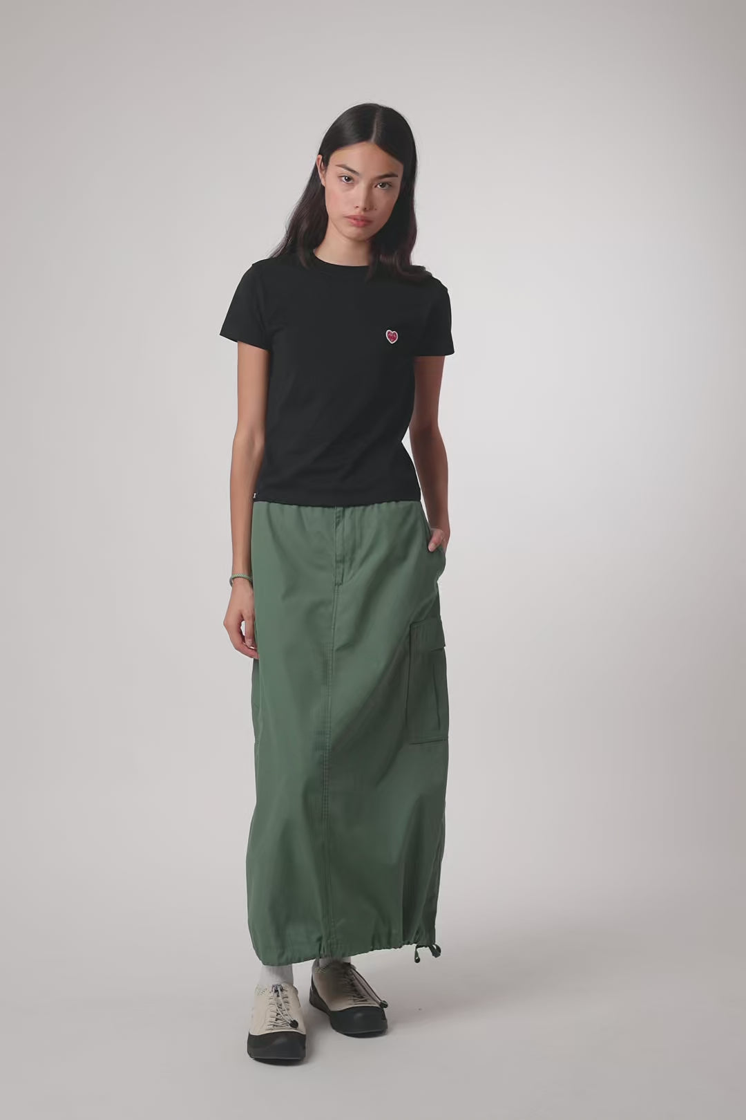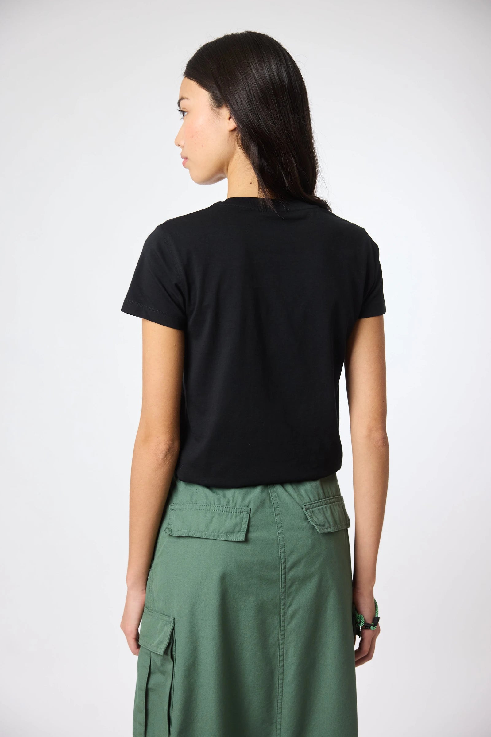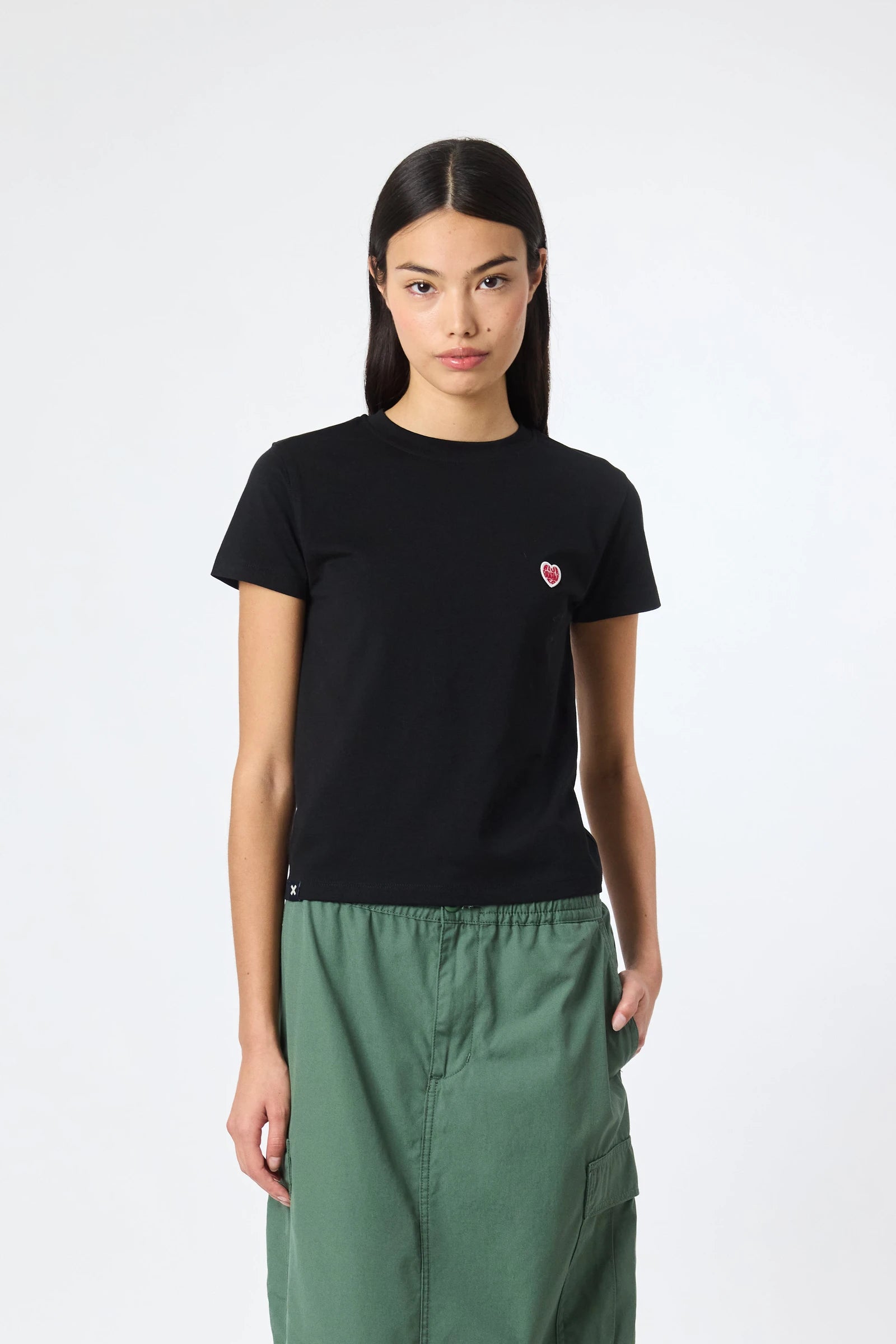 Kurzärmeliges T-Shirt mit dekorativem Patch auf der Brust. Hergestellt aus 100% Bio-Baumwolle und Cropped-Schnitt.