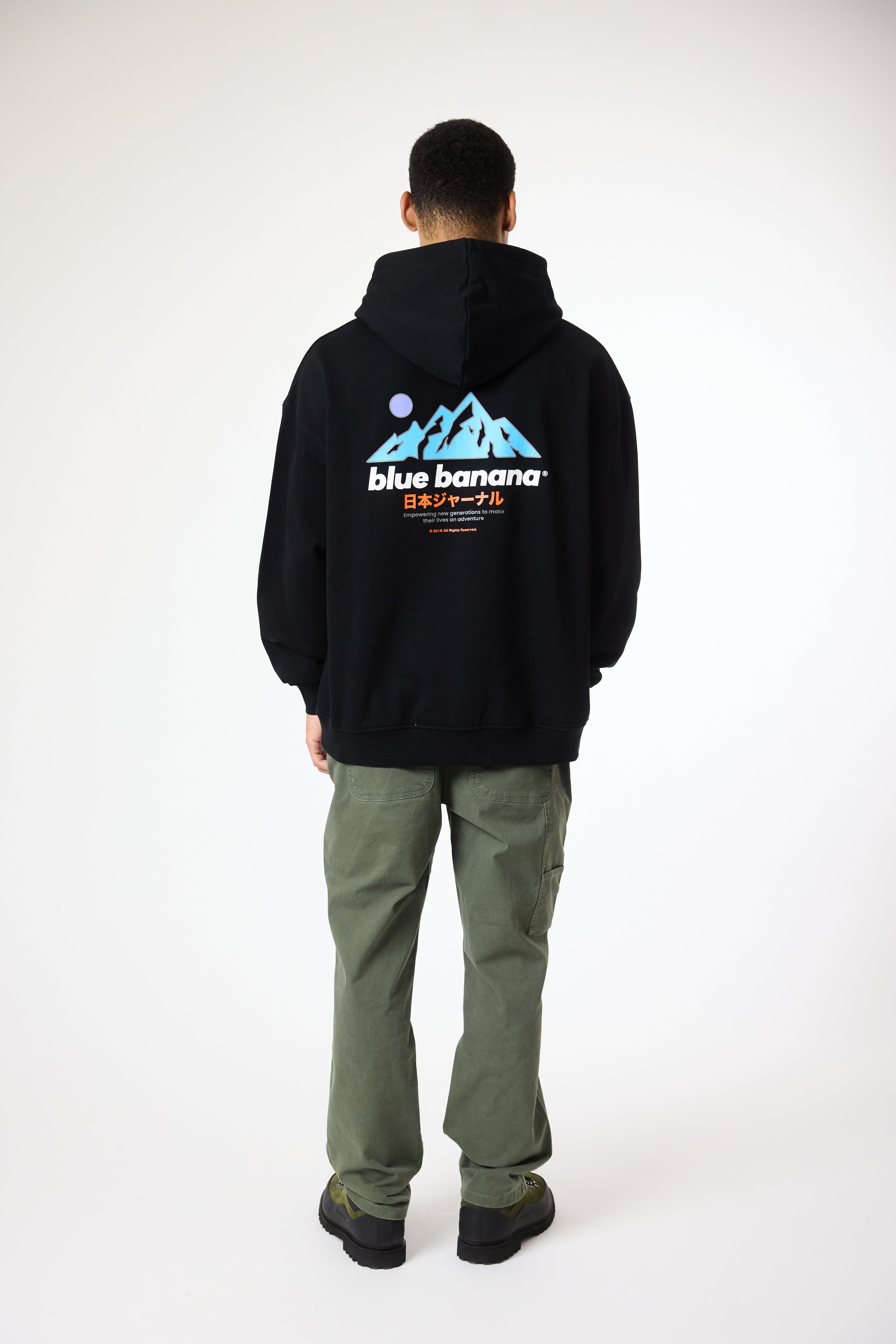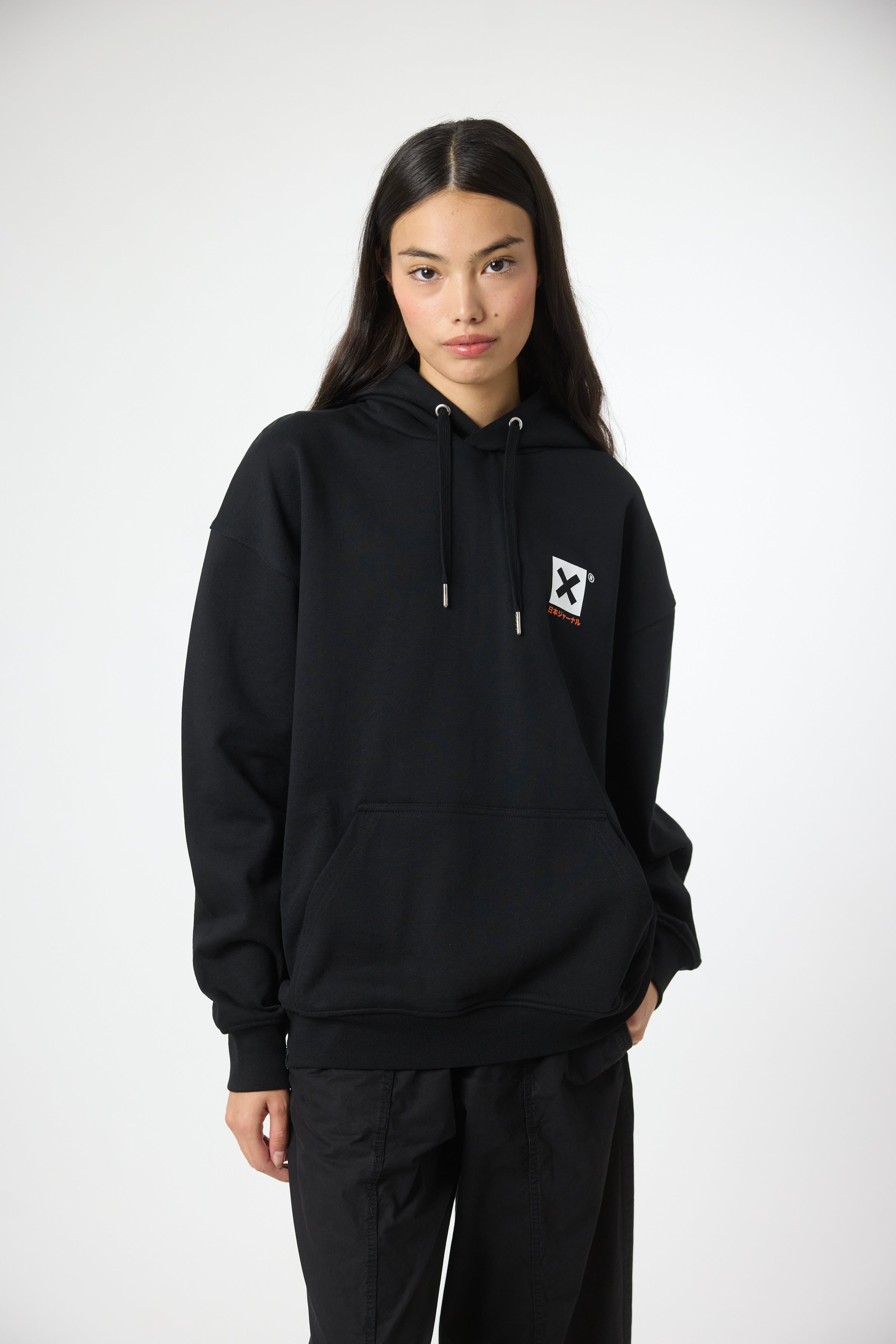 Hoodie mit Frontprint oben links und zentralem Rückenprint.