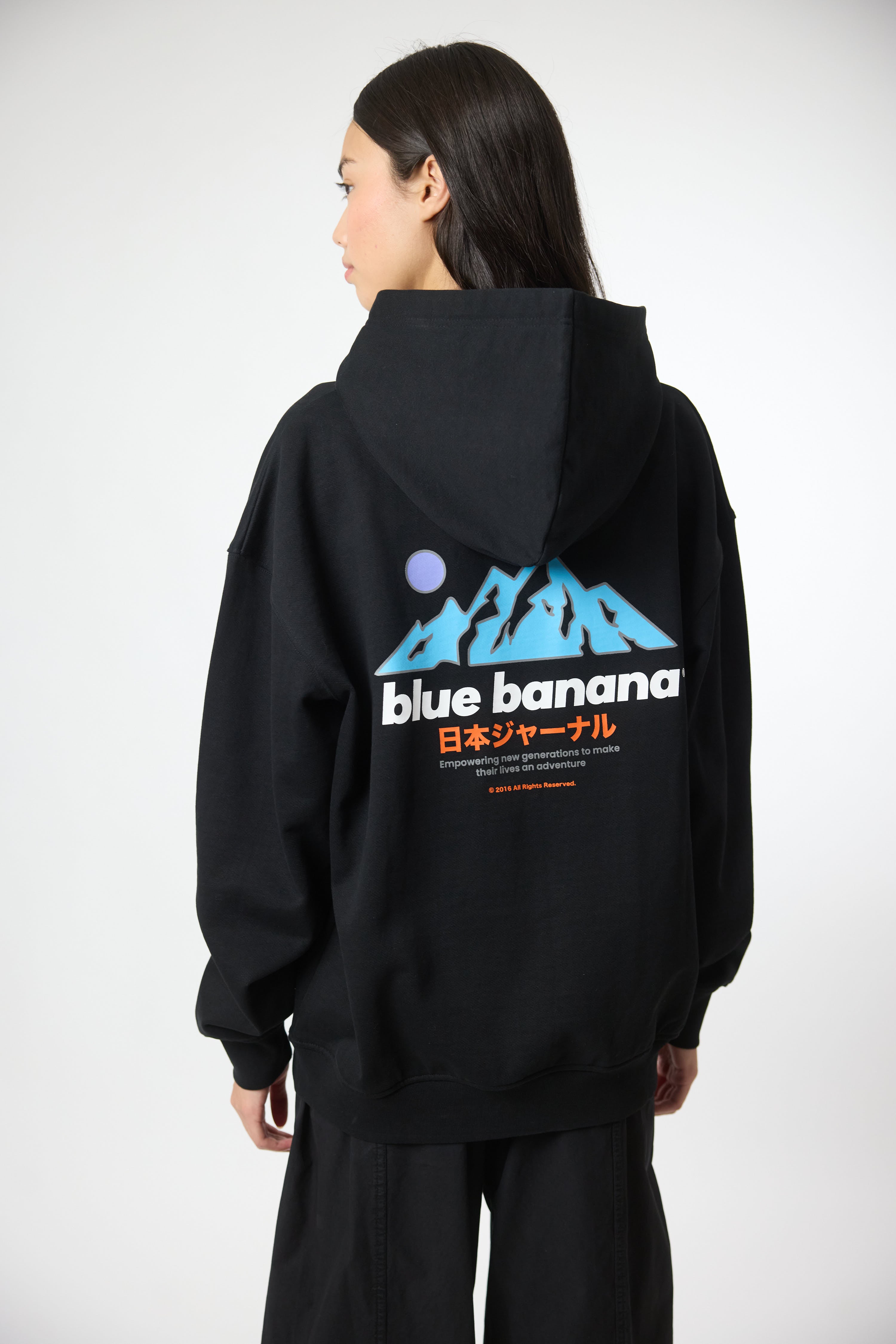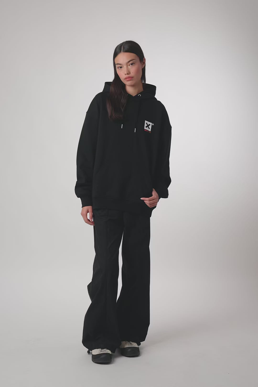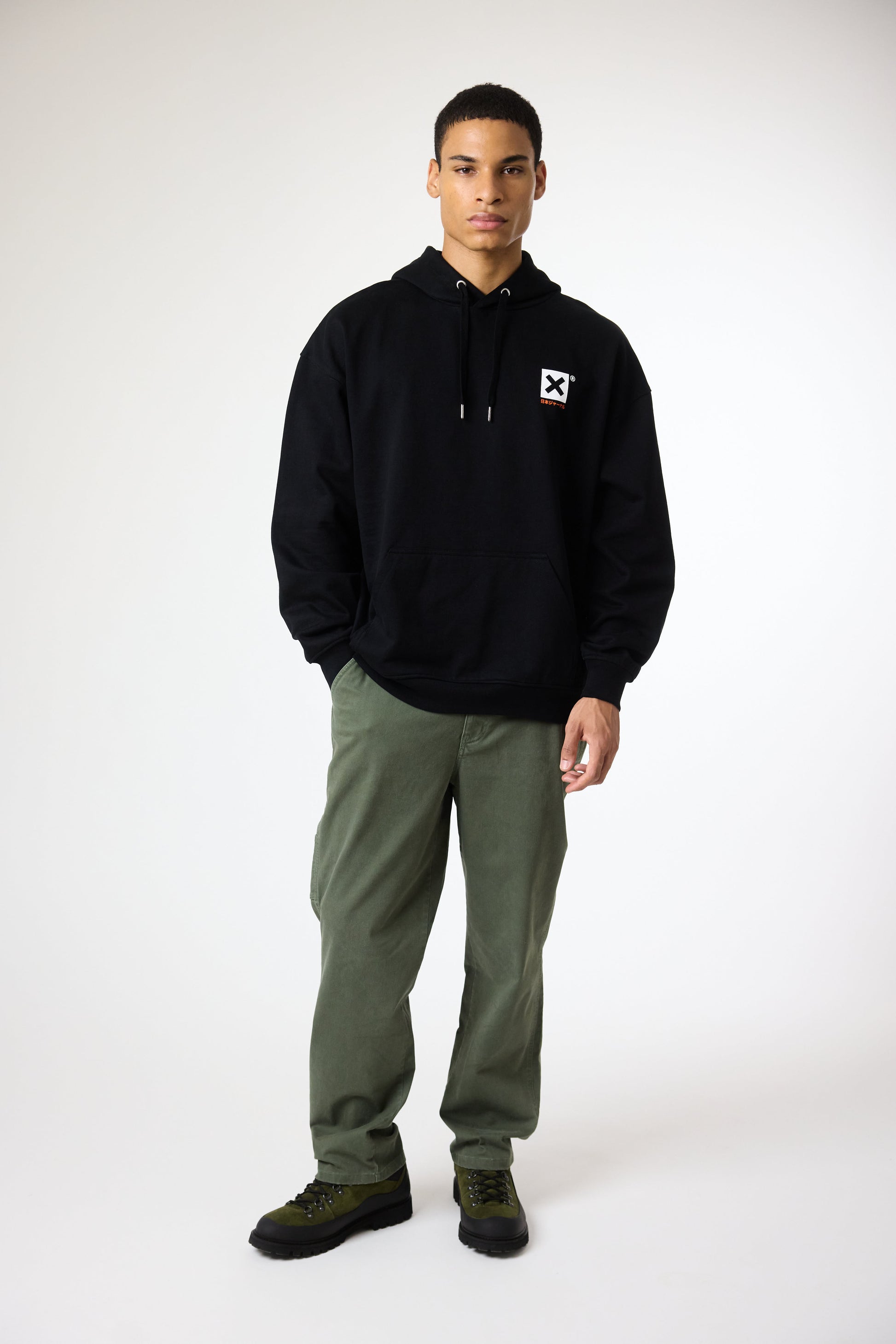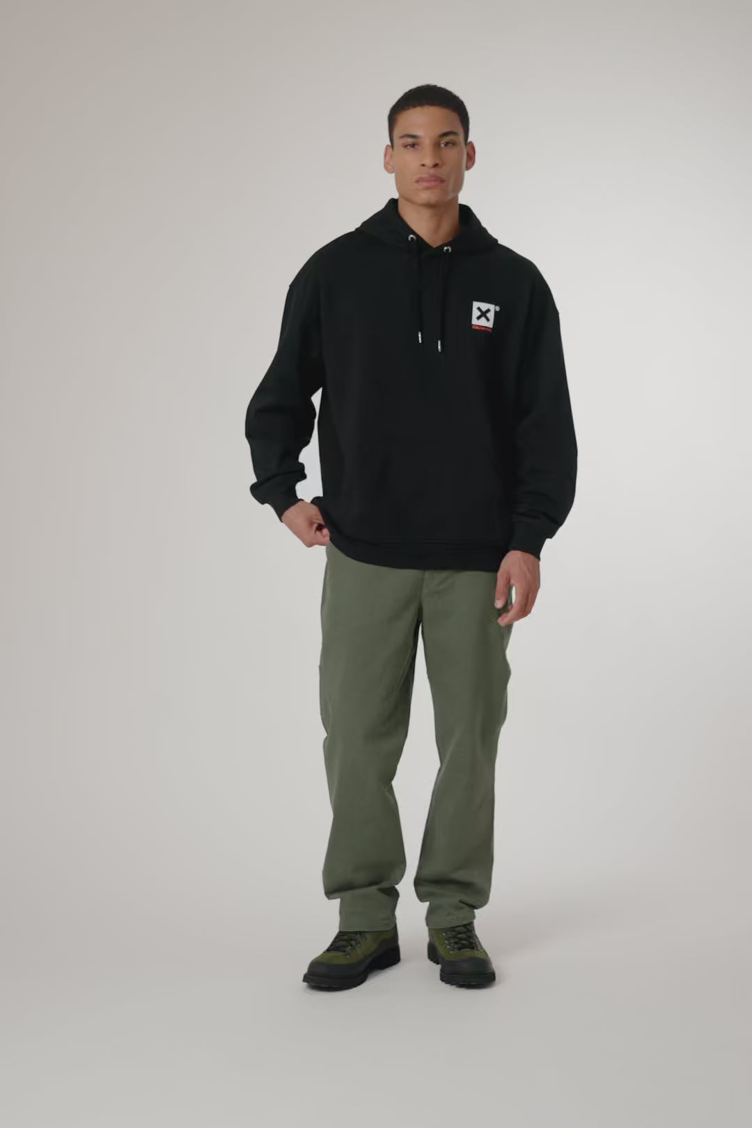 Hoodie mit Frontprint oben links und zentralem Rückenprint. Vordere Kängurutasche mit seitlichem Eingriff. Hergestellt aus 100% Bio-Baumwolle und Regular-Fit.