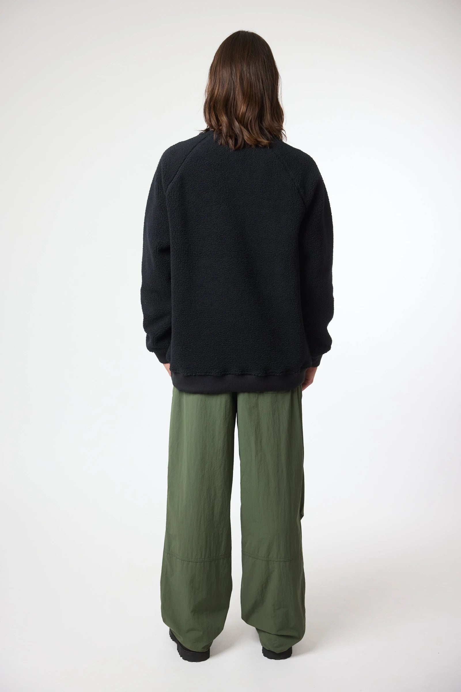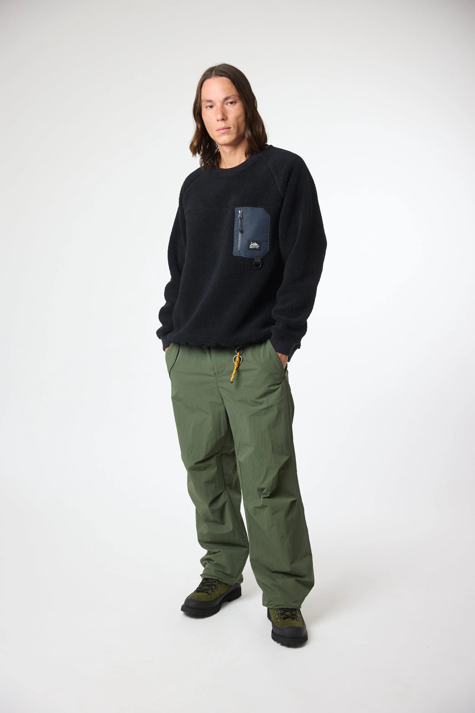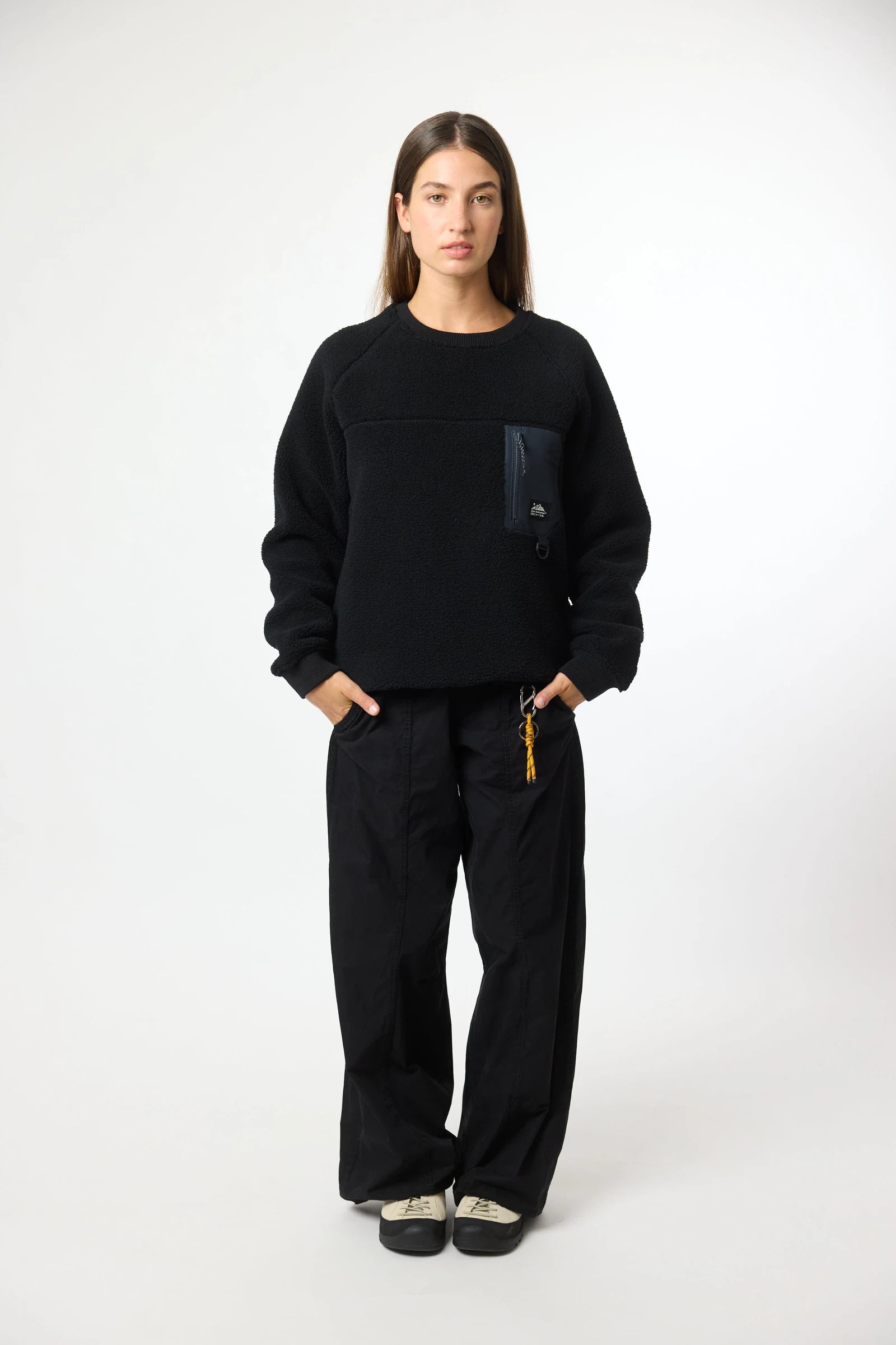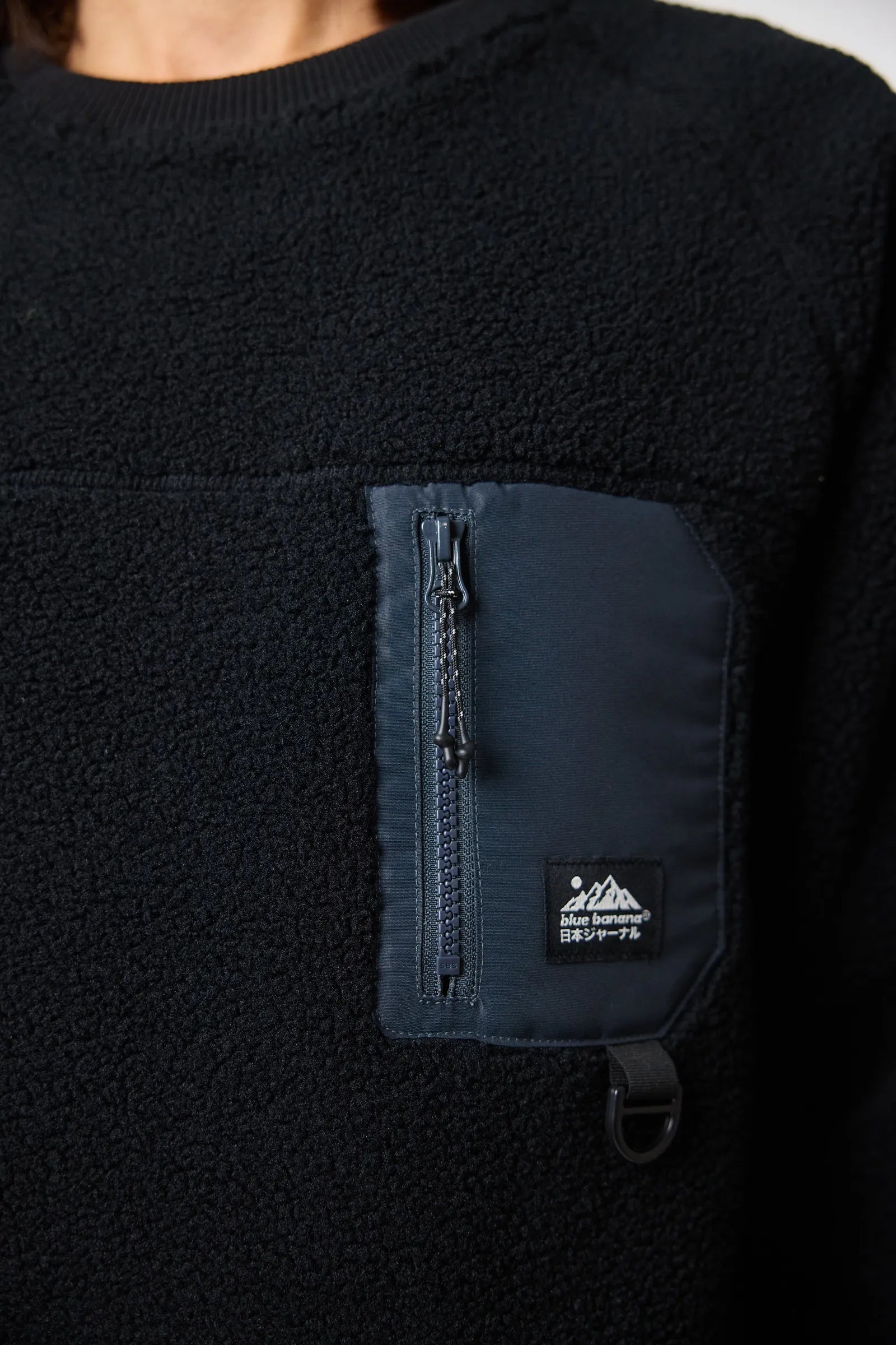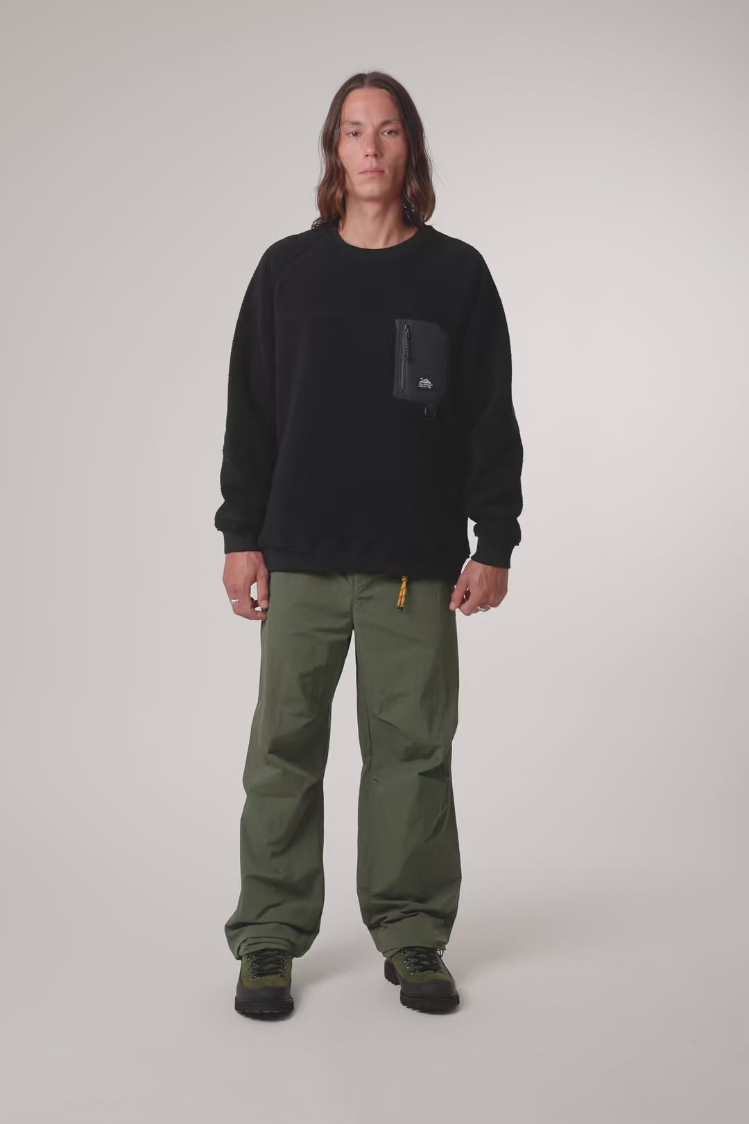 Sweatshirt mit Fronttasche mit vertikalem Reißverschluss.