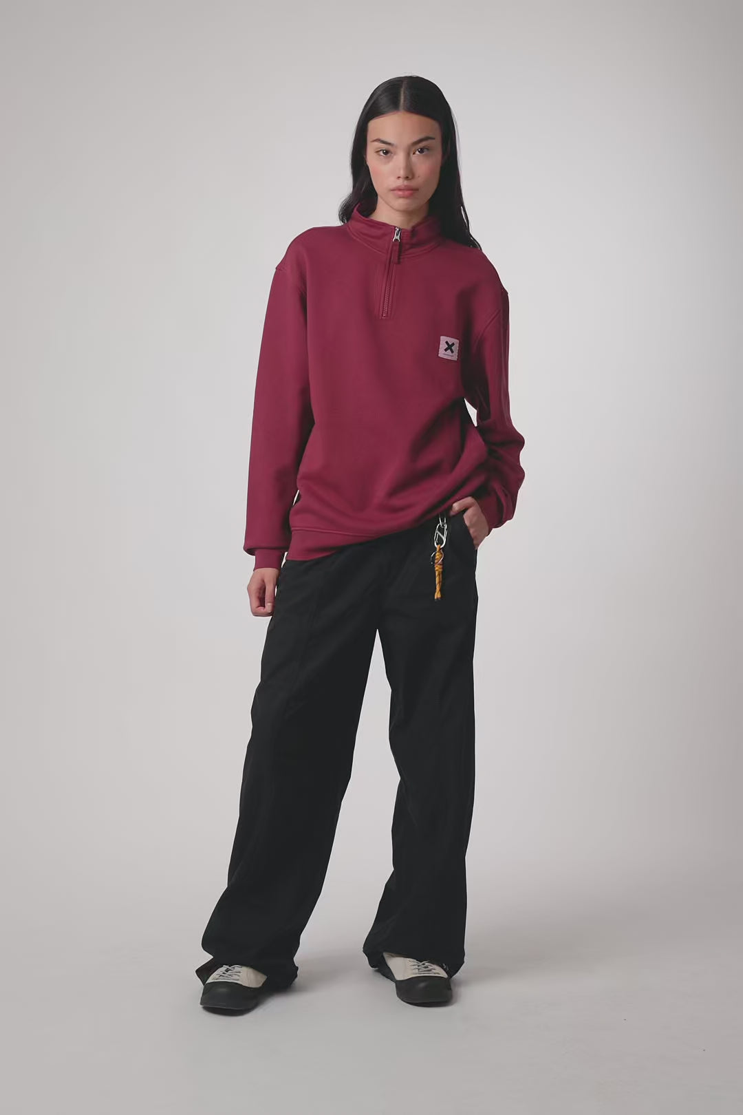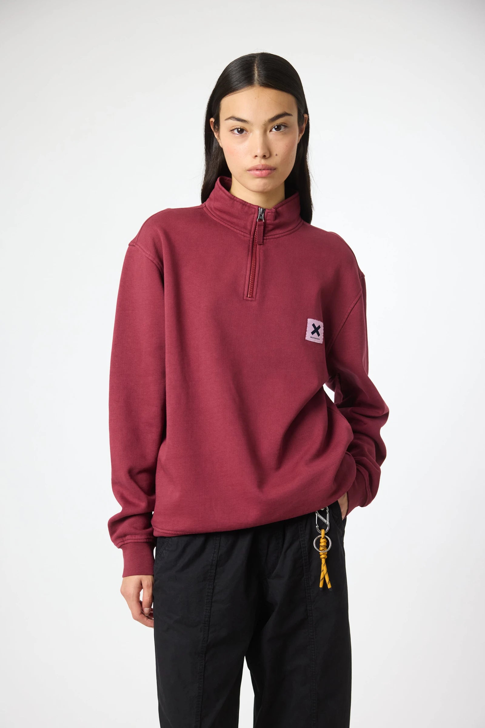 Washed-Sweatshirt mit Logo auf der Brust in Form eines Etiketts. Hergestellt aus 100% Bio-Baumwolle. Regular-Fit und Kragen mit Reißverschluss.
