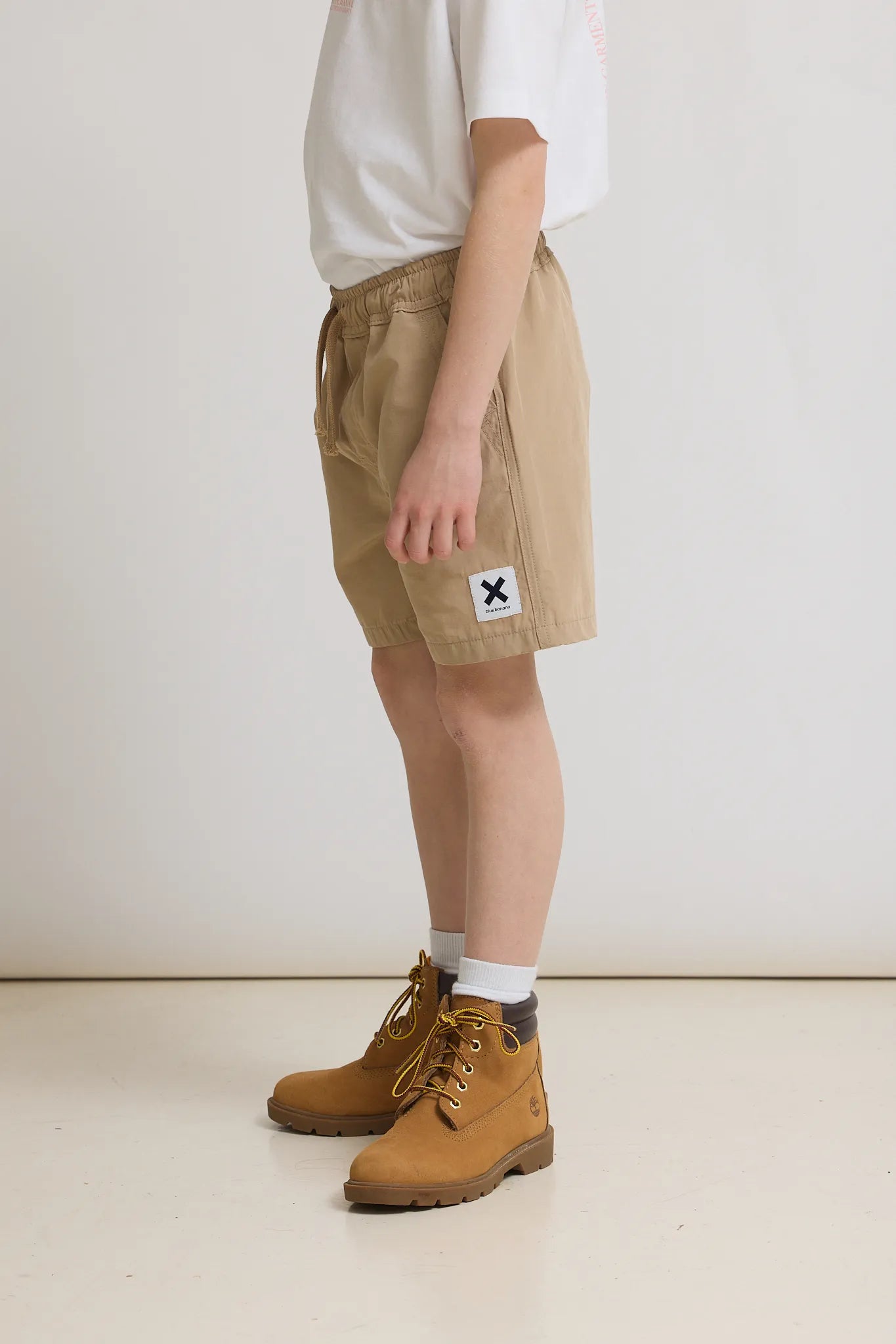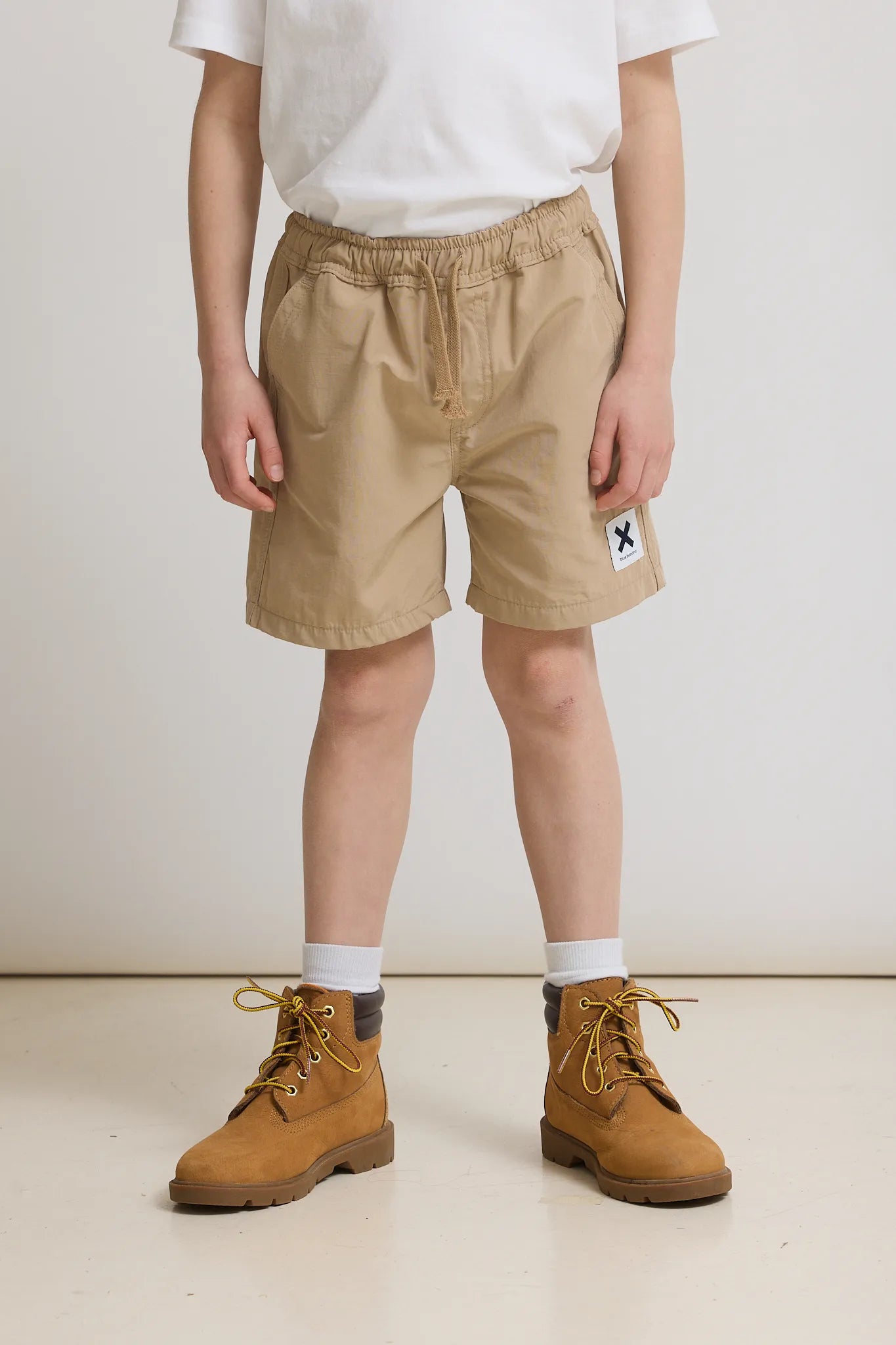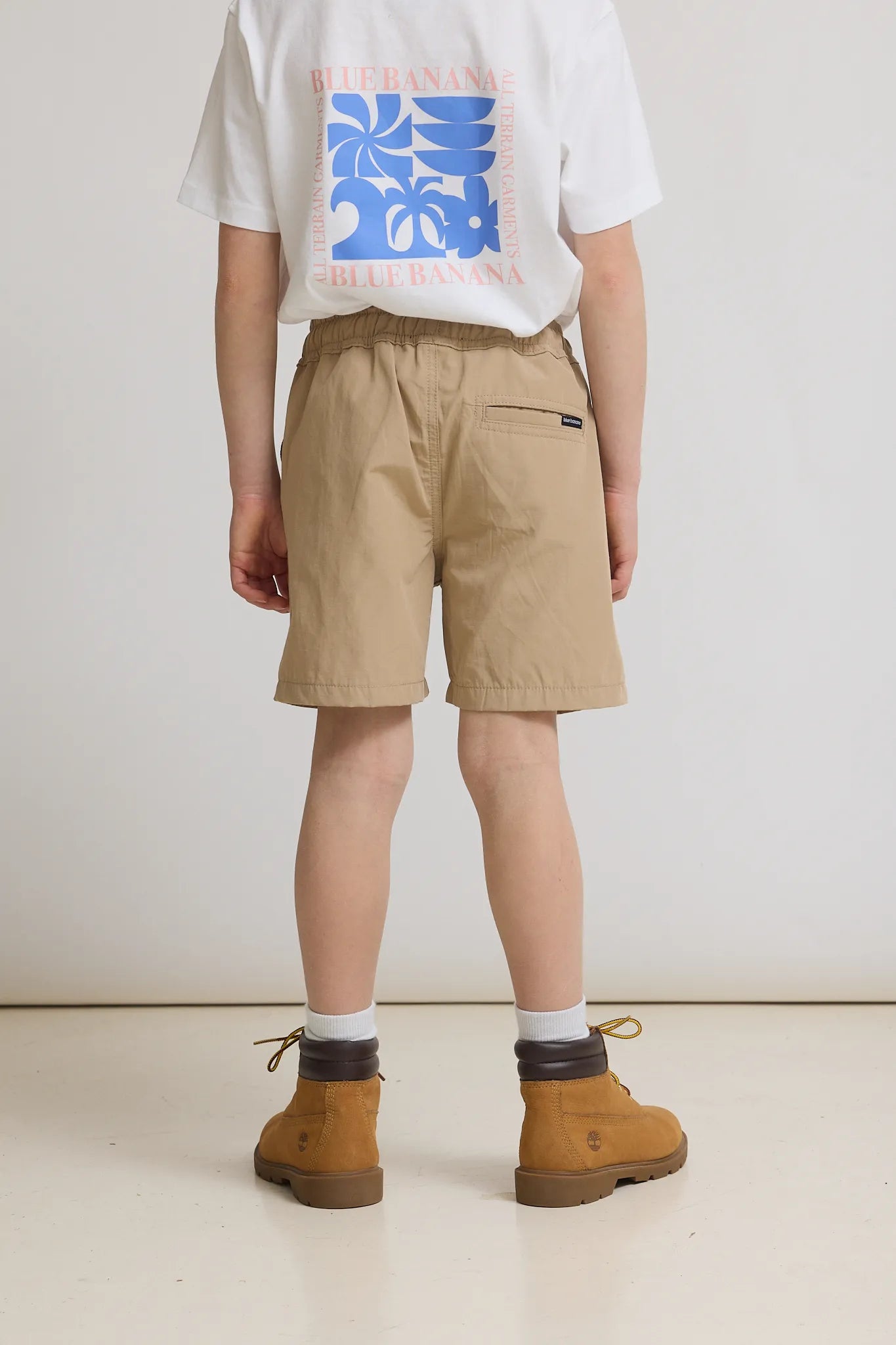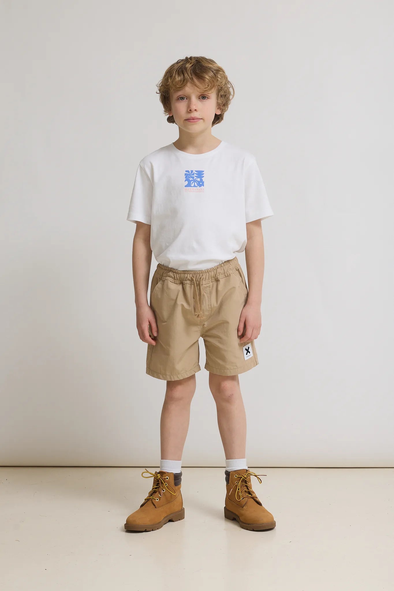 Pantalón corto con logo en etiqueta tejida. Cintura elástica y cordones ajustables. Bolsillos laterales superiores. Bolsillo trasero con etiqueta. Confeccionado con algodón y poliéster.