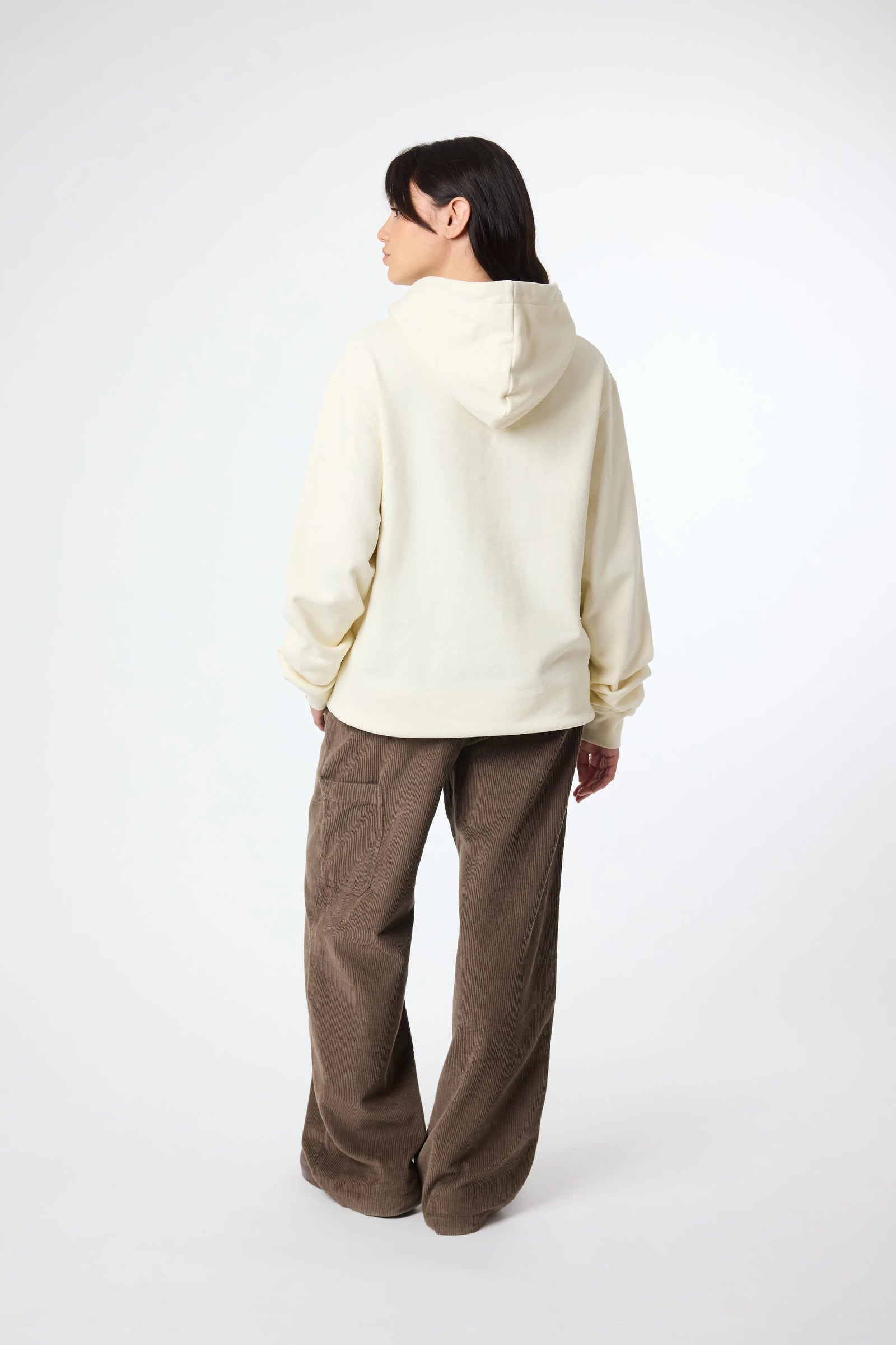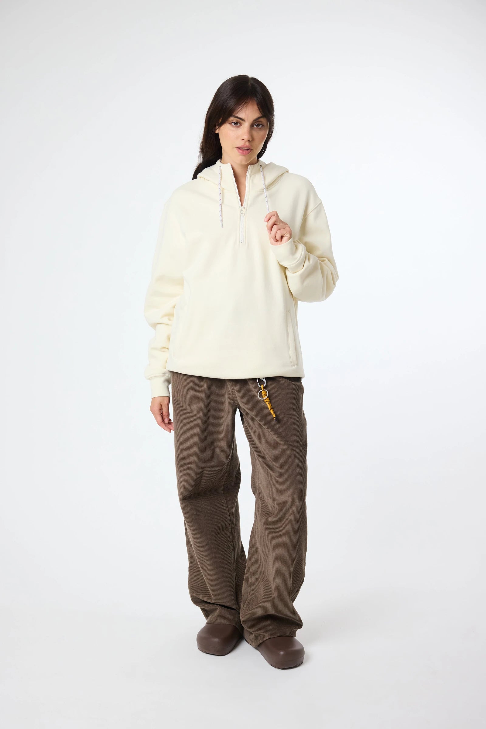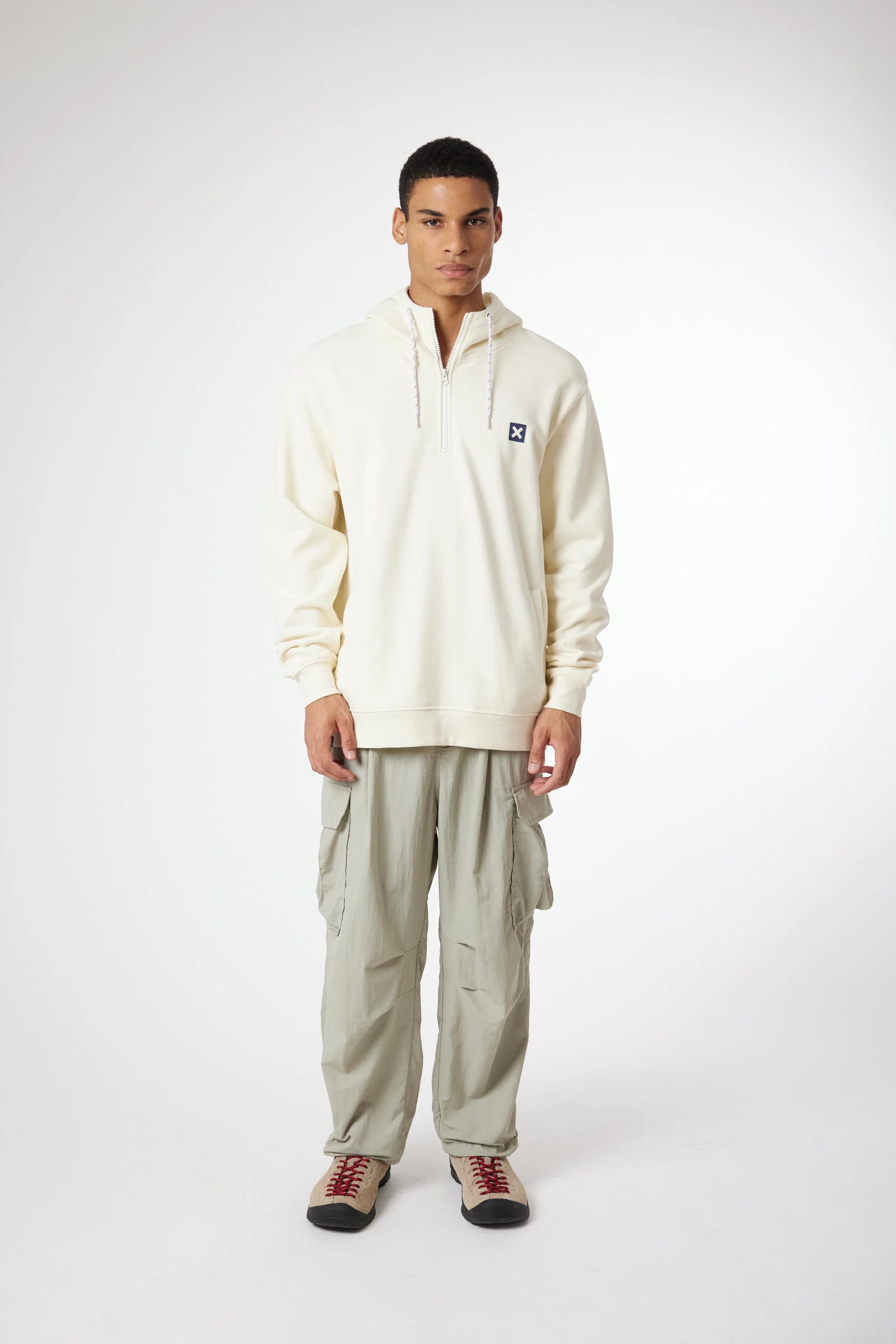 Hoodie mit Frontprint und Reißverschluss am Kragen. Vordere Kängurutasche mit seitlichem Eingriff. Hergestellt aus 100% Bio-Baumwolle und Regular-Fit.