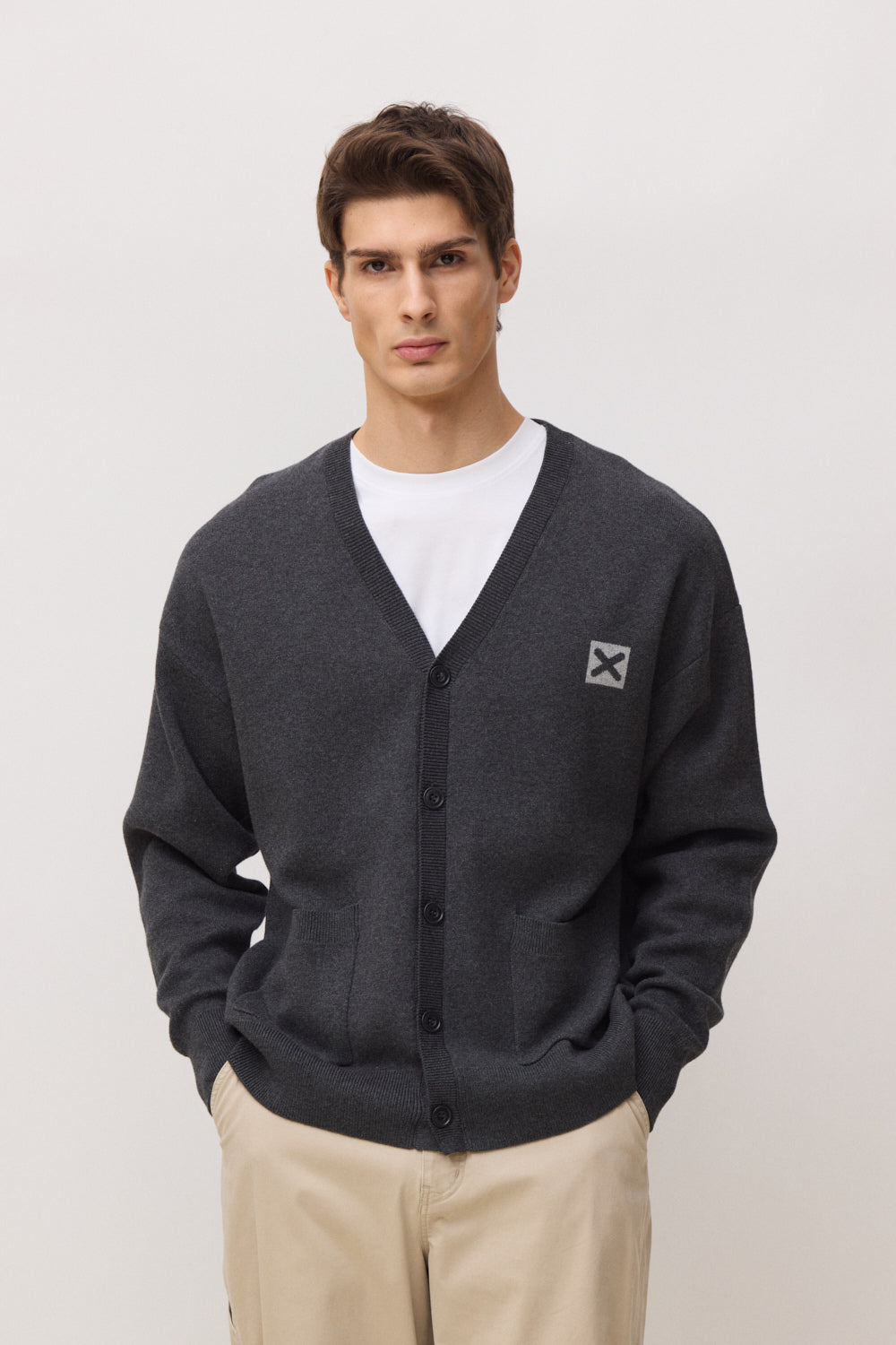 - Cárdigan de punto con cuello en V y cierre de botones