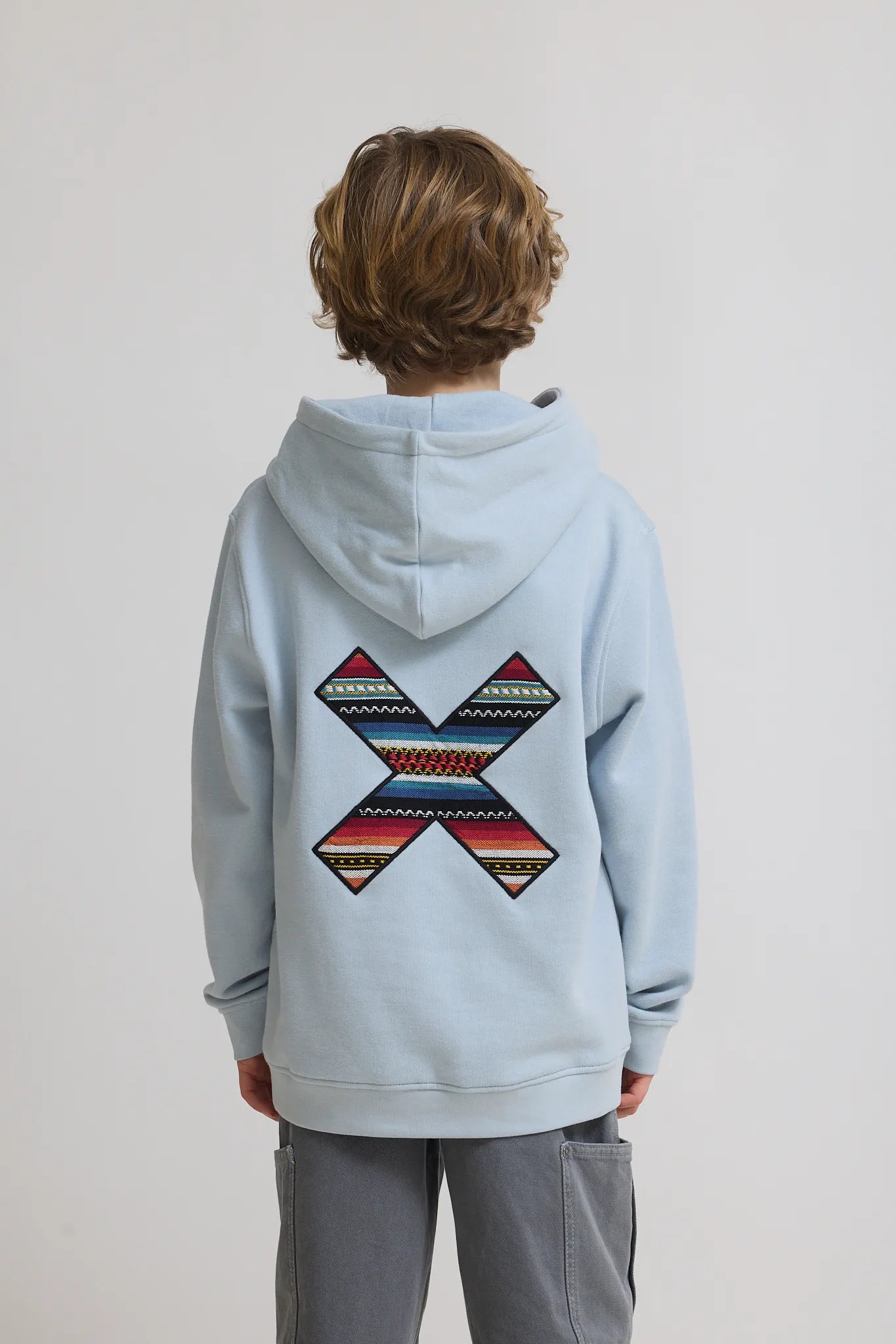 Hoodie con nuestra clásica X bordada: delantera en el pecho y trasera en la espalda. Bolsillo delantero centrar inferior con apertura en ambos lados. Confeccionada con algodón 100% orgánico.