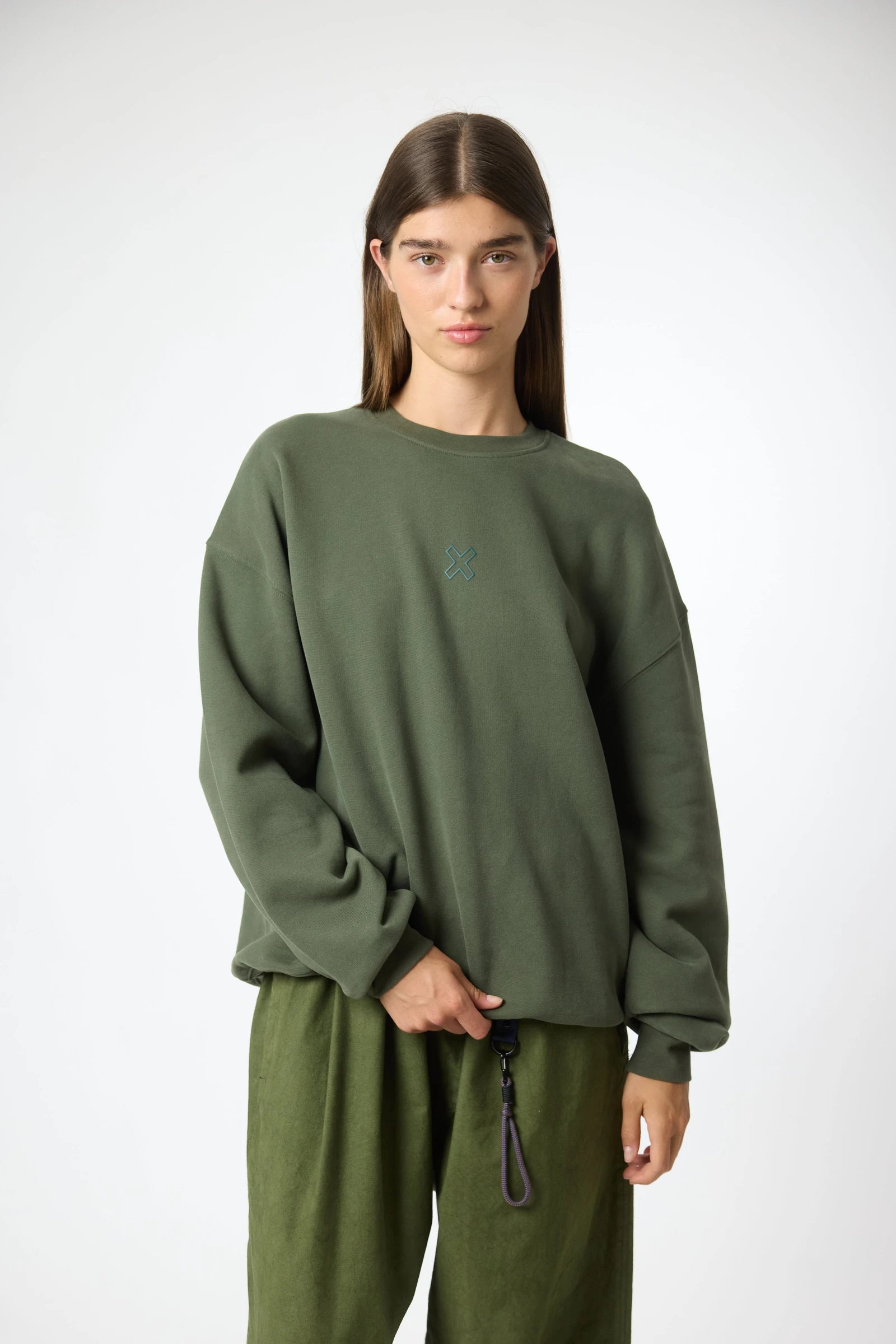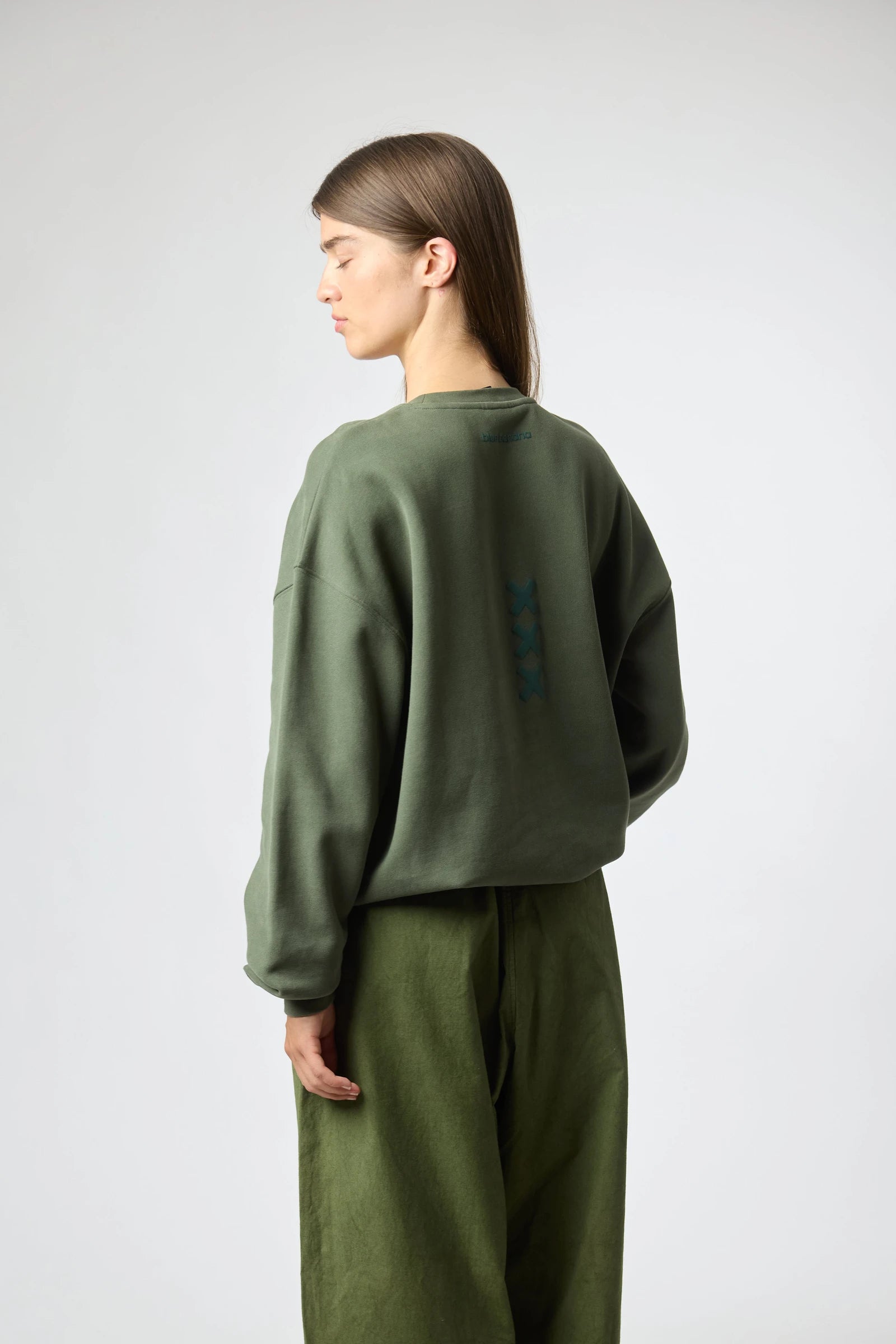 Sweatshirt mit Front- und Rückprint. Hergestellt aus 100% Bio-Baumwolle, Oversize Fit.
