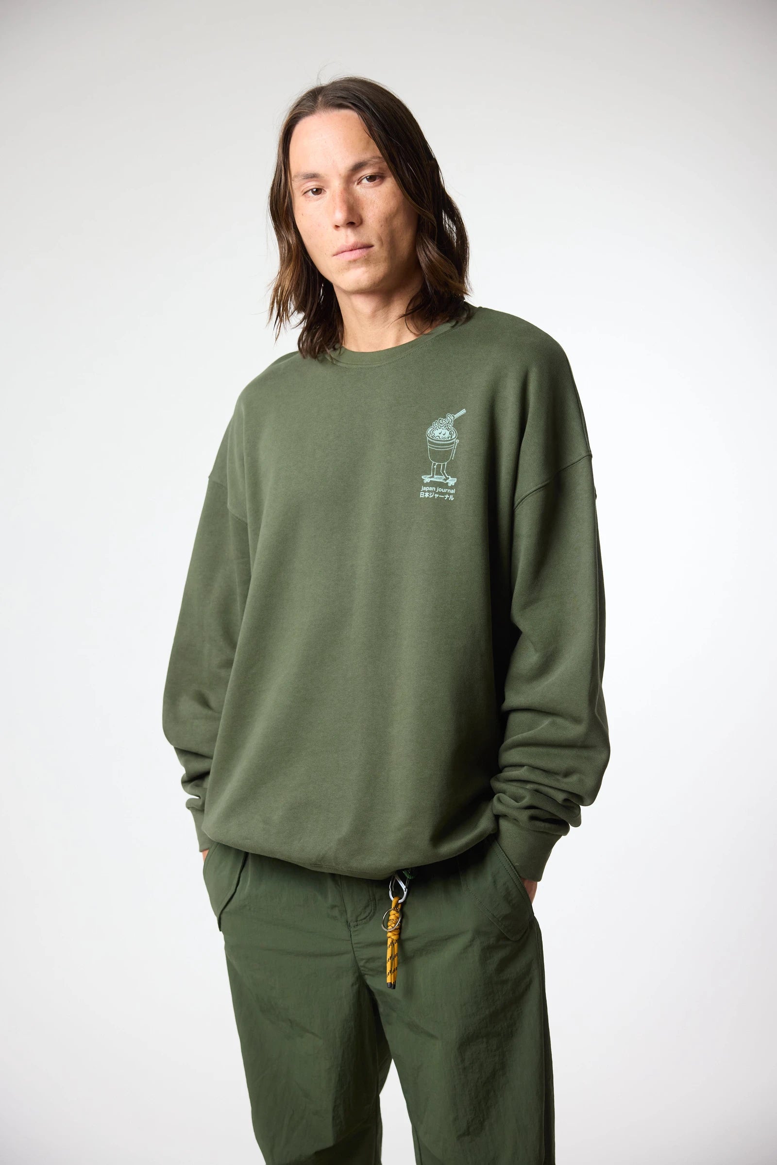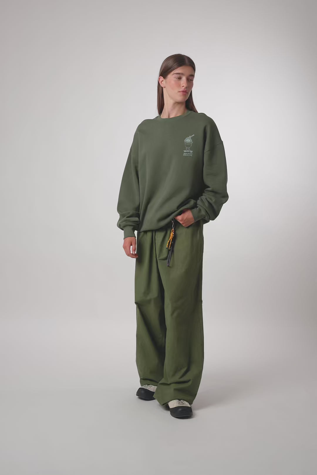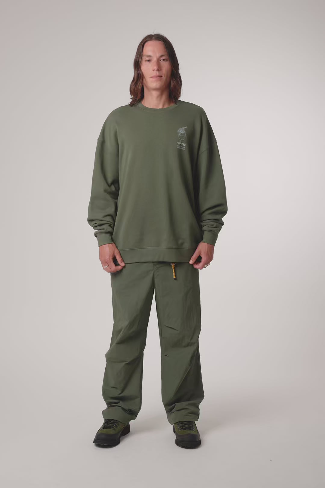 Sweatshirt mit Print vorne oben links und zentralem Print hinten. Hergestellt aus 100% Bio-Baumwolle, Oversize-Schnitt.