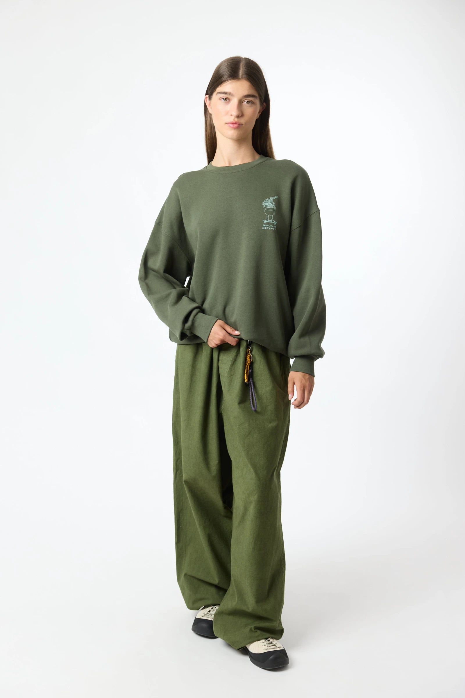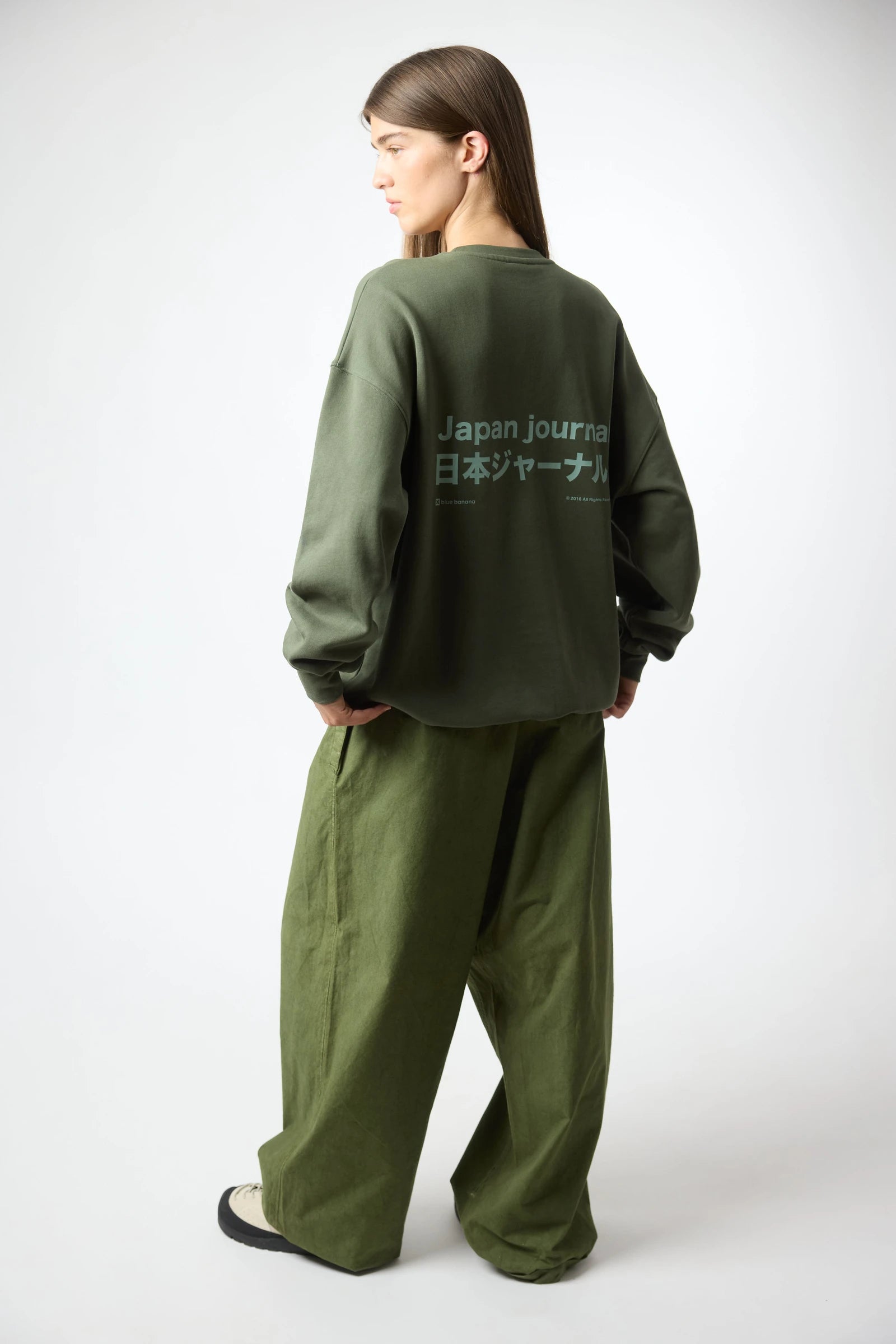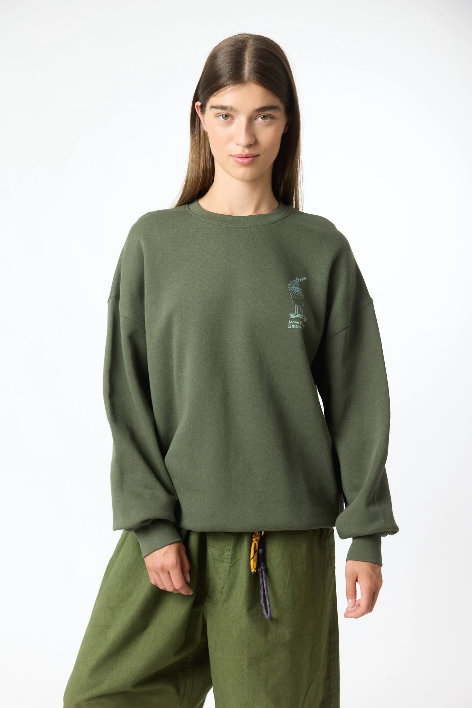 Sweatshirt mit Print vorne oben links und zentralem Print hinten. Hergestellt aus 100% Bio-Baumwolle, Oversize-Schnitt.