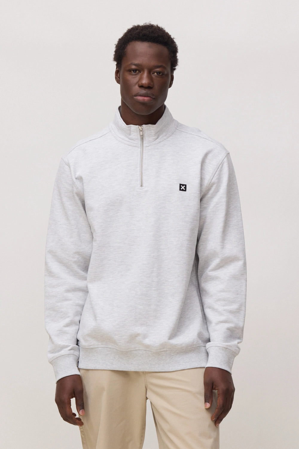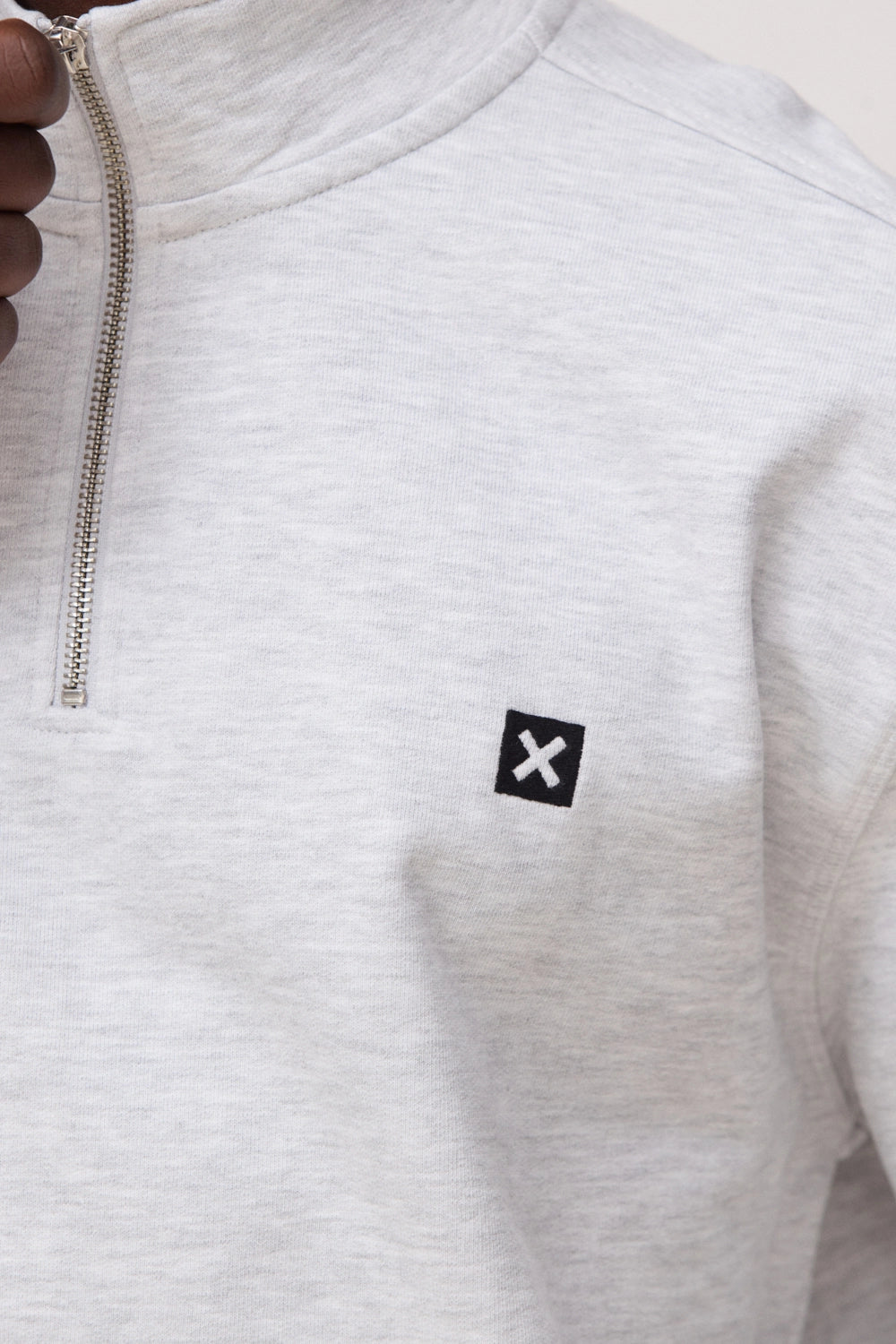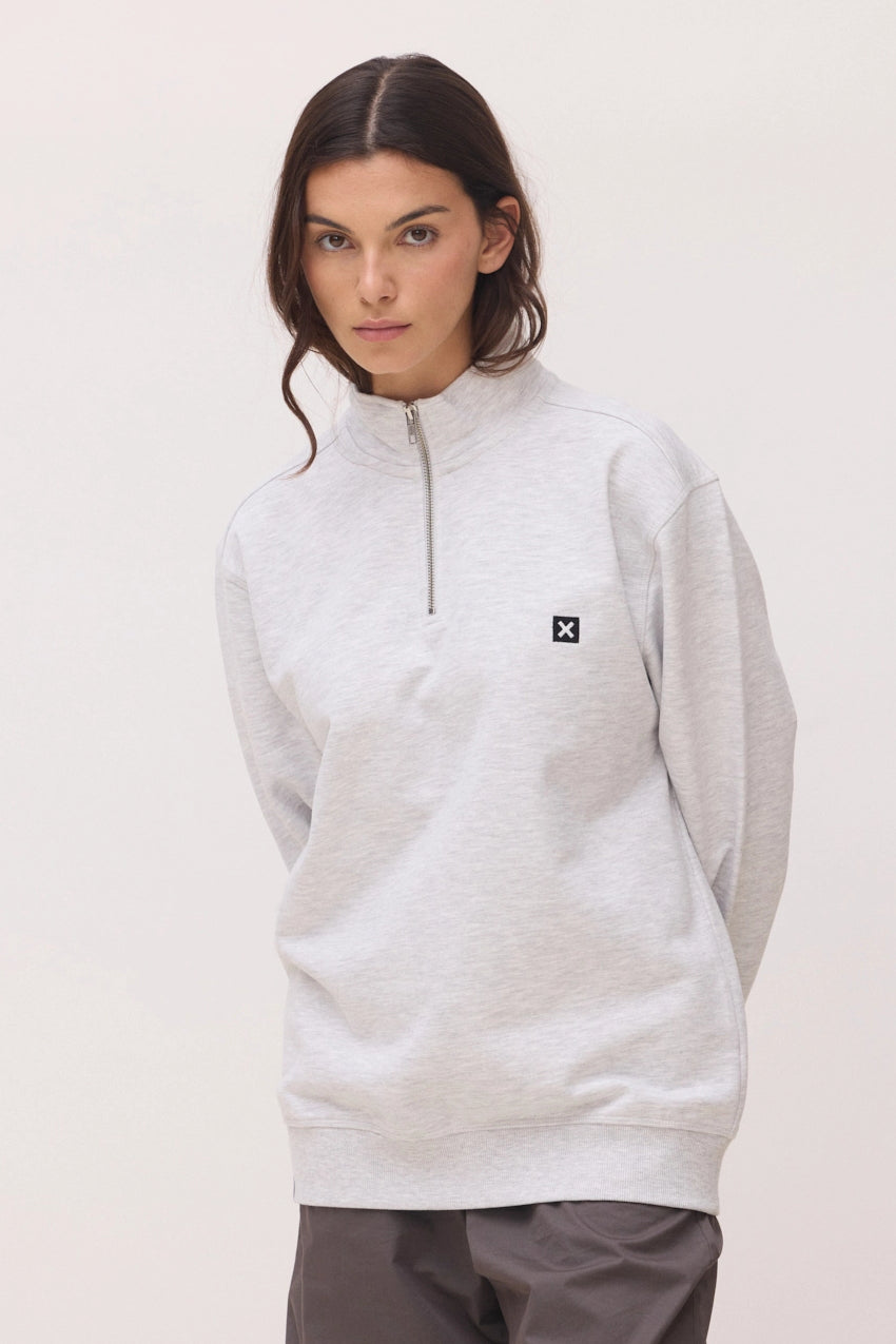 LIGHT GREY MELANGE LOGO HALF ZIP CREW