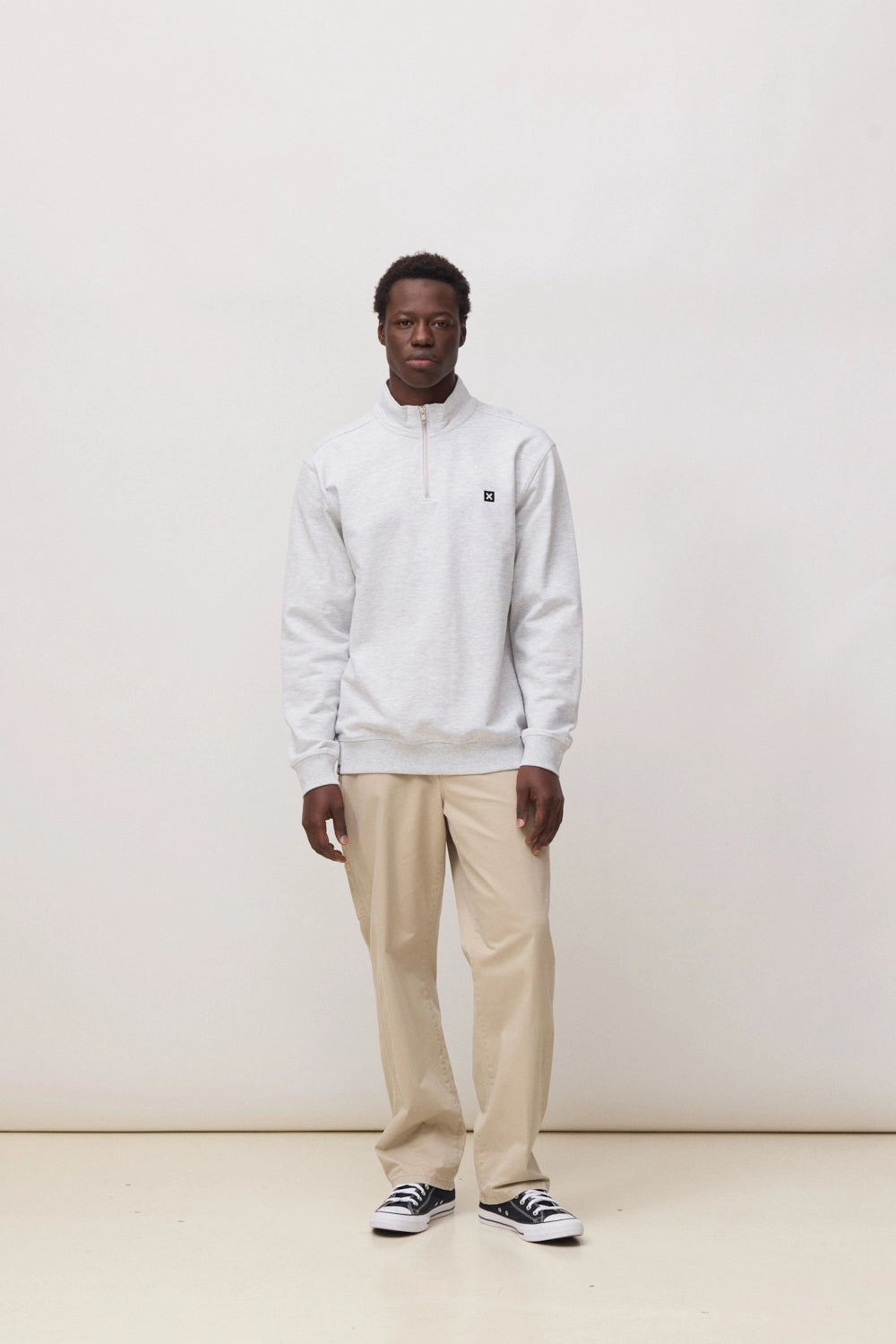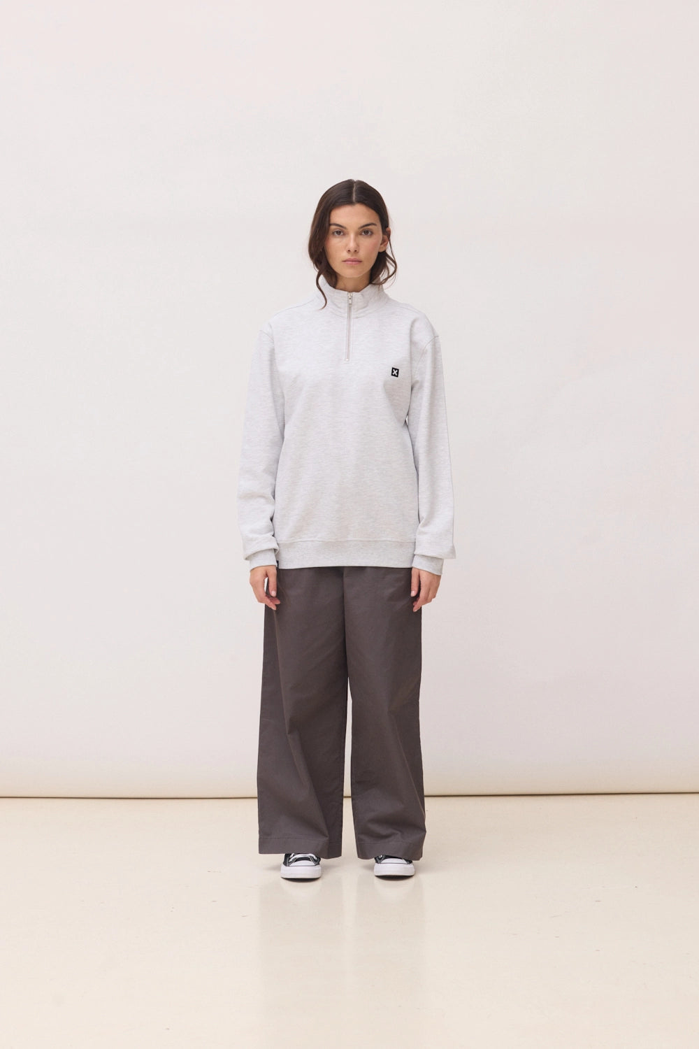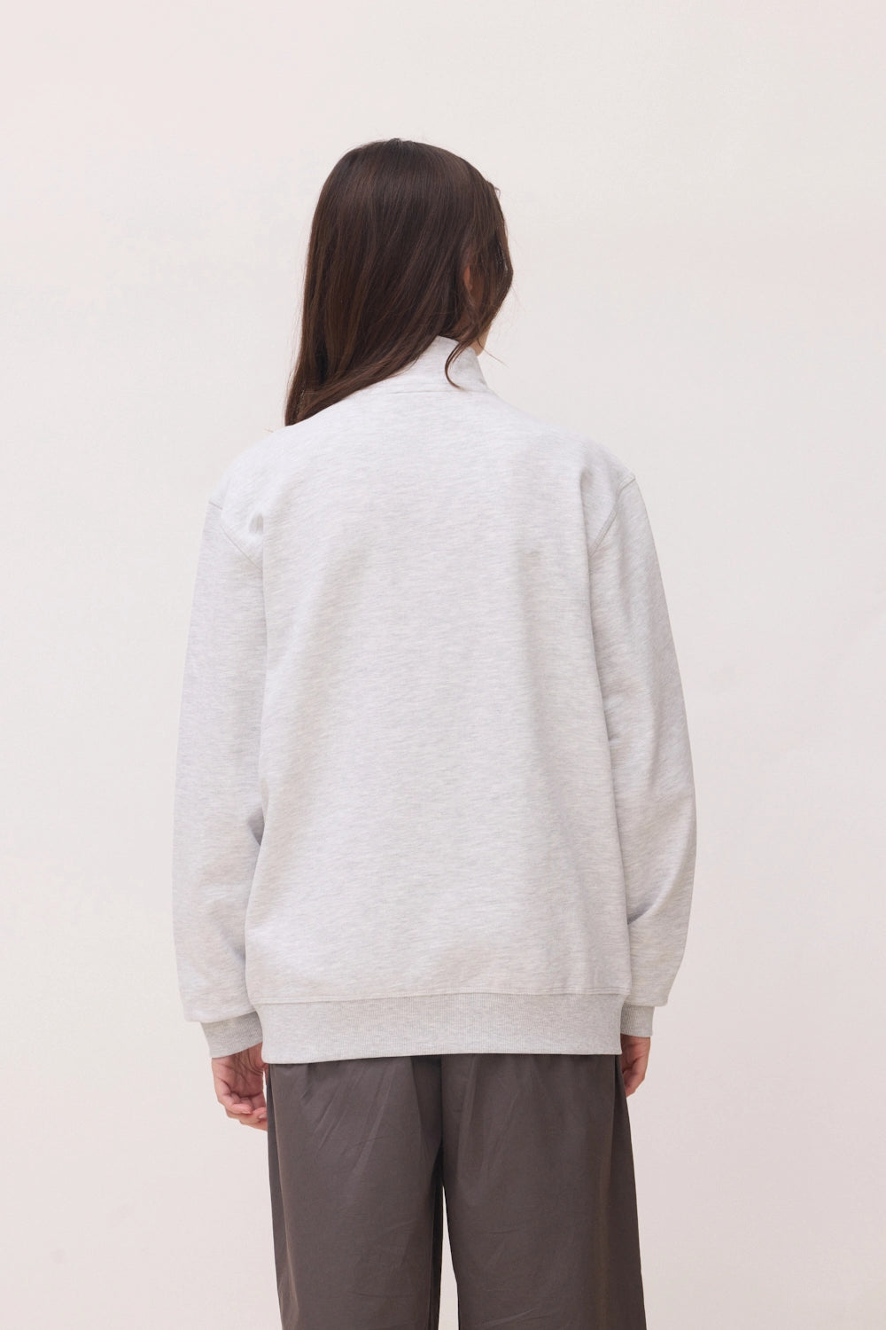 LIGHT GREY MELANGE LOGO HALF ZIP CREW