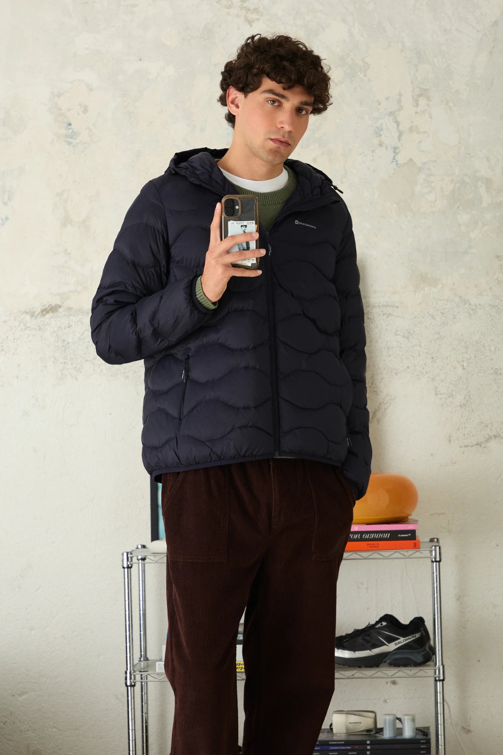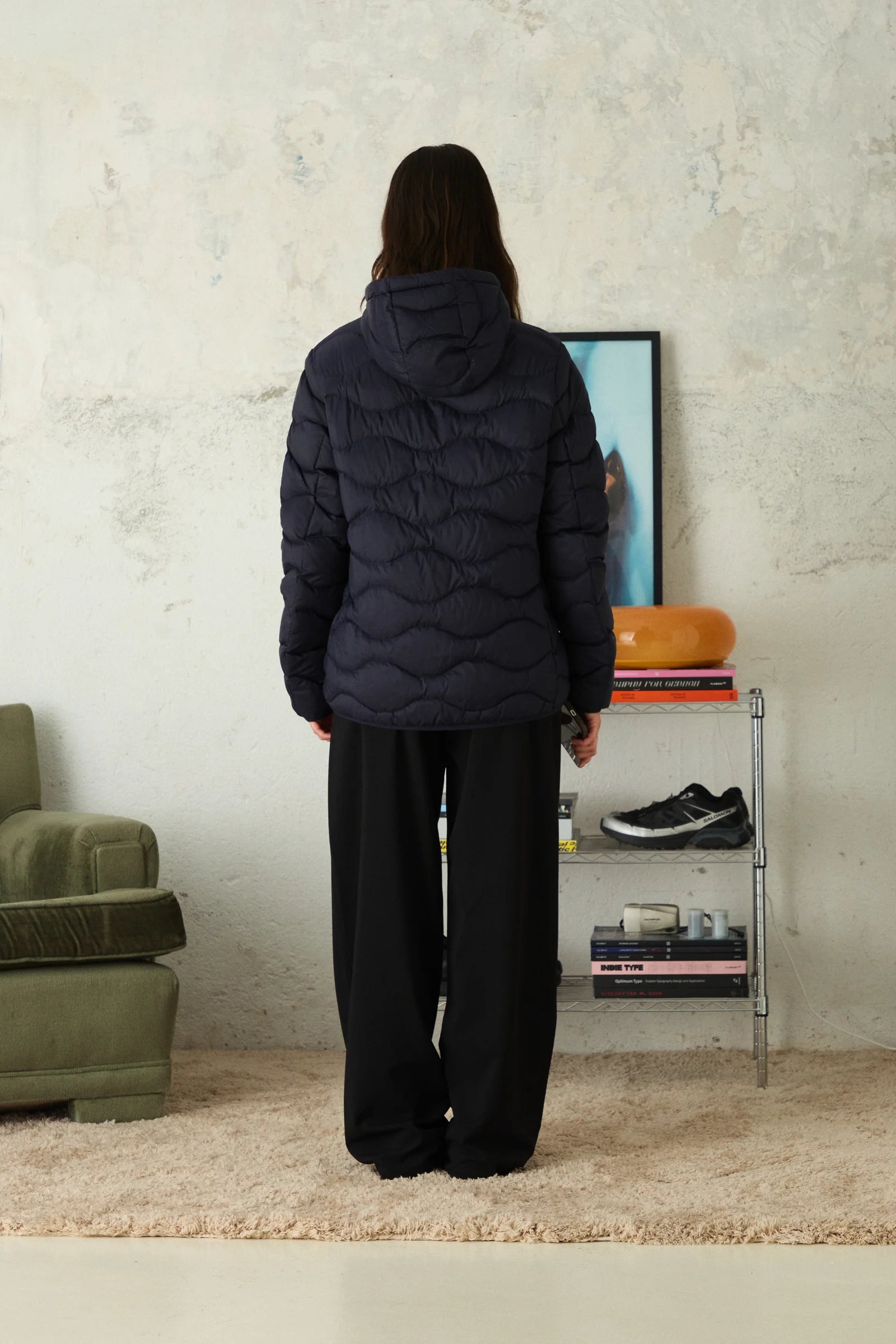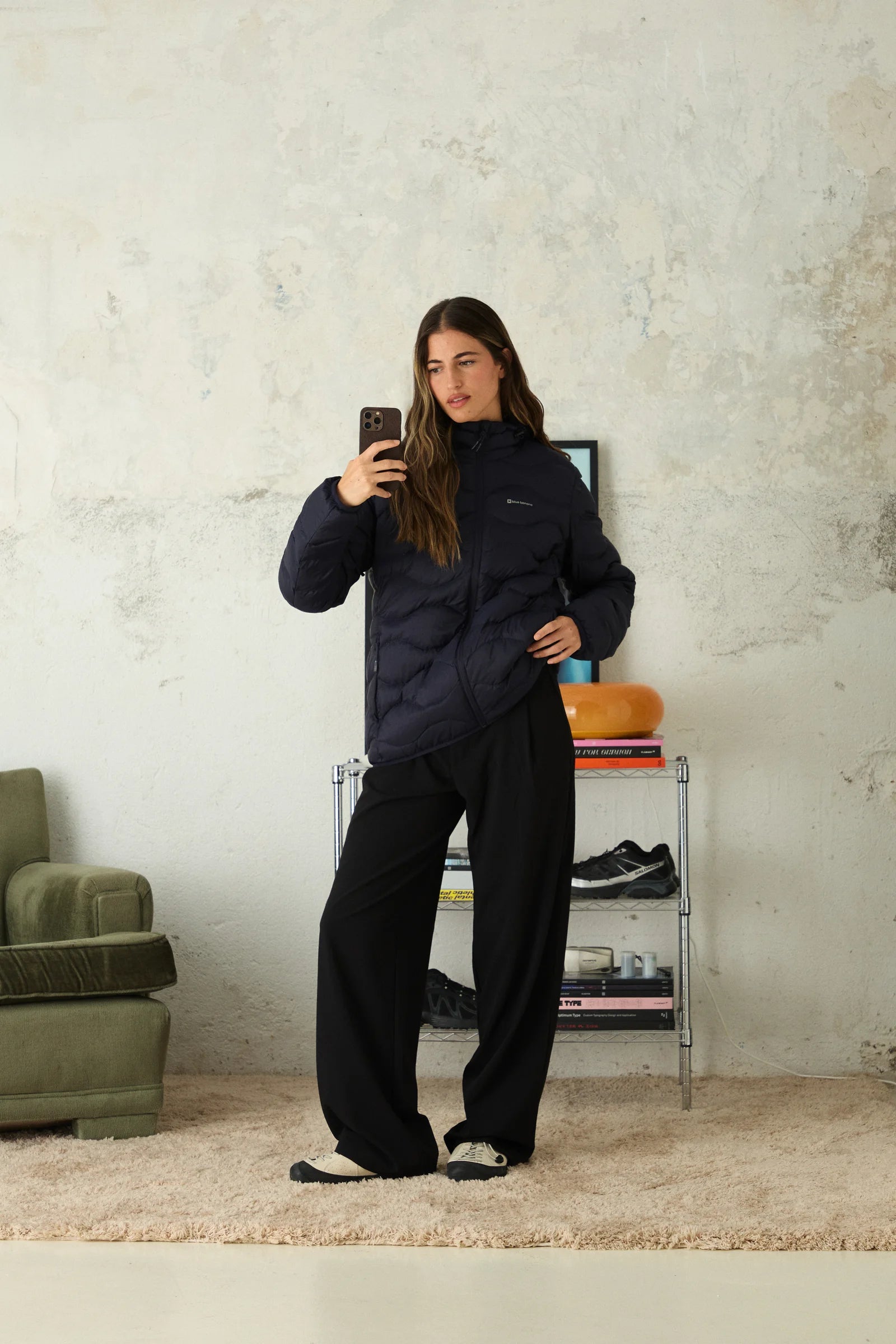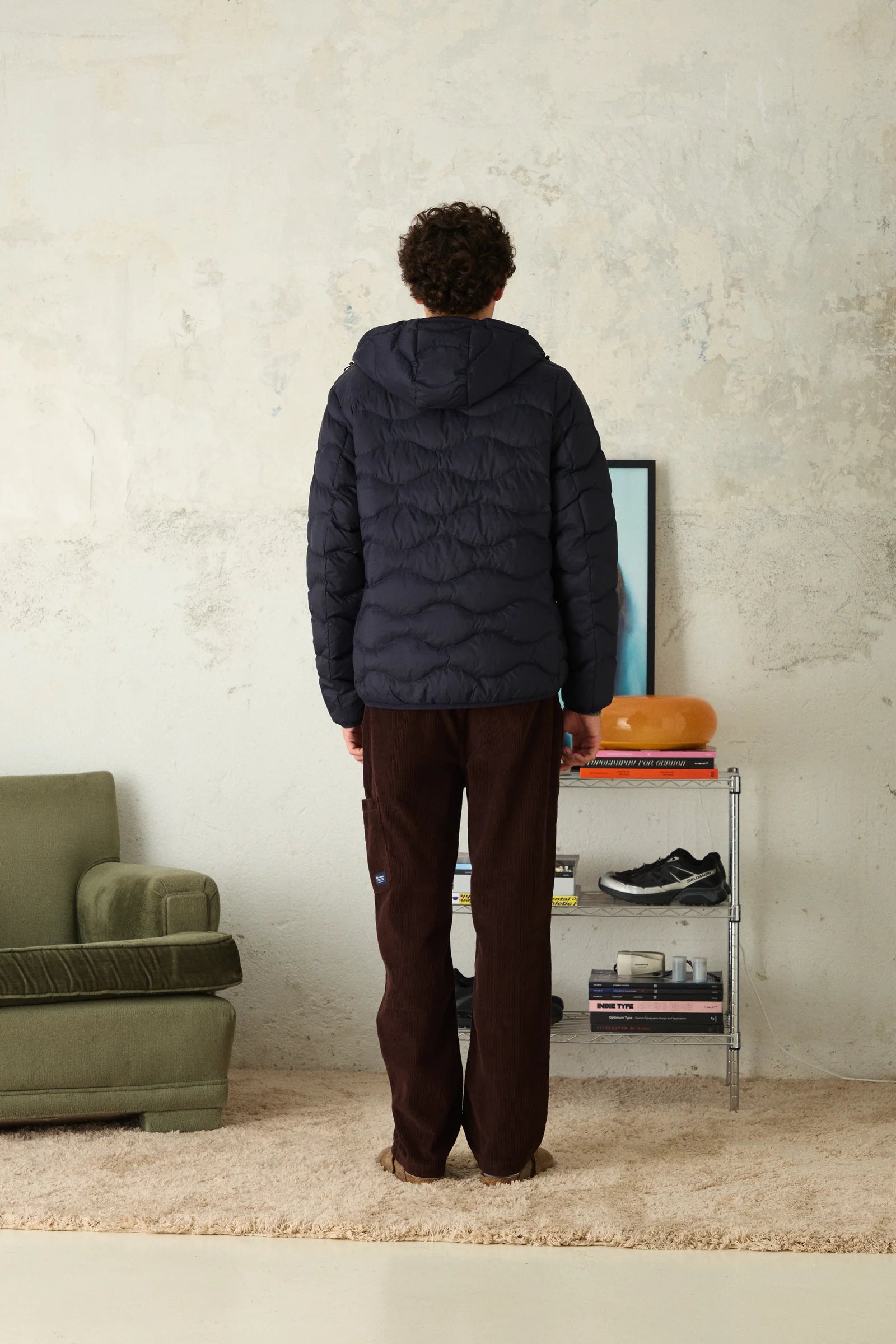 Puffer aus recyceltem Nylon mit zertifizierter Daunenfüllung – ultraleicht, warm und atmungsaktiv.