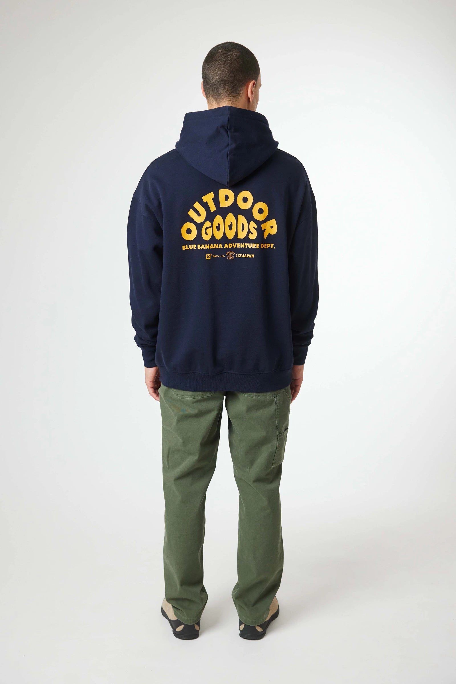 Kapuzenpullover mit Frontdruck oben links und mittigem Rückendruck.