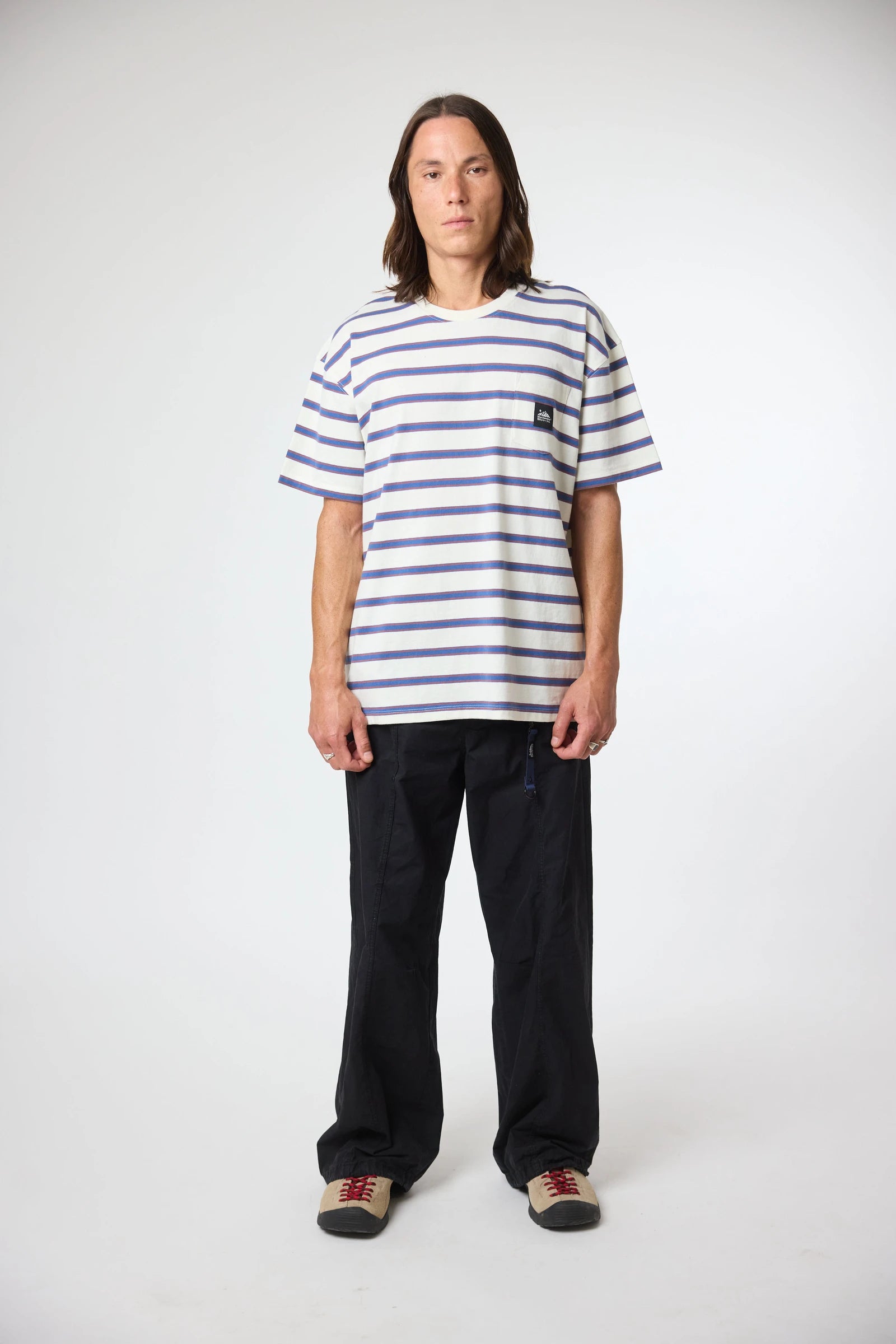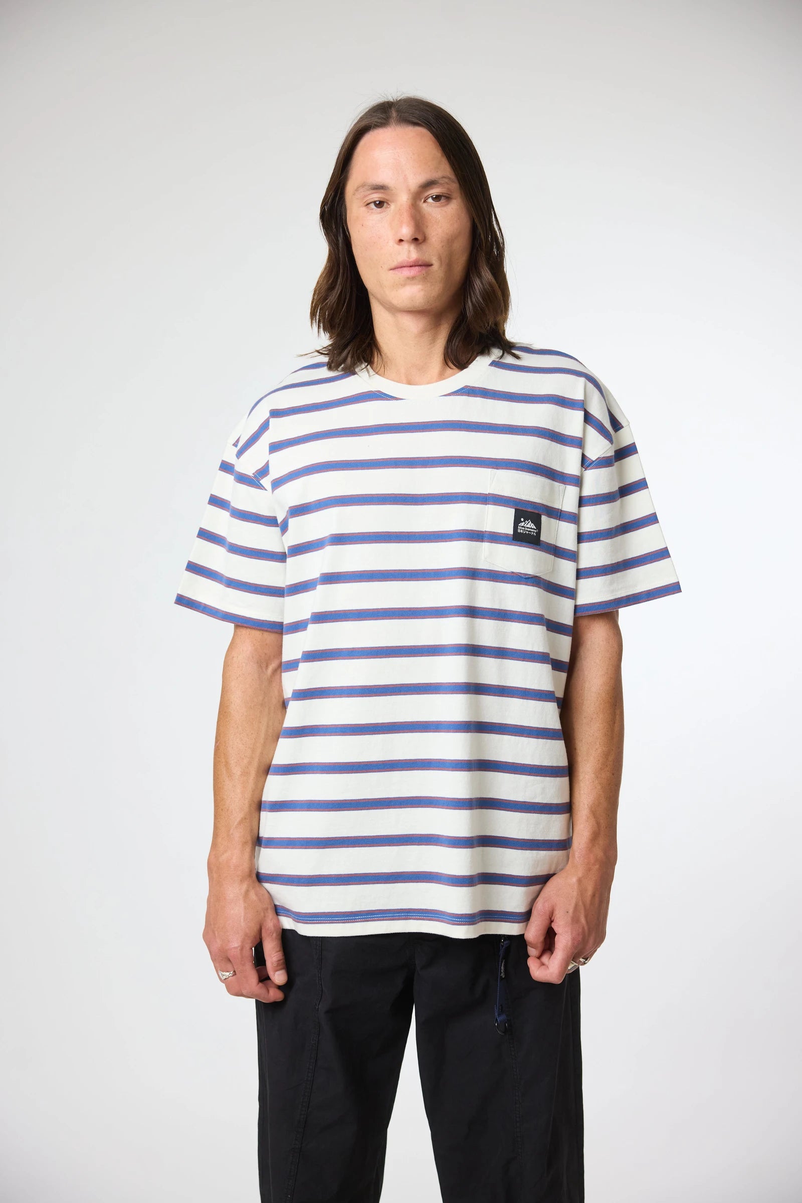 Gestreiftes T-Shirt mit Stickerei vorne auf der Brust.