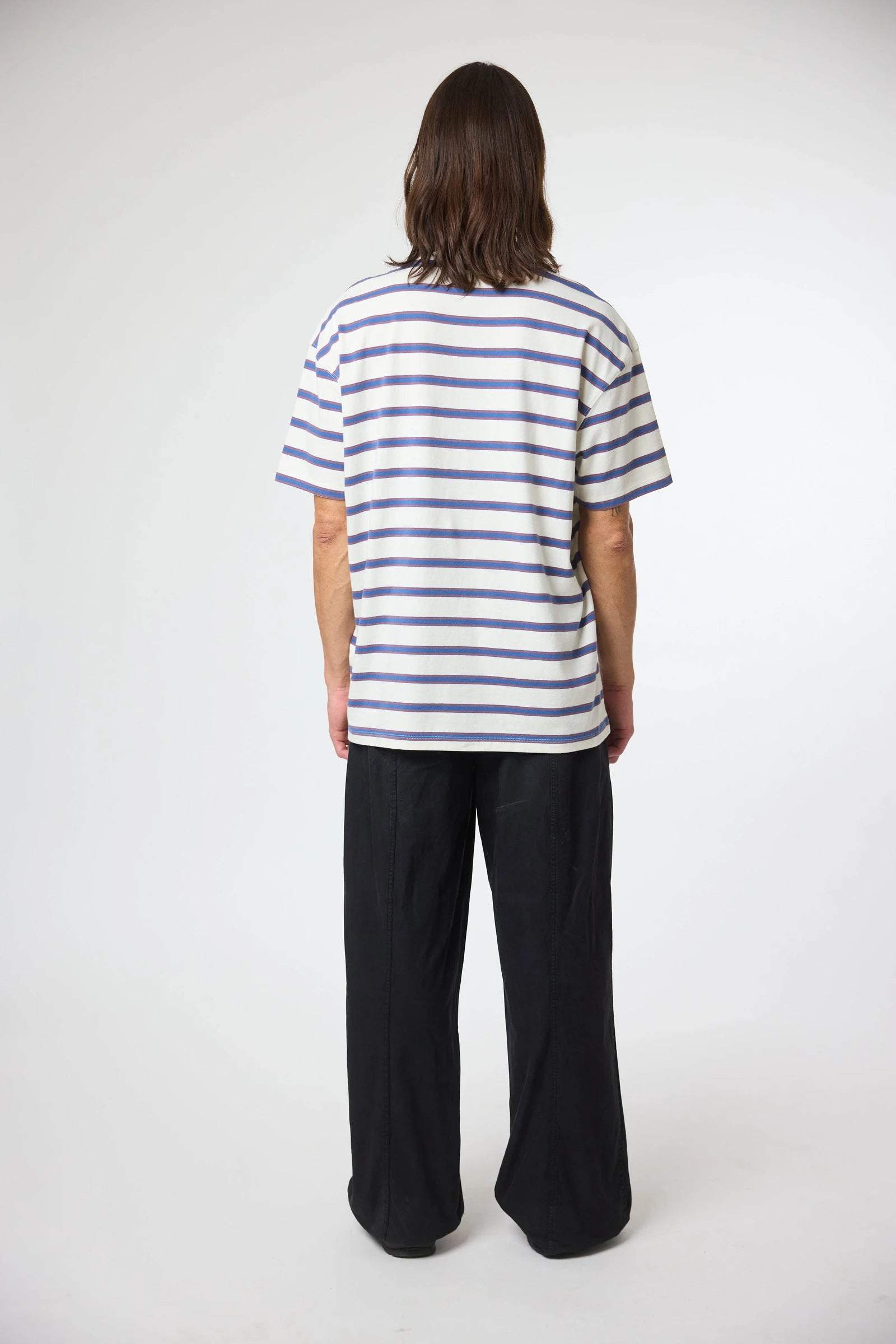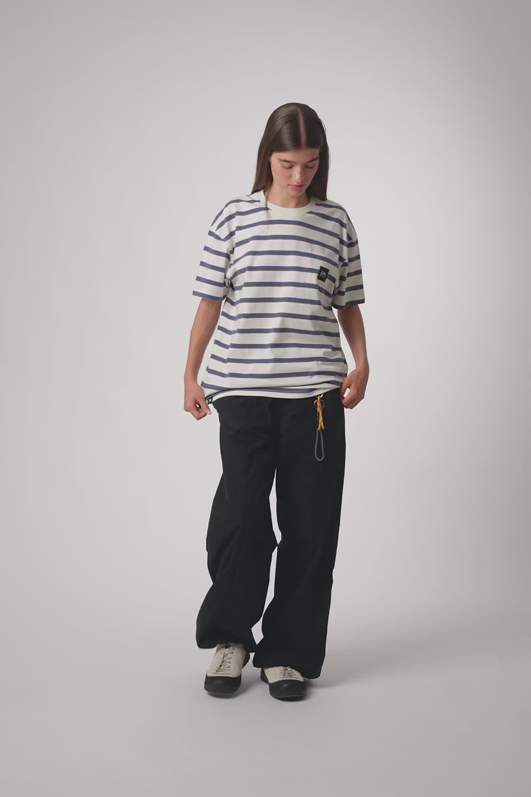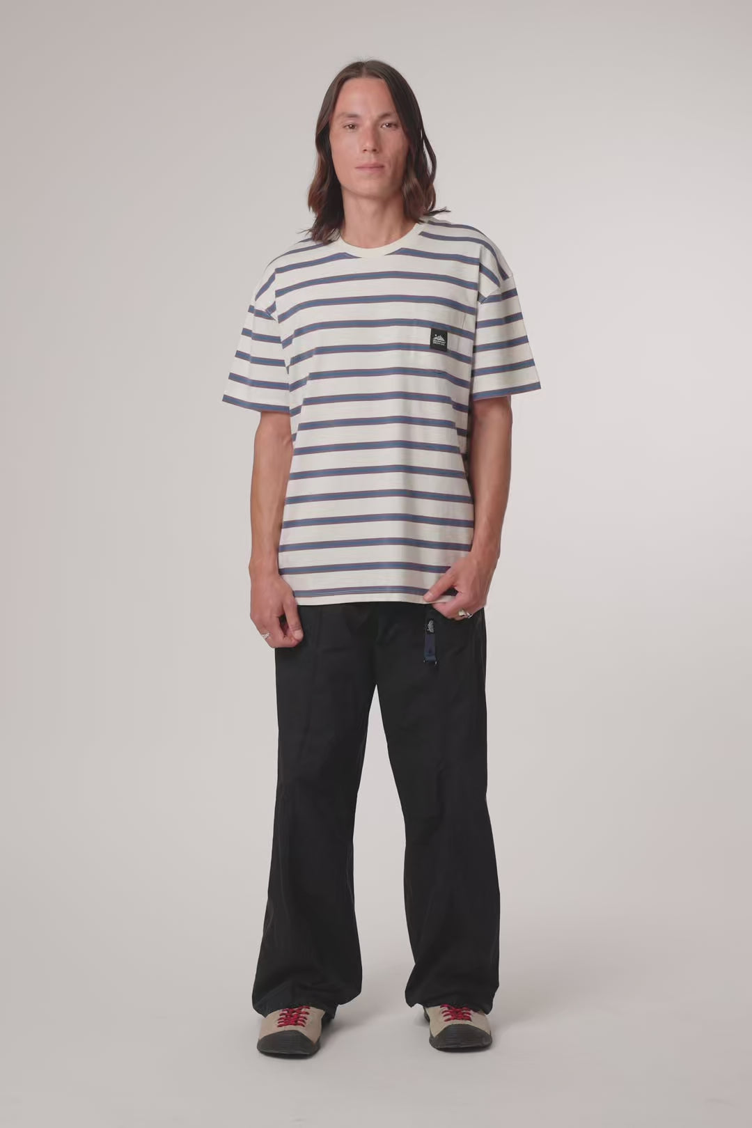 Gestreiftes T-Shirt mit Stickerei vorne auf der Brust. Hergestellt aus 100% Bio-Baumwolle und Oversize-Schnitt.