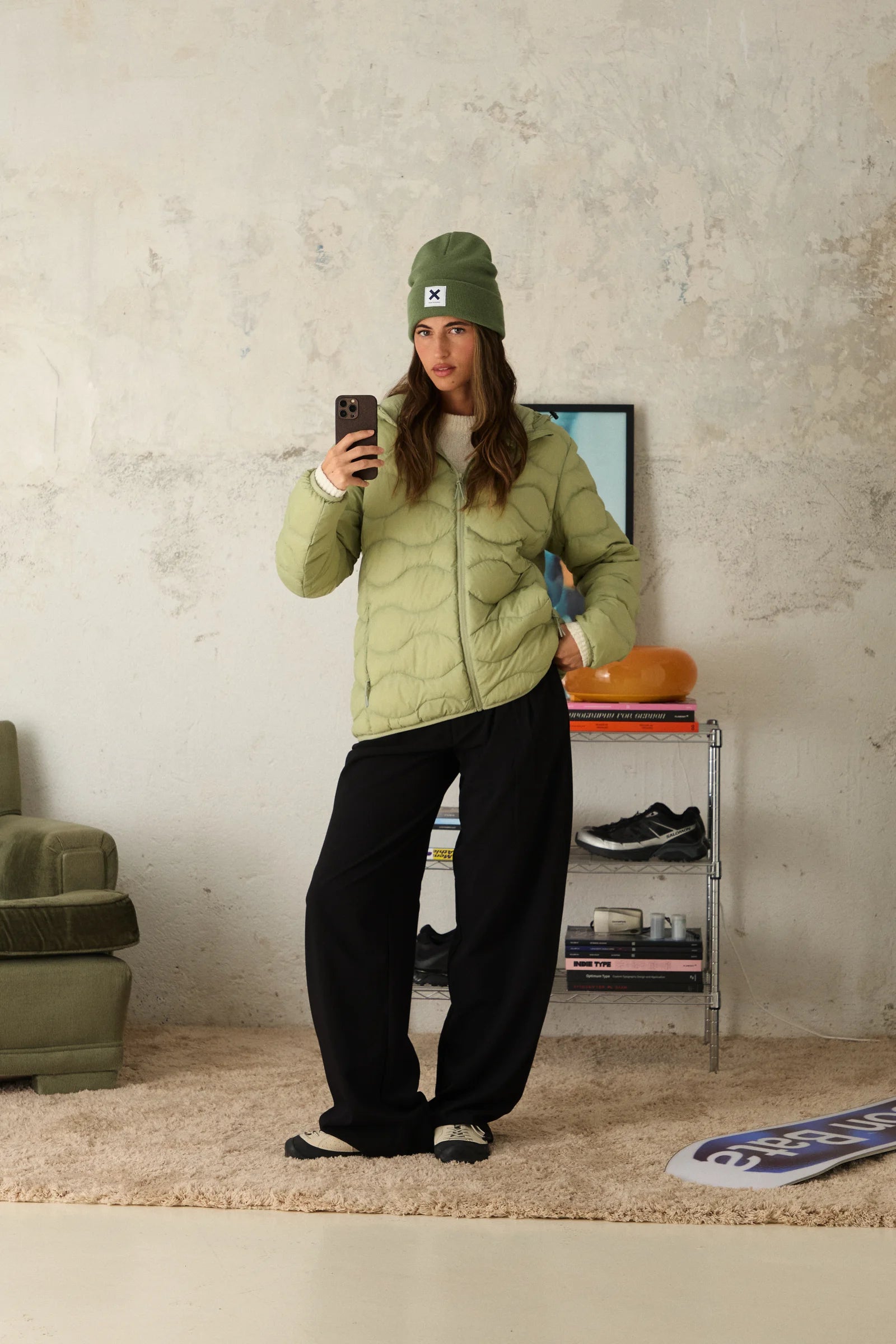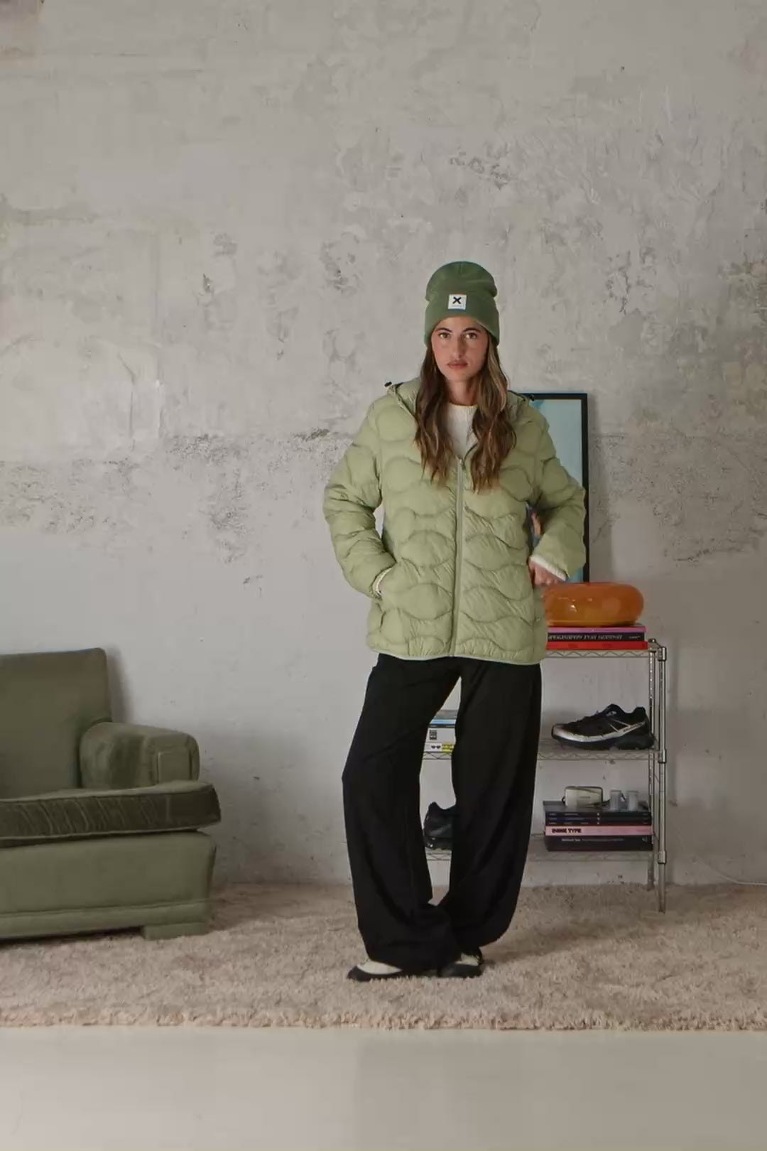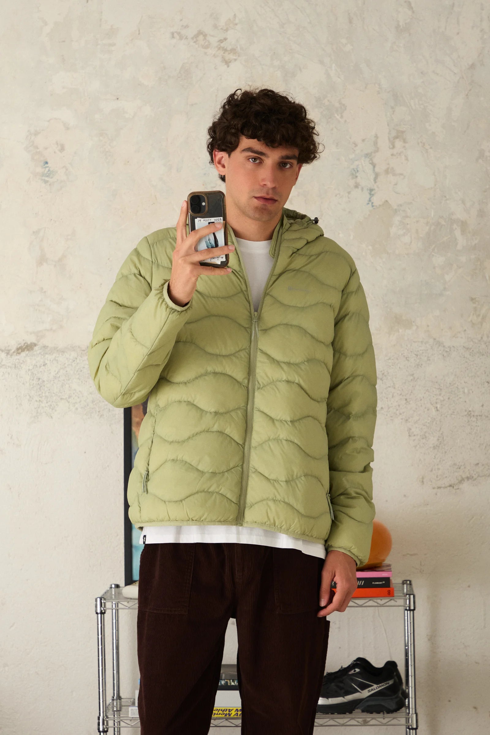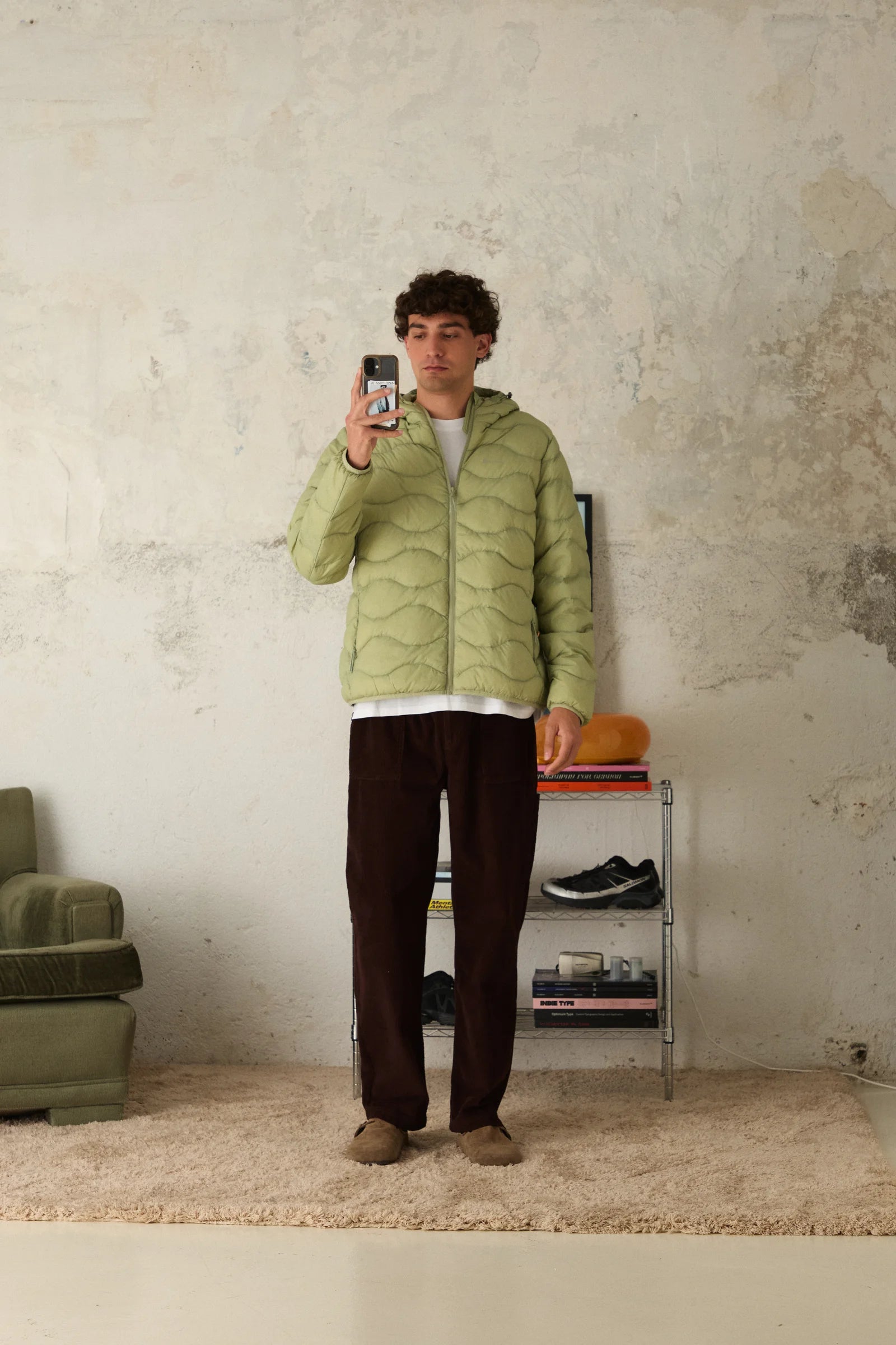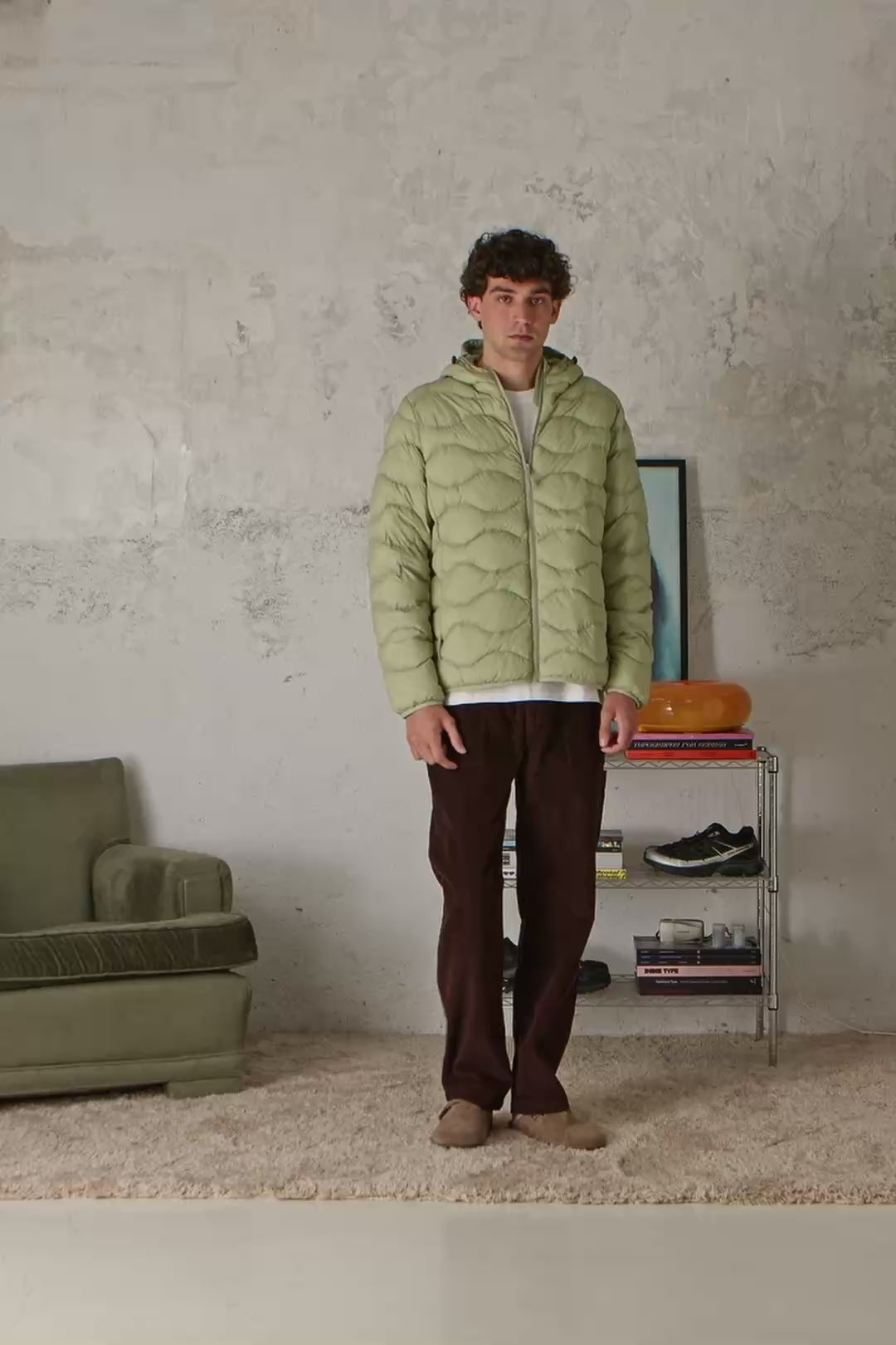 Puffer aus recyceltem Nylon mit zertifizierter Daunenfüllung – ultraleicht, warm und atmungsaktiv.