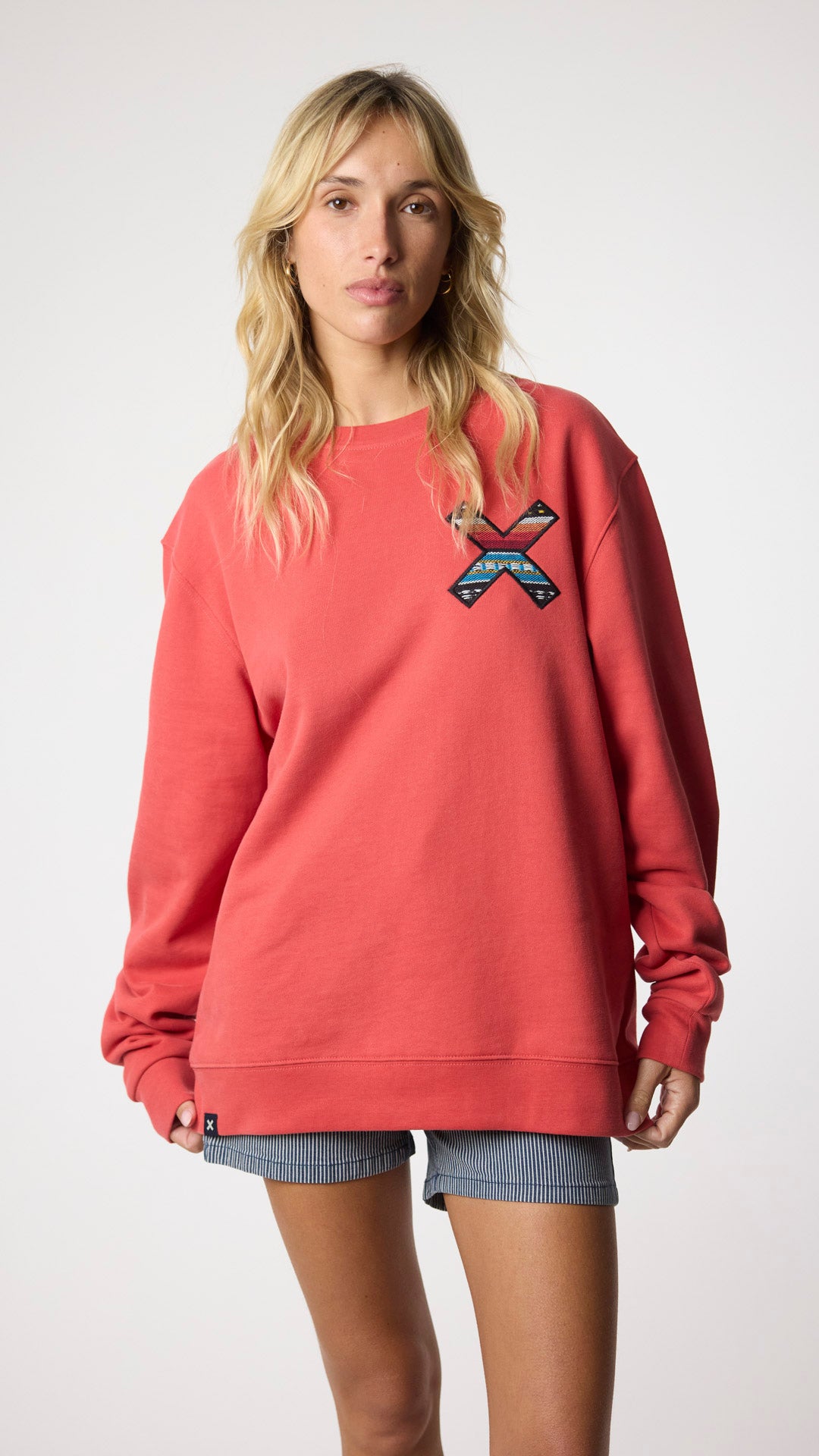 Sudadera con nuestra clásica X bordada. Confeccionada con 100% algodón orgánico.
