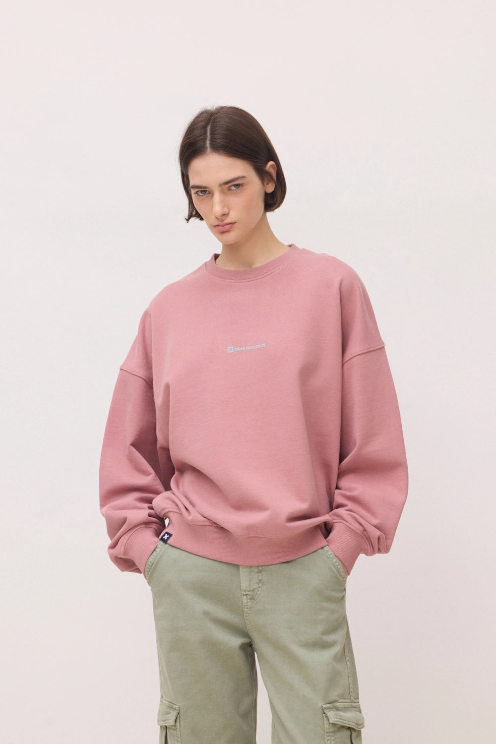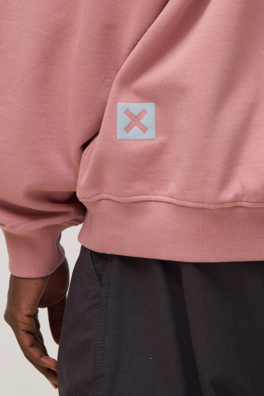 Sudadera con print delantero y lateral trasero. Confeccionada con 75% algodón orgánico y 25% algodón reciclado. Corte boxy y gramaje: 400 GSM.