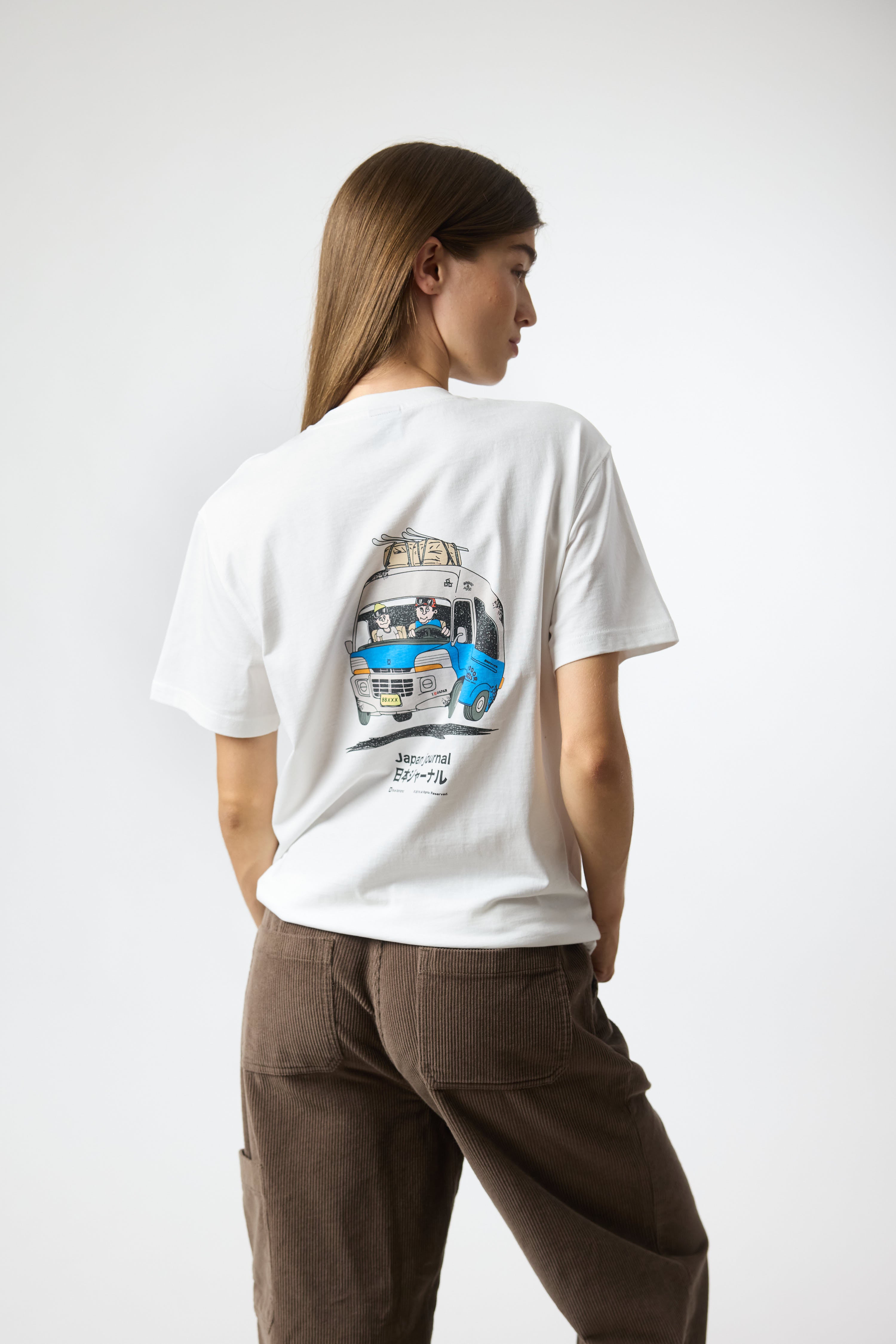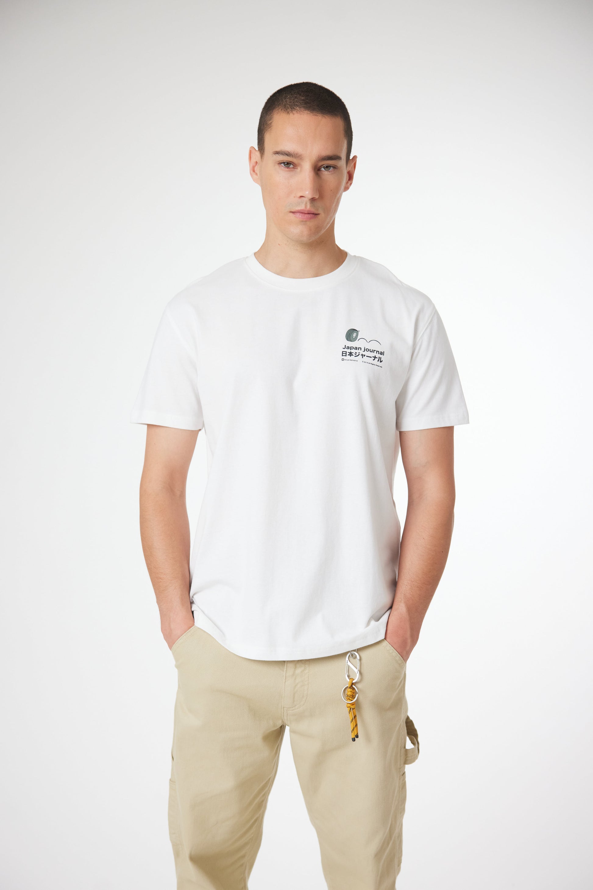 T-Shirt mit Frontprint oben links und zentralem Rückenprint. Hergestellt aus 100% Bio-Baumwolle und Regular-Fit.